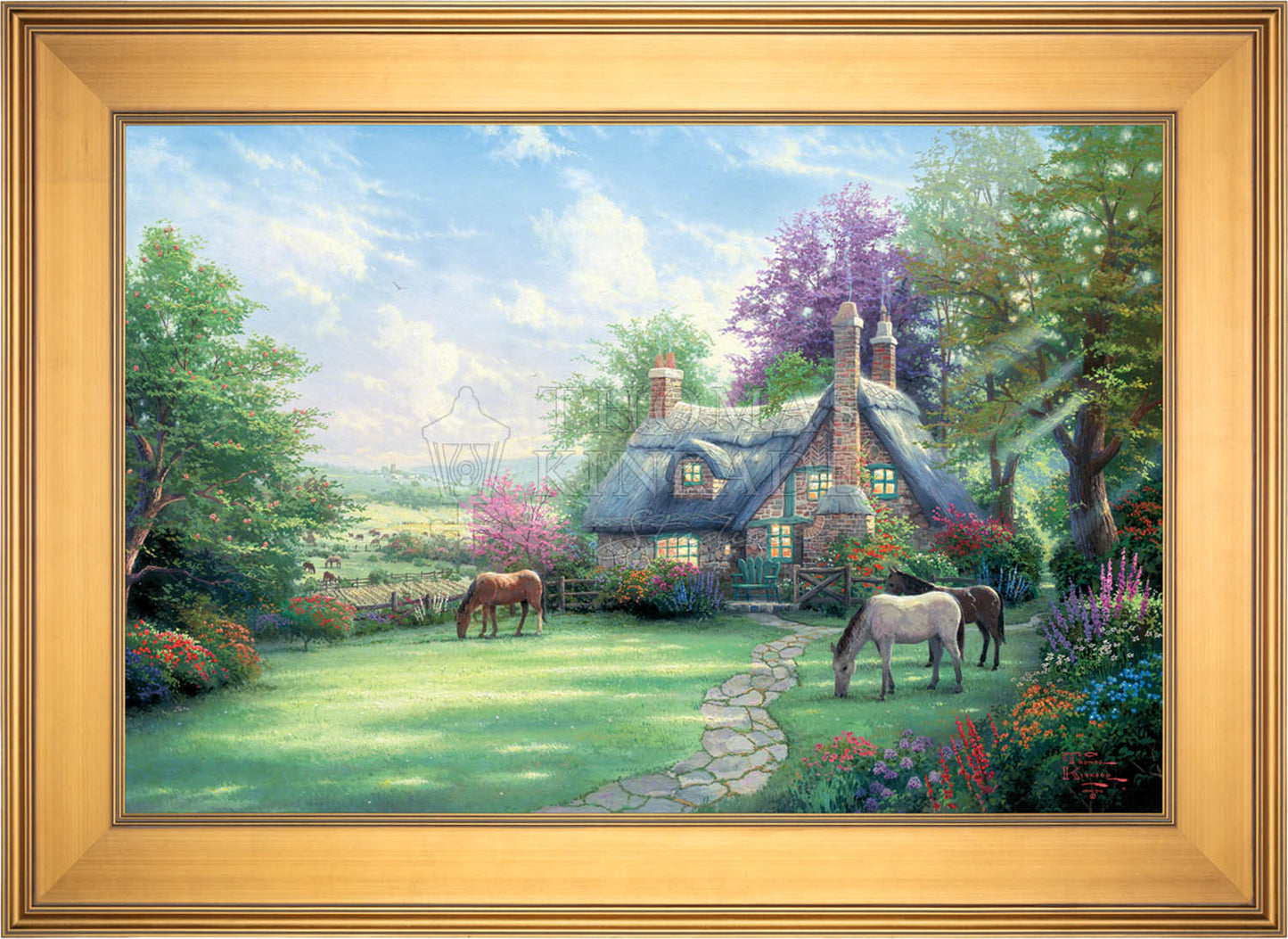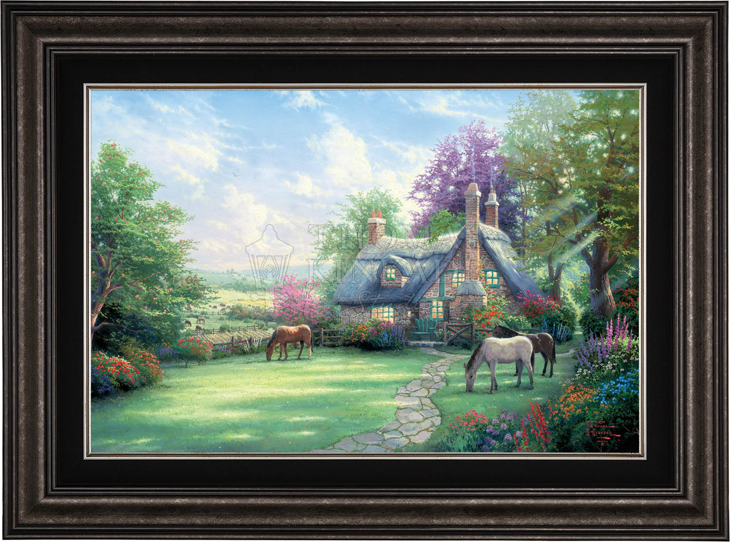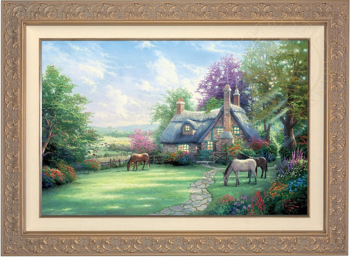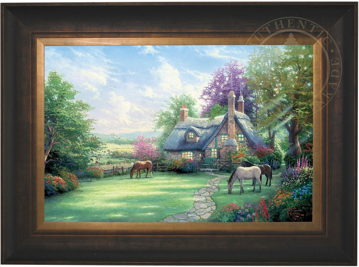 Thomas Kinkade Limited Edition Canvases combine old world craftsmanship with the finest materials and latest production technologies to produce extraordinary canvas artwork. Our reproduction process captures not only the color and mood of Thom's enchanting original painting, but the actual brushwork as well. Every piece is hand-retouched by skilled artisans, giving the painting a look almost identical to the artist's on-easel original. Vibrant colors, rich textures and color tones accurate to Thom's original brushstrokes are the hallmarks of your finished piece.