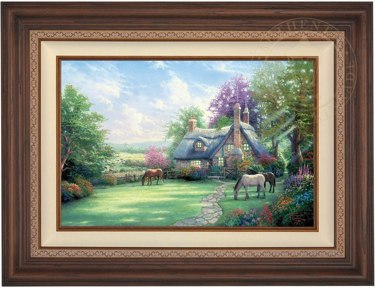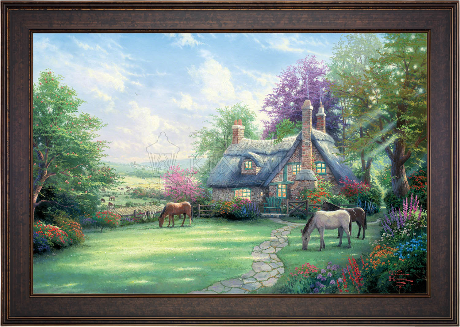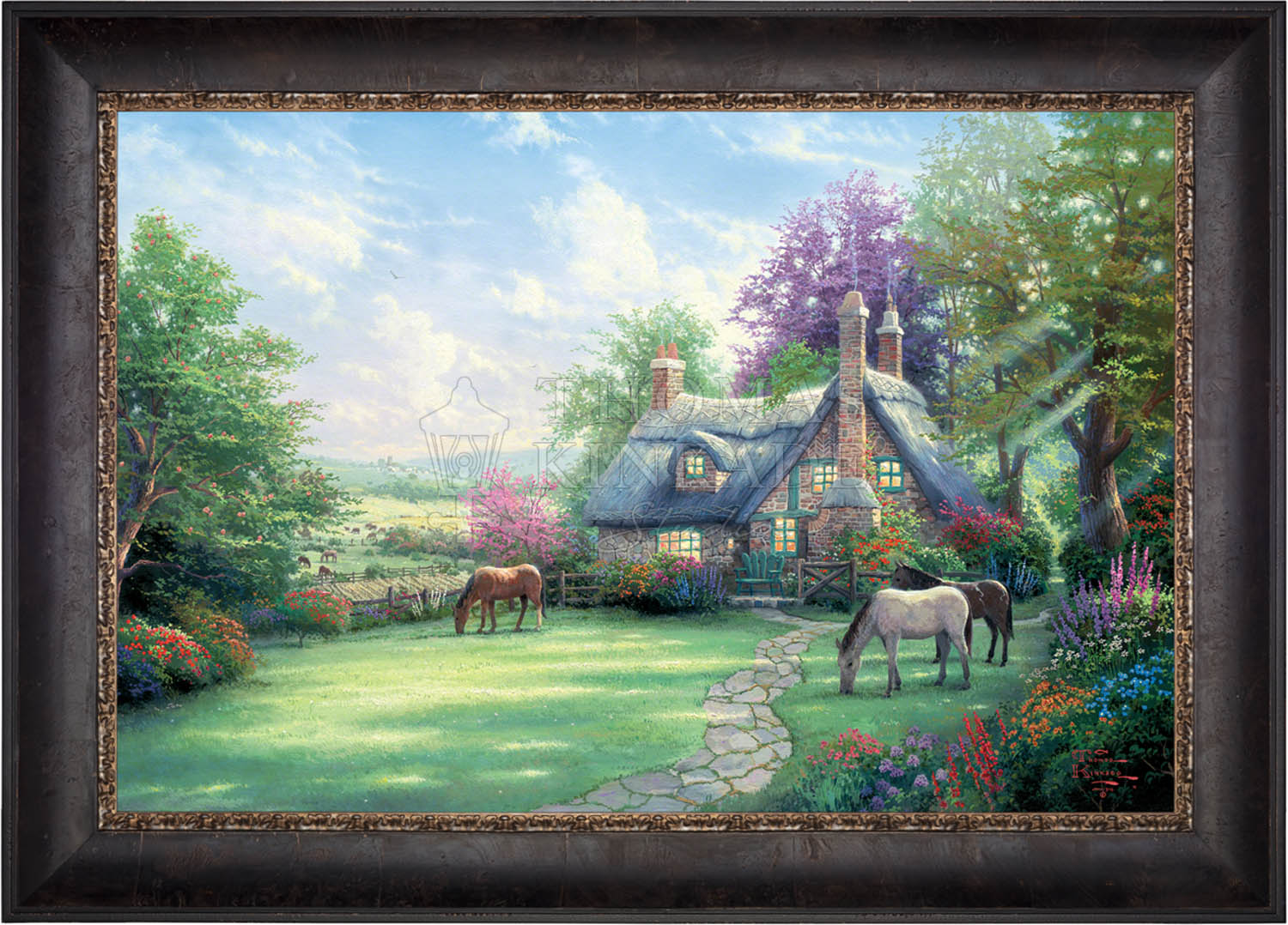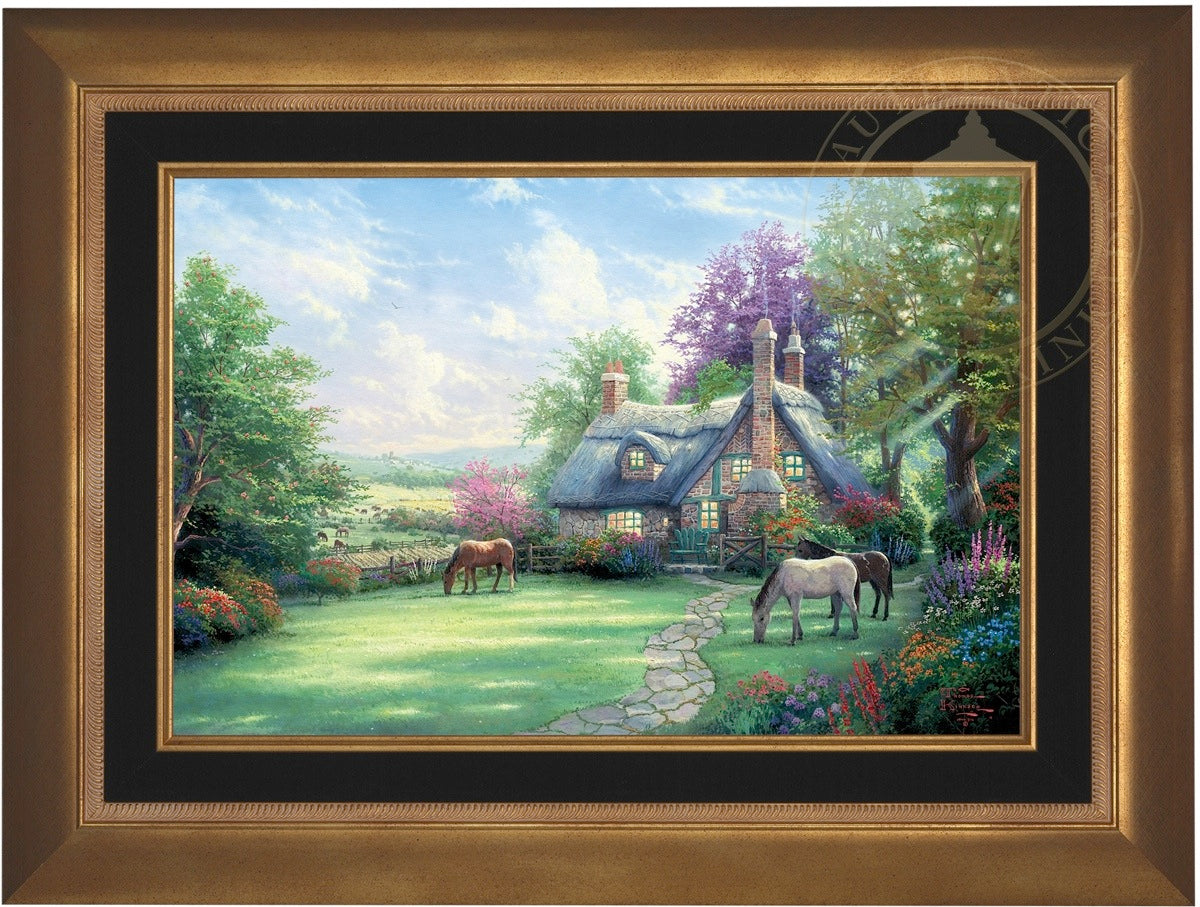 Thomas Kinkade Limited Edition Canvases combine old world craftsmanship with the finest materials and latest production technologies to produce extraordinary canvas artwork. Our reproduction process captures not only the color and mood of Thom's enchanting original painting, but the actual brushwork as well. Every piece is hand-retouched by skilled artisans, giving the painting a look almost identical to the artist's on-easel original. Vibrant colors, rich textures and color tones accurate to Thom's original brushstrokes are the hallmarks of your finished piece.
