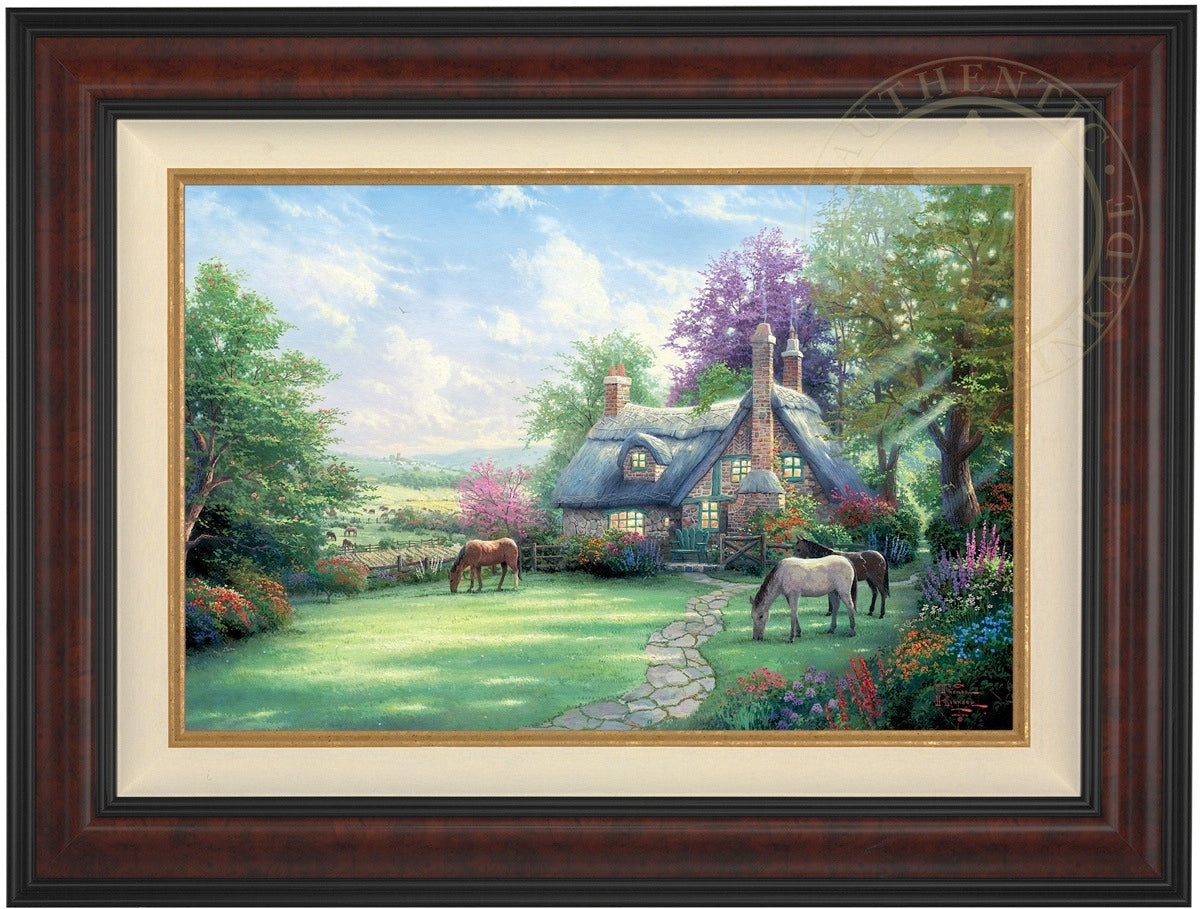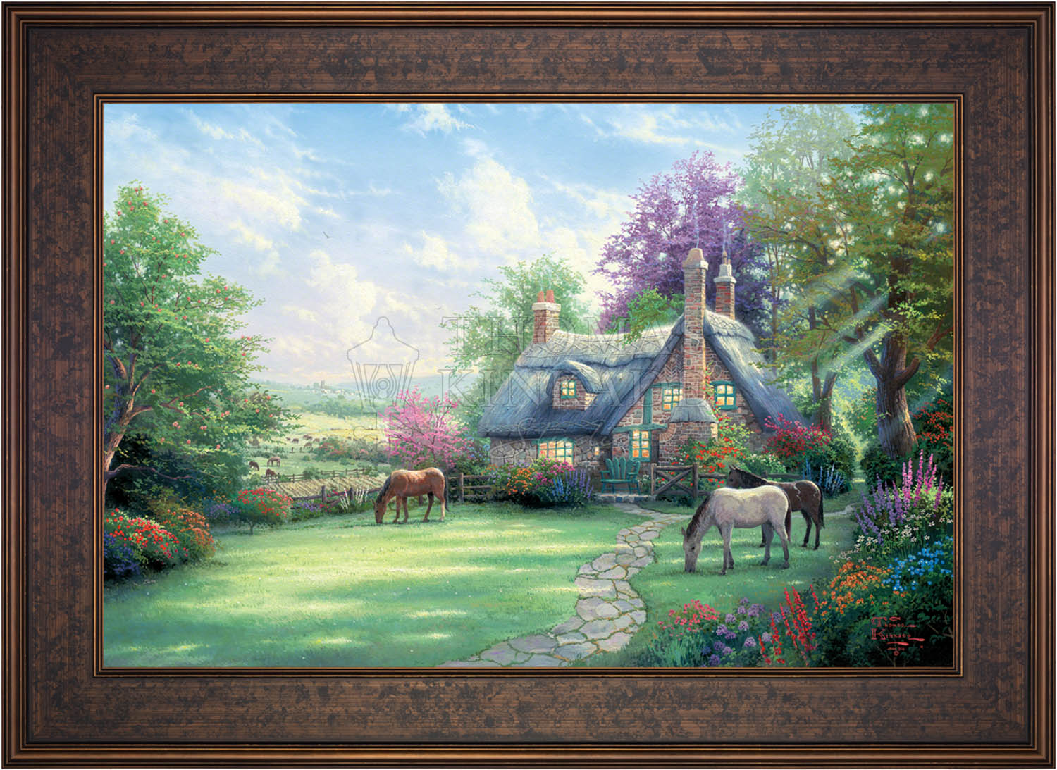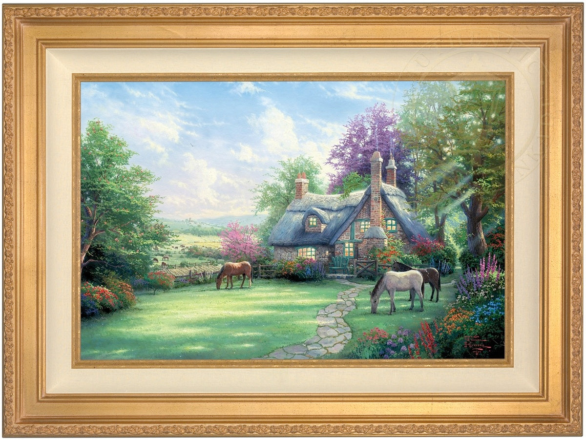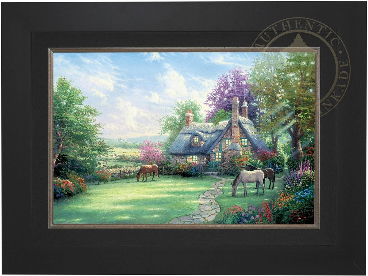 Thomas Kinkade Limited Edition Canvases combine old world craftsmanship with the finest materials and latest production technologies to produce extraordinary canvas artwork. Our reproduction process captures not only the color and mood of Thom's enchanting original painting, but the actual brushwork as well. Every piece is hand-retouched by skilled artisans, giving the painting a look almost identical to the artist's on-easel original. Vibrant colors, rich textures and color tones accurate to Thom's original brushstrokes are the hallmarks of your finished piece.