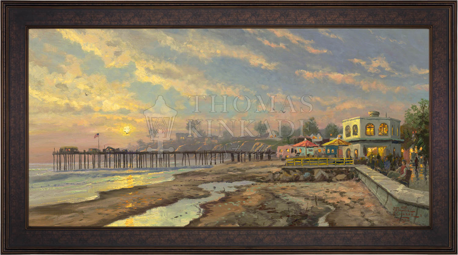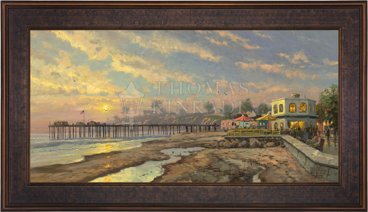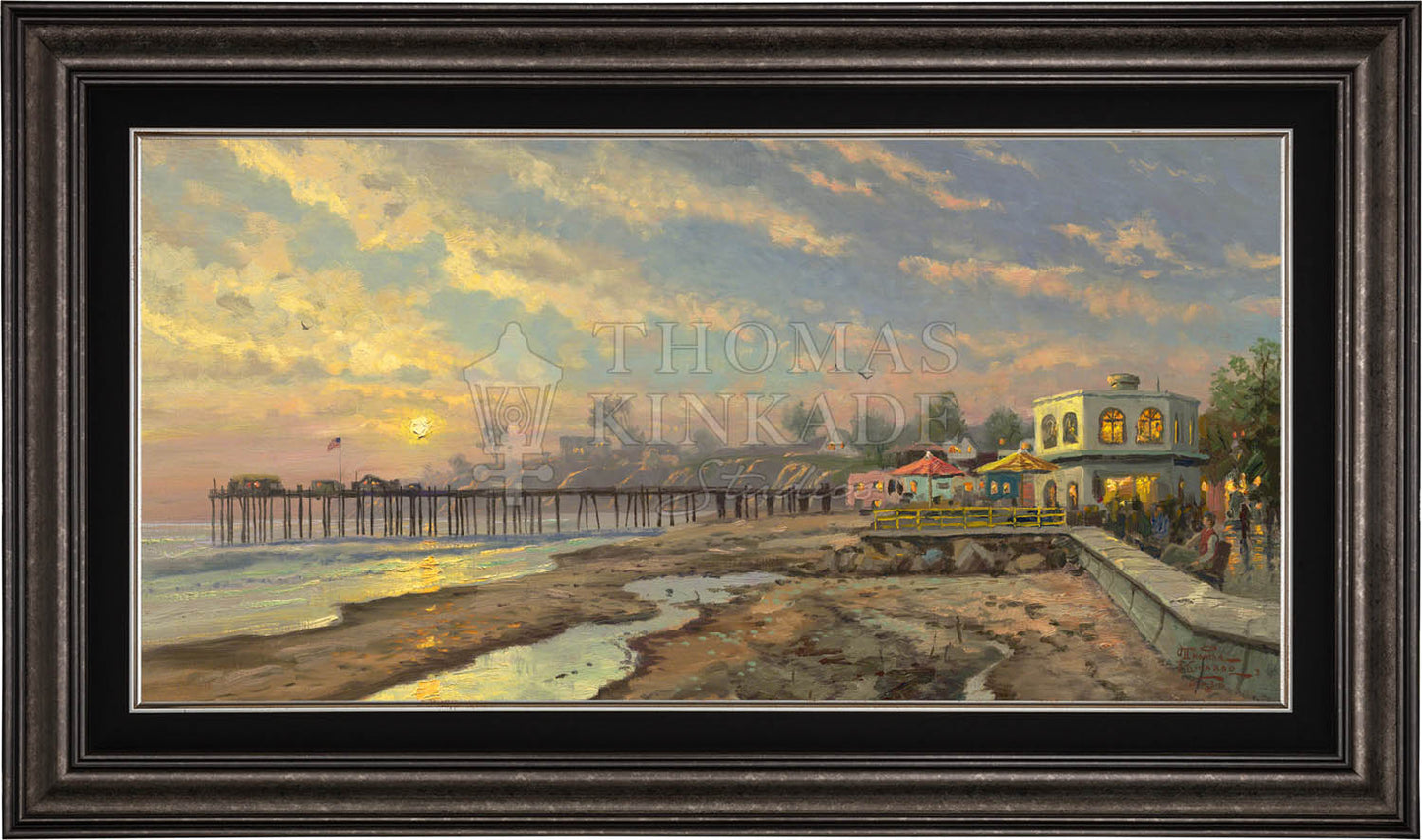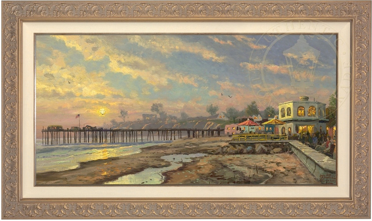 Call UsThe serene seaside village of Capitola, just north of Monterey has become a favorite weekend retreat for the Kinkade family. Recently, I set up my easel under a beach umbrella and began to paint. The ancient wooden pier becomes the centerpiece of luminous ocean waters painted gold by the setting sun; tidal pools become silvery mirrors reflecting the glory of this Capitola Sunset. My family dined in comfort that evening at the intriguing octagonal restaurant as I put the finishing touches on my plein-air celebration of our romantic Capitola Sunset hideaway.