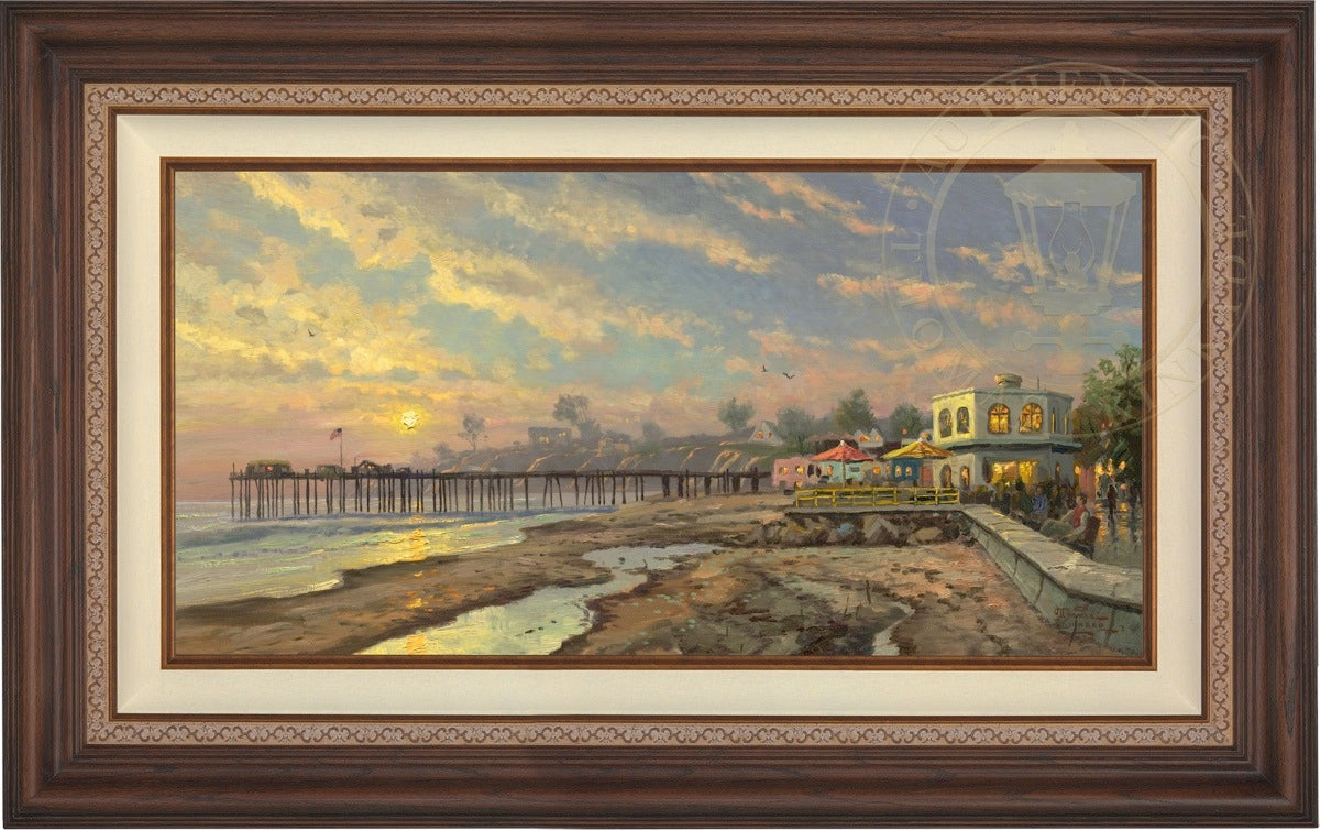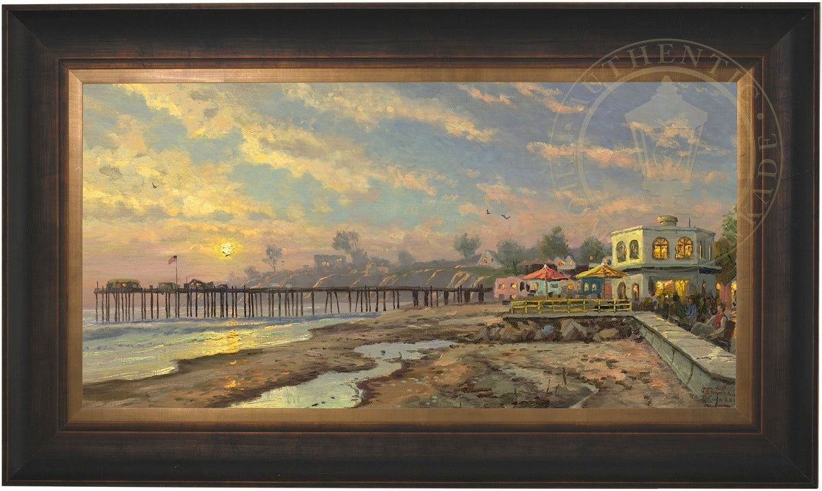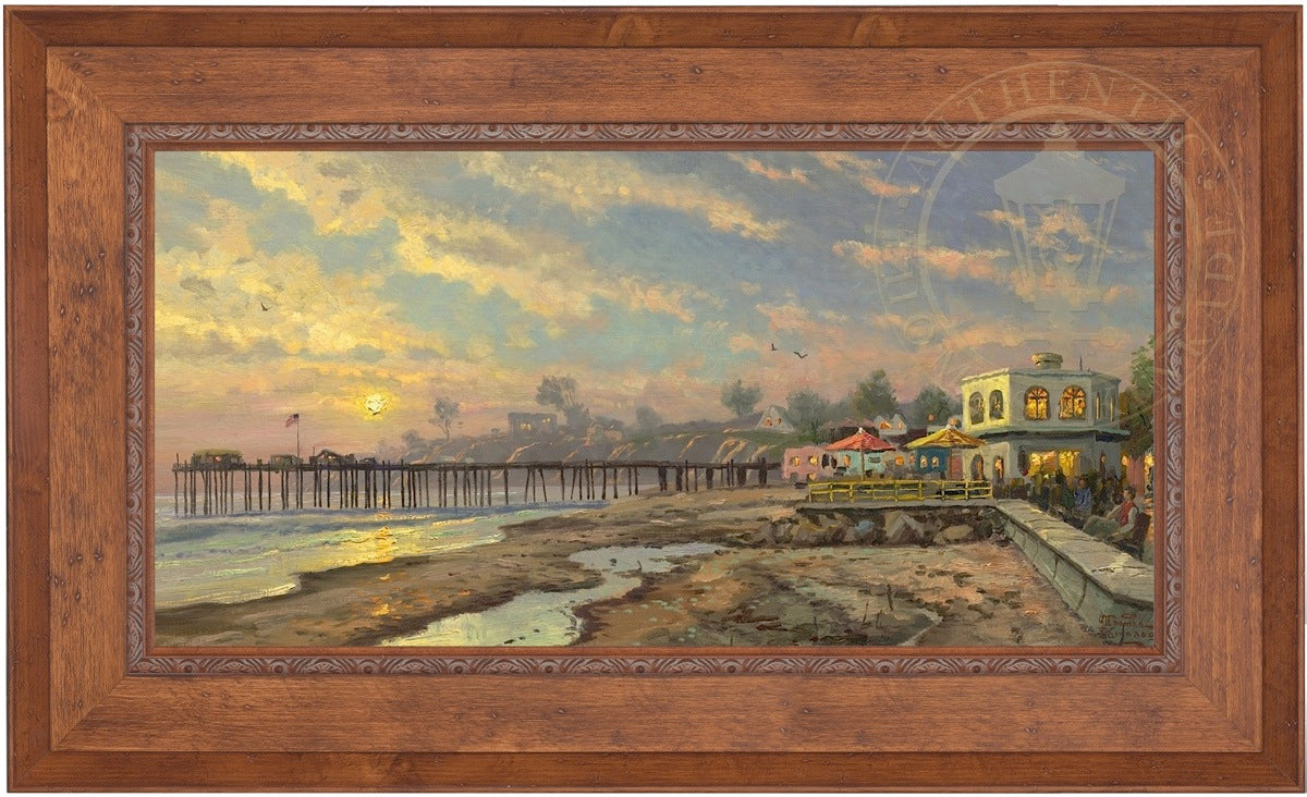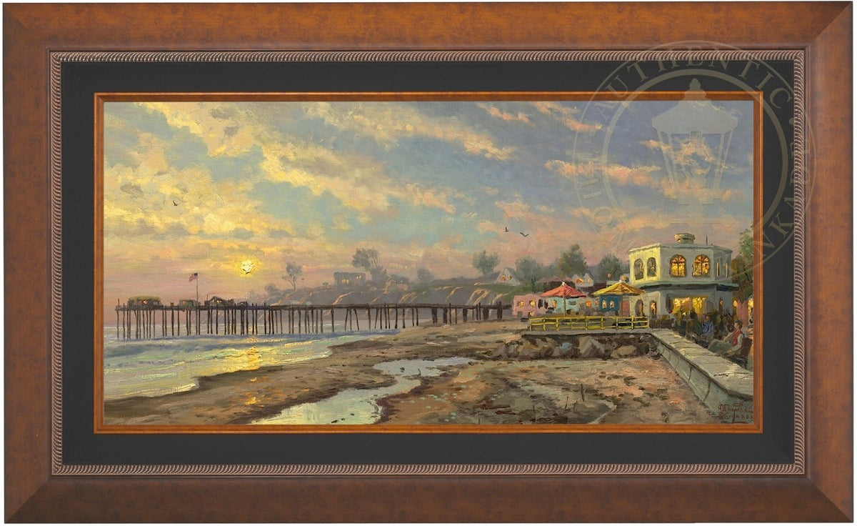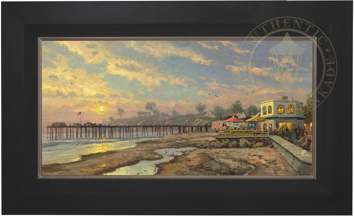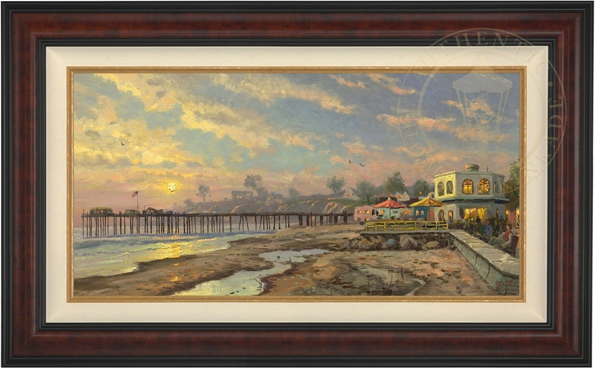 Call UsThe serene seaside village of Capitola, just north of Monterey has become a favorite weekend retreat for the Kinkade family. Recently, I set up my easel under a beach umbrella and began to paint. The ancient wooden pier becomes the centerpiece of luminous ocean waters painted gold by the setting sun; tidal pools become silvery mirrors reflecting the glory of this Capitola Sunset. My family dined in comfort that evening at the intriguing octagonal restaurant as I put the finishing touches on my plein-air celebration of our romantic Capitola Sunset hideaway.