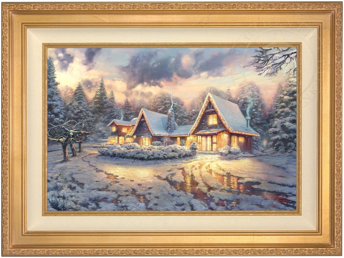 Thomas Kinkade Limited Edition Canvases combine old world craftsmanship with the finest materials and latest production technologies to produce extraordinary canvas artwork. Our reproduction process captures not only the color and mood of Thom's enchanting original painting, but the actual brushwork as well. Every piece is hand-retouched by skilled artisans, giving the painting a look almost identical to the artist's on-easel original. Vibrant colors, rich textures and color tones accurate to Thom's original brushstrokes are the hallmarks of your finished piece.