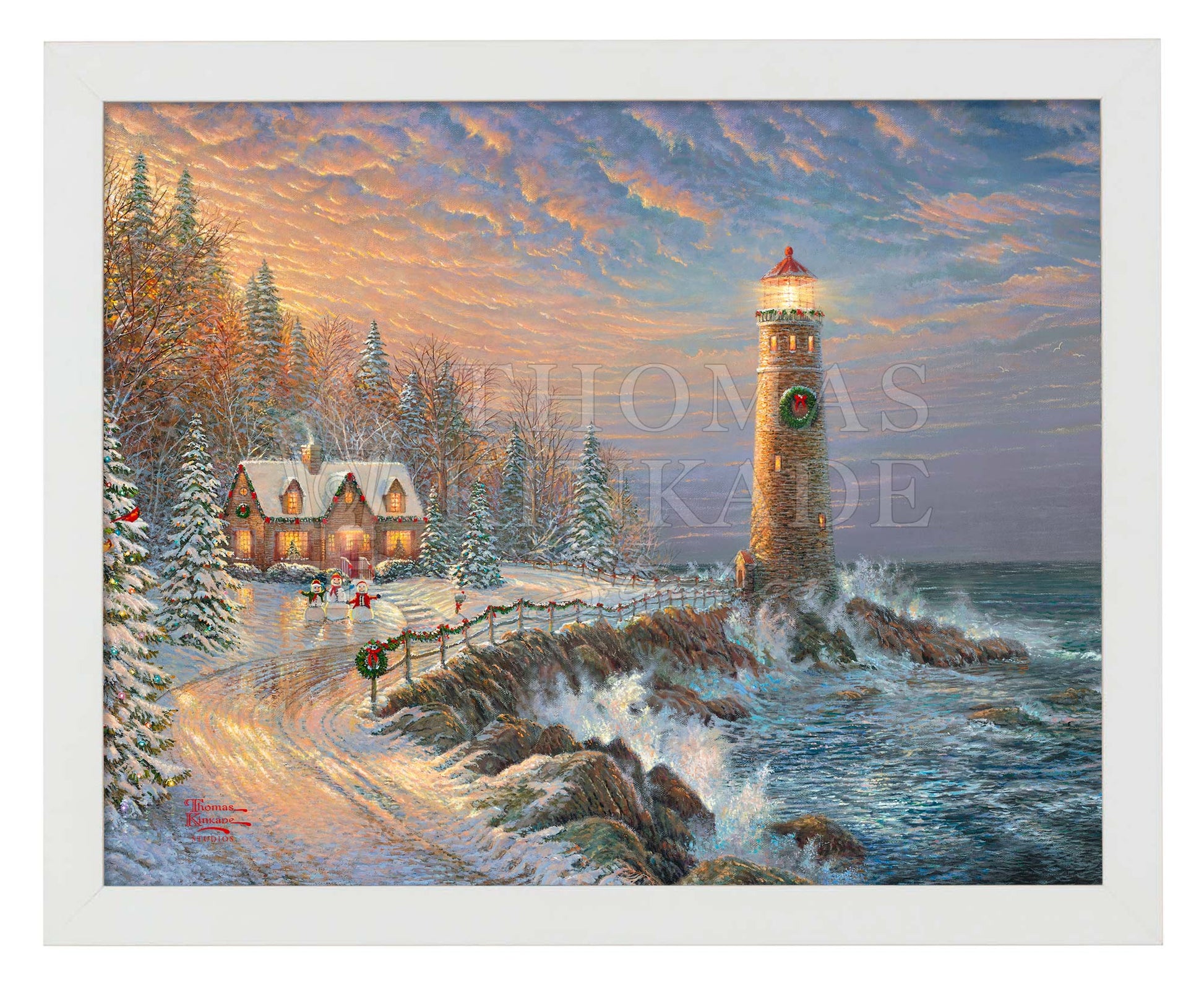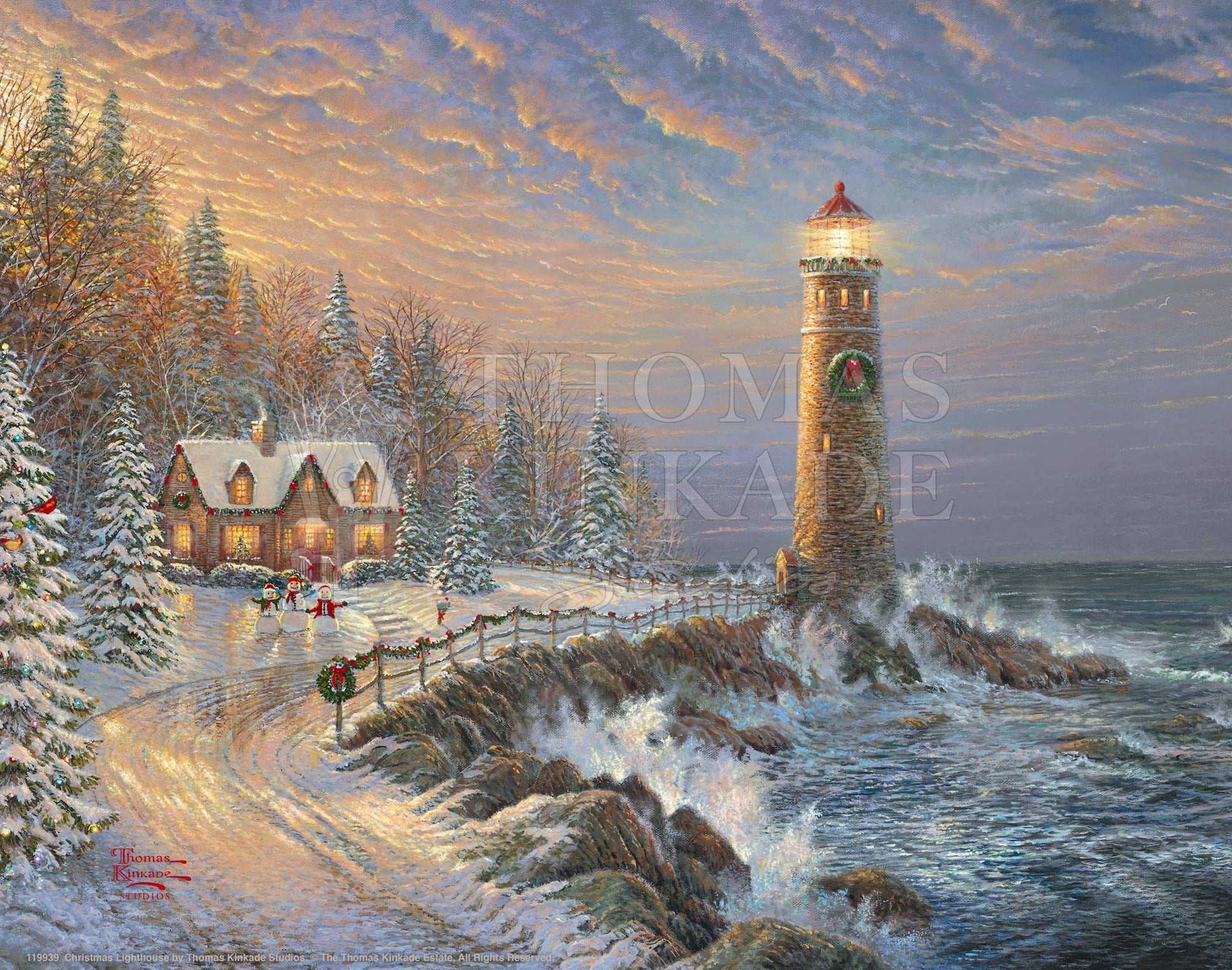 Thomas Kinkade loved to visit the coast. He often painted the lighthouses he and his family would visit. To Thom, a lighthouse was seen as a harbinger of protection and hope, and cottages as a symbol of family, with golden light pouring from the cottage's windows, reflecting the cozy comfort of the life lived within. Christmas is a time for family and friends to come together to celebrate the season - to make merry and lavish love and gifts on each other. Christmas is also memorable and filled with diverse traditions. Home is where the season is celebrated, be it in a large city, countryside, or by the sea. Join Thomas Kinkade Studios as we celebrate a Christmas Lighthouse.
