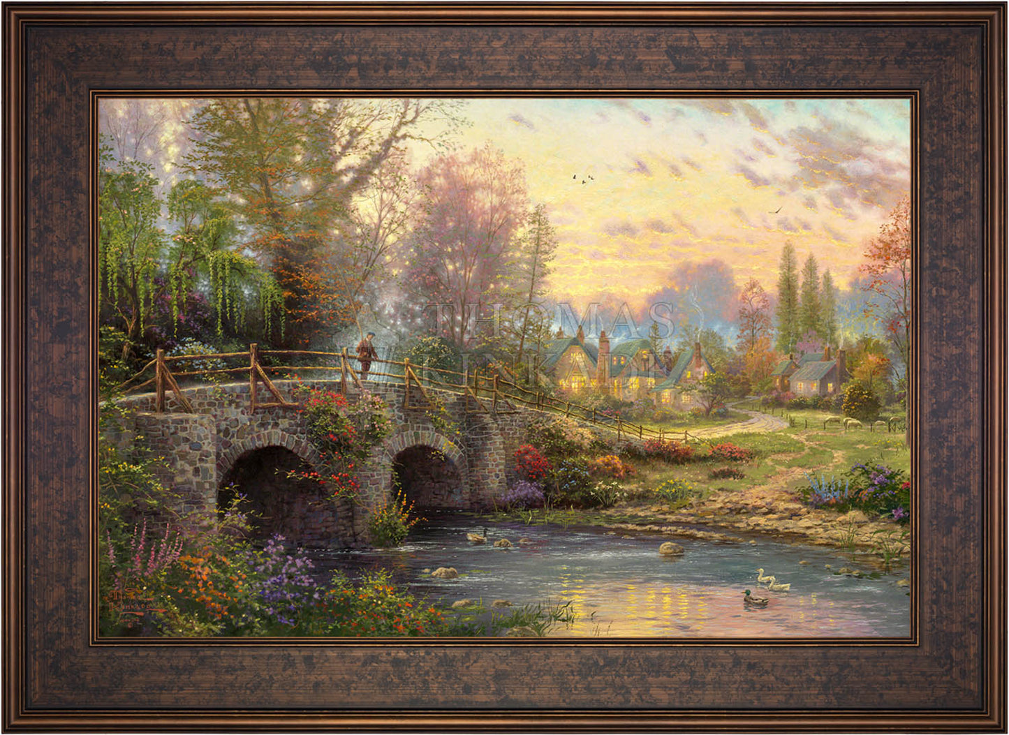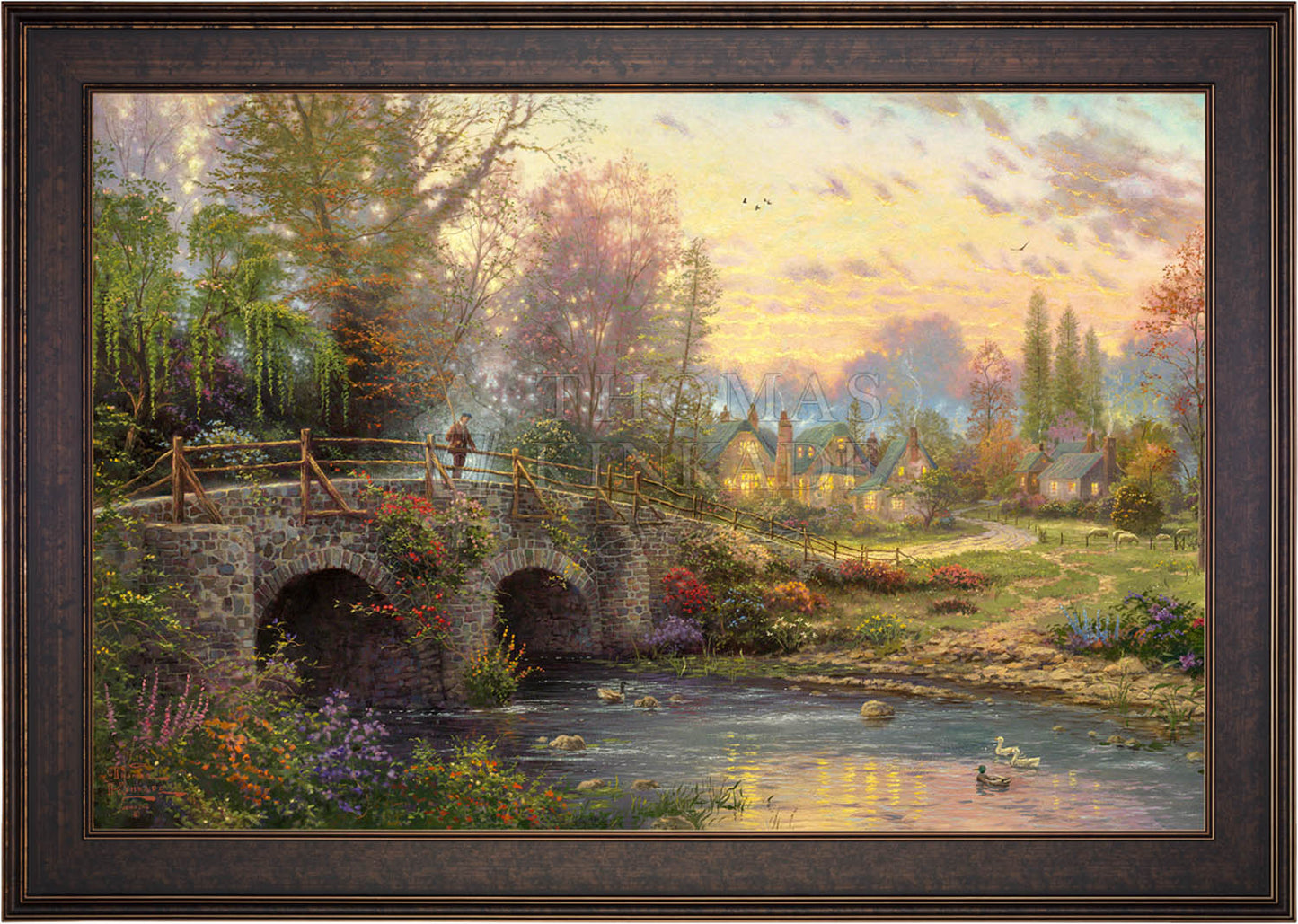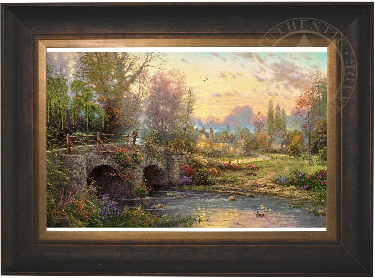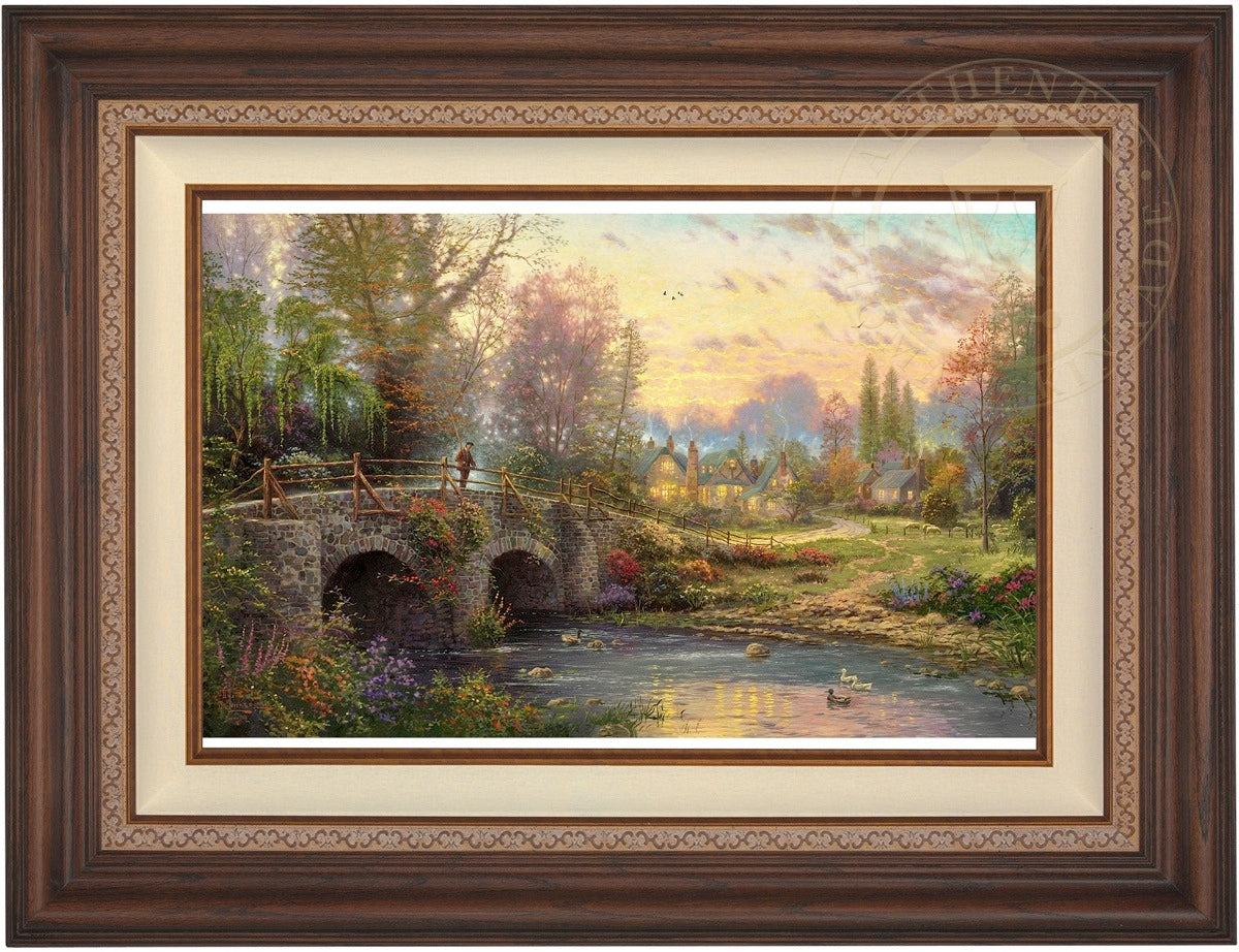 Thomas Kinkade Limited Edition Canvases combine old world craftsmanship with the finest materials and latest production technologies to produce extraordinary canvas artwork. Our reproduction process captures not only the color and mood of Thom's enchanting original painting, but the actual brushwork as well. Every piece is hand-retouched by skilled artisans, giving the painting a look almost identical to the artist's on-easel original. Vibrant colors, rich textures and color tones accurate to Thom's original brushstrokes are the hallmarks of your finished piece.