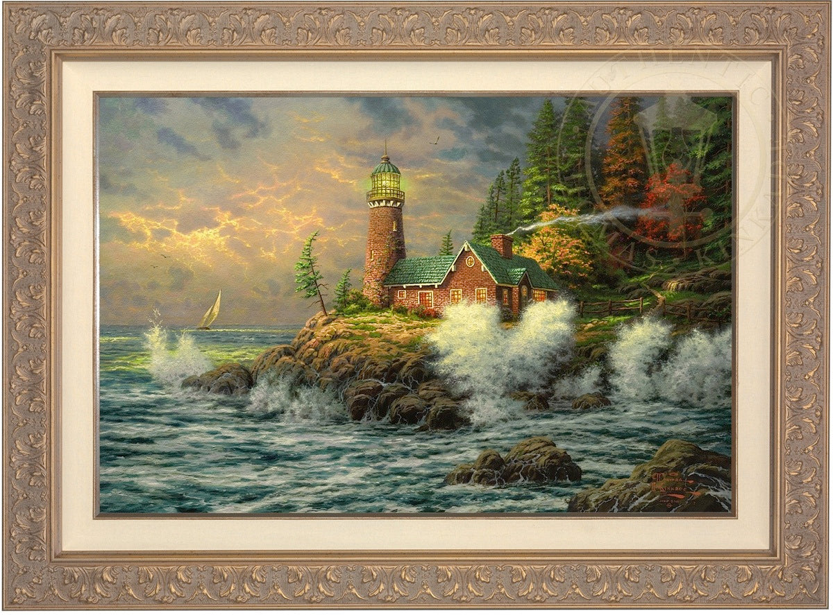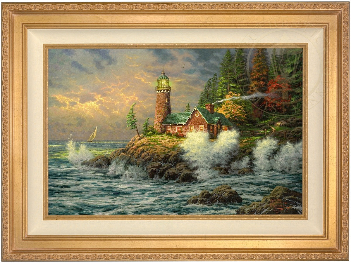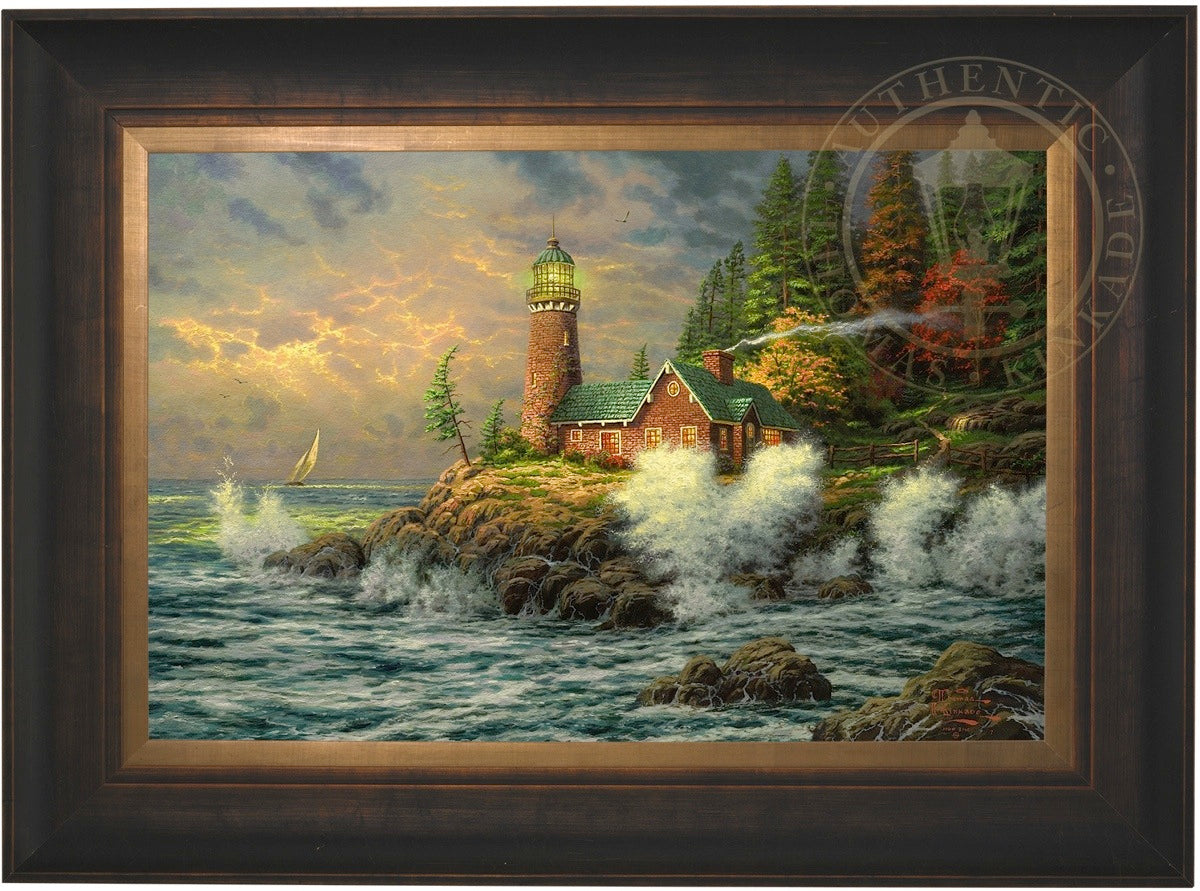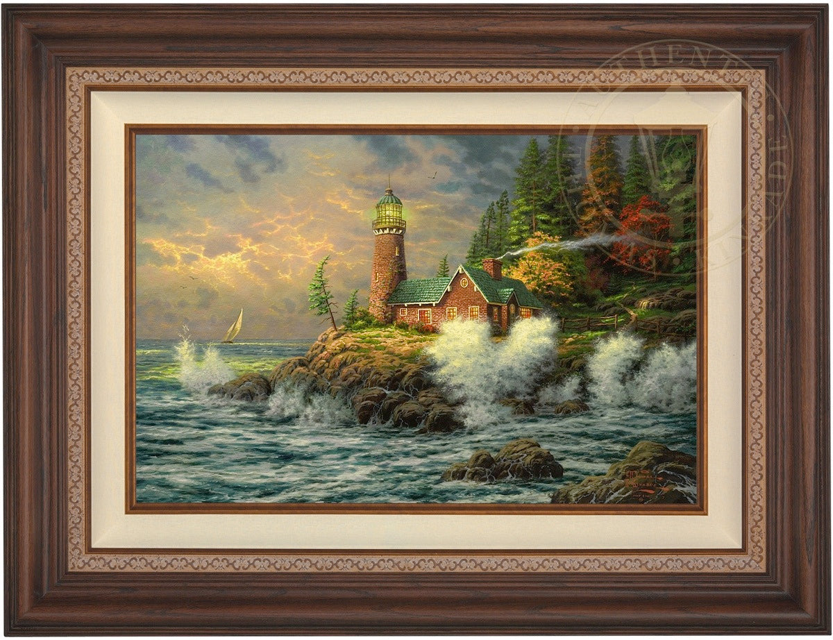 Thomas Kinkade Limited Edition Canvases combine old world craftsmanship with the finest materials and latest production technologies to produce extraordinary canvas artwork. Our reproduction process captures not only the color and mood of Thom's enchanting original painting, but the actual brushwork as well. Every piece is hand-retouched by skilled artisans, giving the painting a look almost identical to the artist's on-easel original. Vibrant colors, rich textures and color tones accurate to Thom's original brushstrokes are the hallmarks of your finished piece.