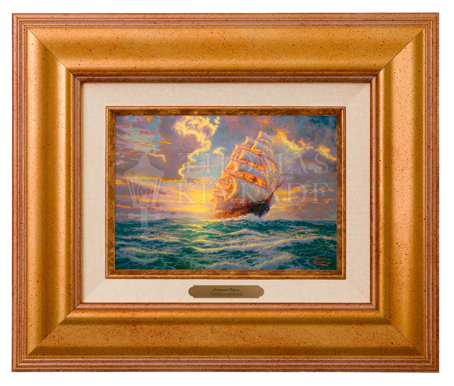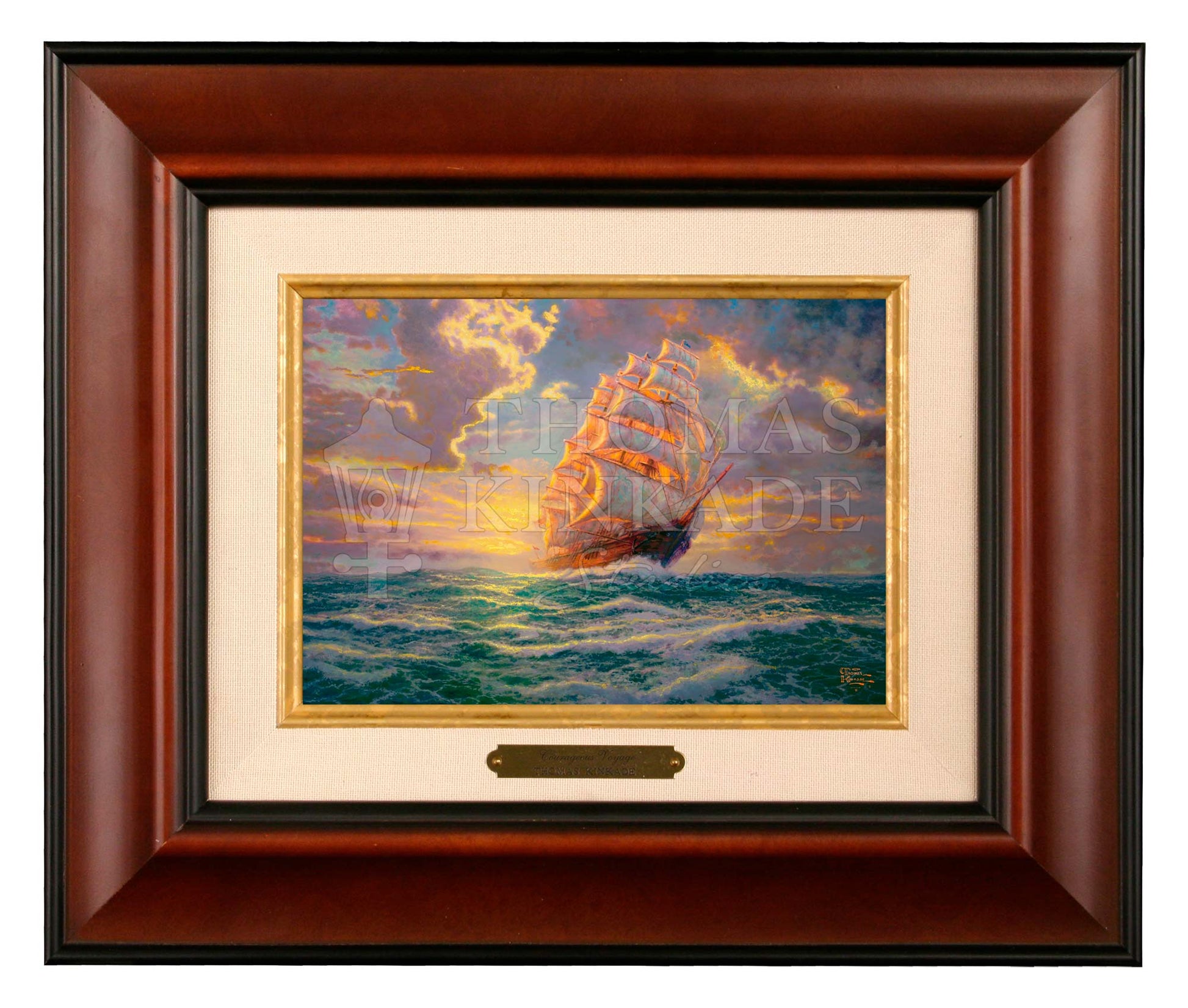 As I set my brush to canvas, I could not envisage a better tribute to courage and hope, than a lone clipper ship defiantly pushing through the ocean's fury against the backdrop of a clearing sky radiant with hope and light. I have always had a great respect for the clipper ship artists of the past for whom the sea represented the only connection to a new world and promises of a new day. Courageous Voyage is as much a tribute to a man like Montague Dawson whose early images of the sea inspired me, as it is a message to those mired in challenge and praying for opportunity and new beginnings. I trust that this image will encourage you to face the swells of life with a profound courage secure in the hope, instilled through providence and faith, that tomorrow is in His hands...that the storm is clearing...that the sun is ushering in a vibrant new day...and that your Courageous Voyage has set you upon the tides of remarkable ventures.