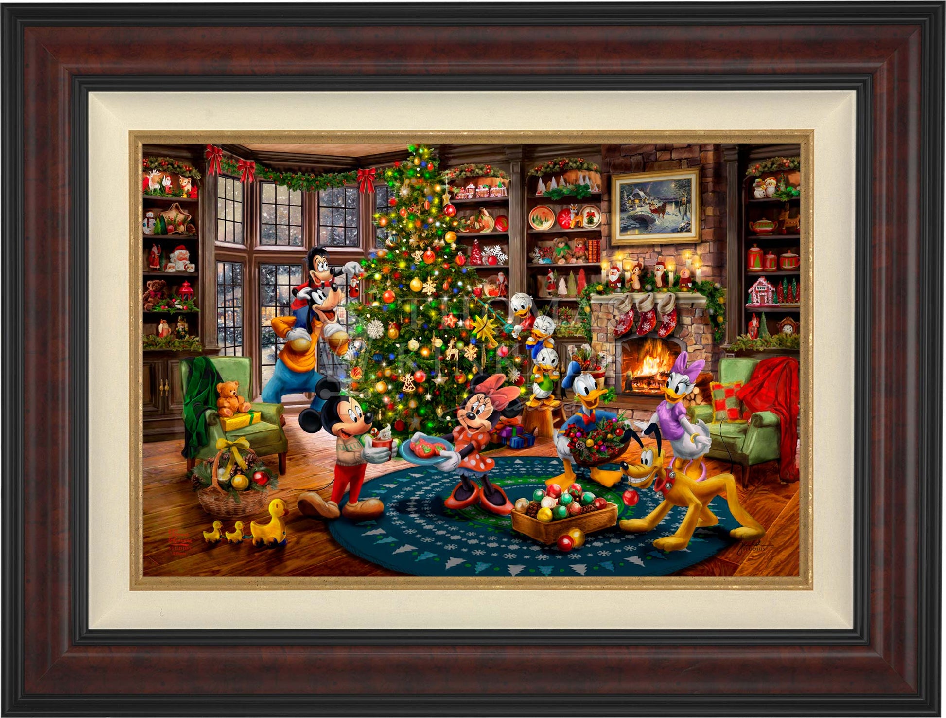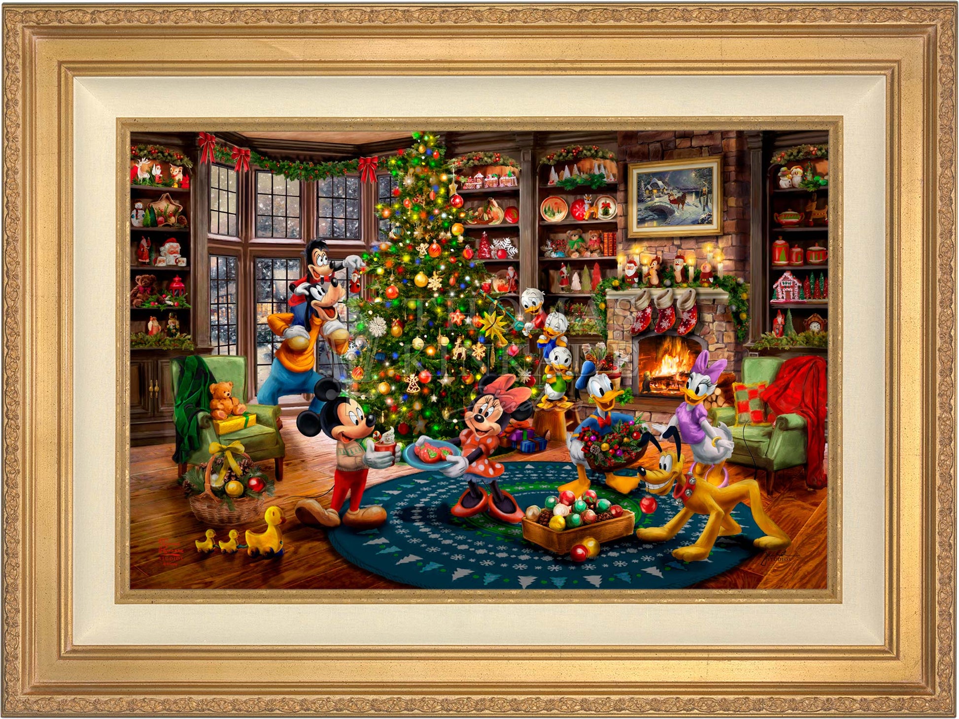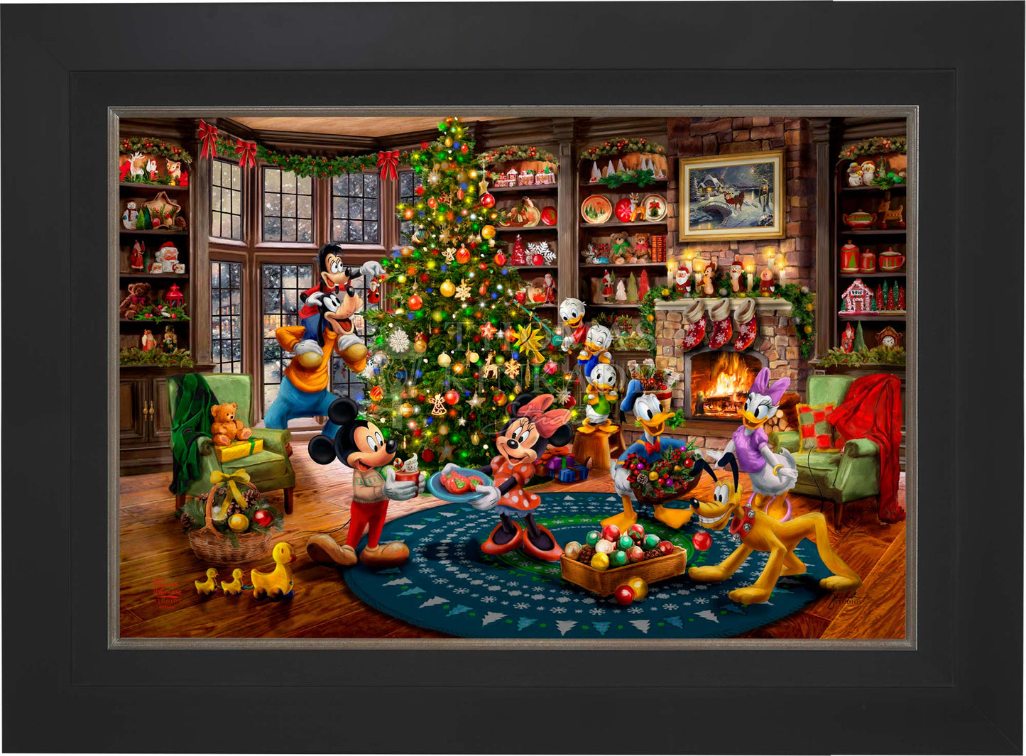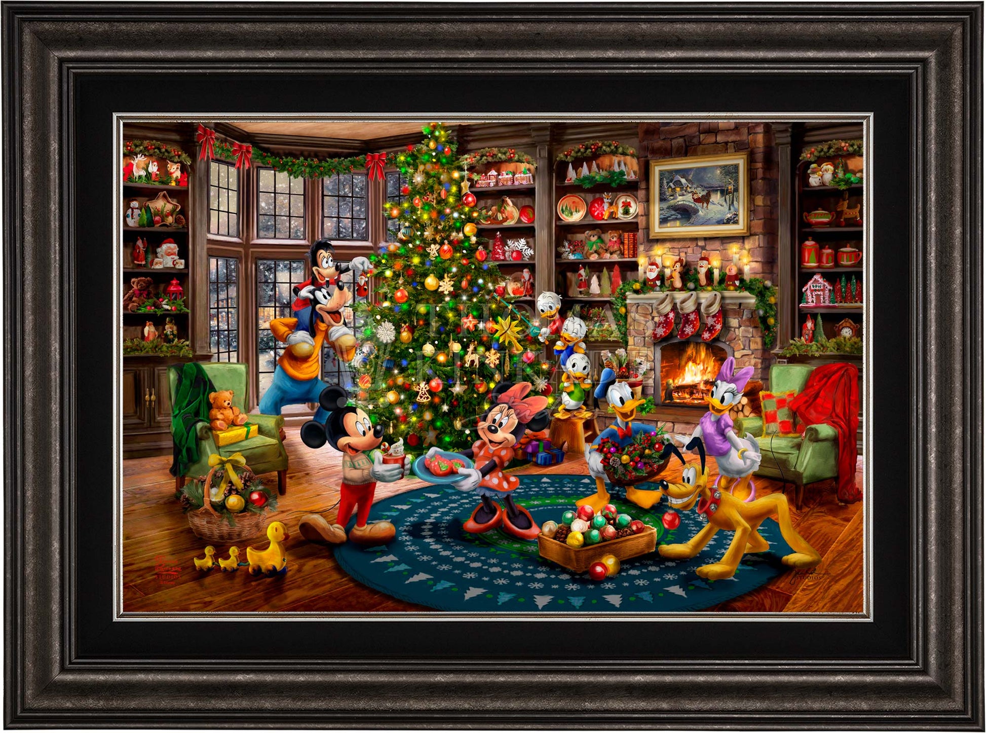 Thomas Kinkade Studios presents the seventh painting in the Friendship Moments series, Disney Mickey and Minnie Trimming the Tree. The crackling fire is casting a warmth as all our favorite Disney friends have come together to begin the celebration of the Christmas season.