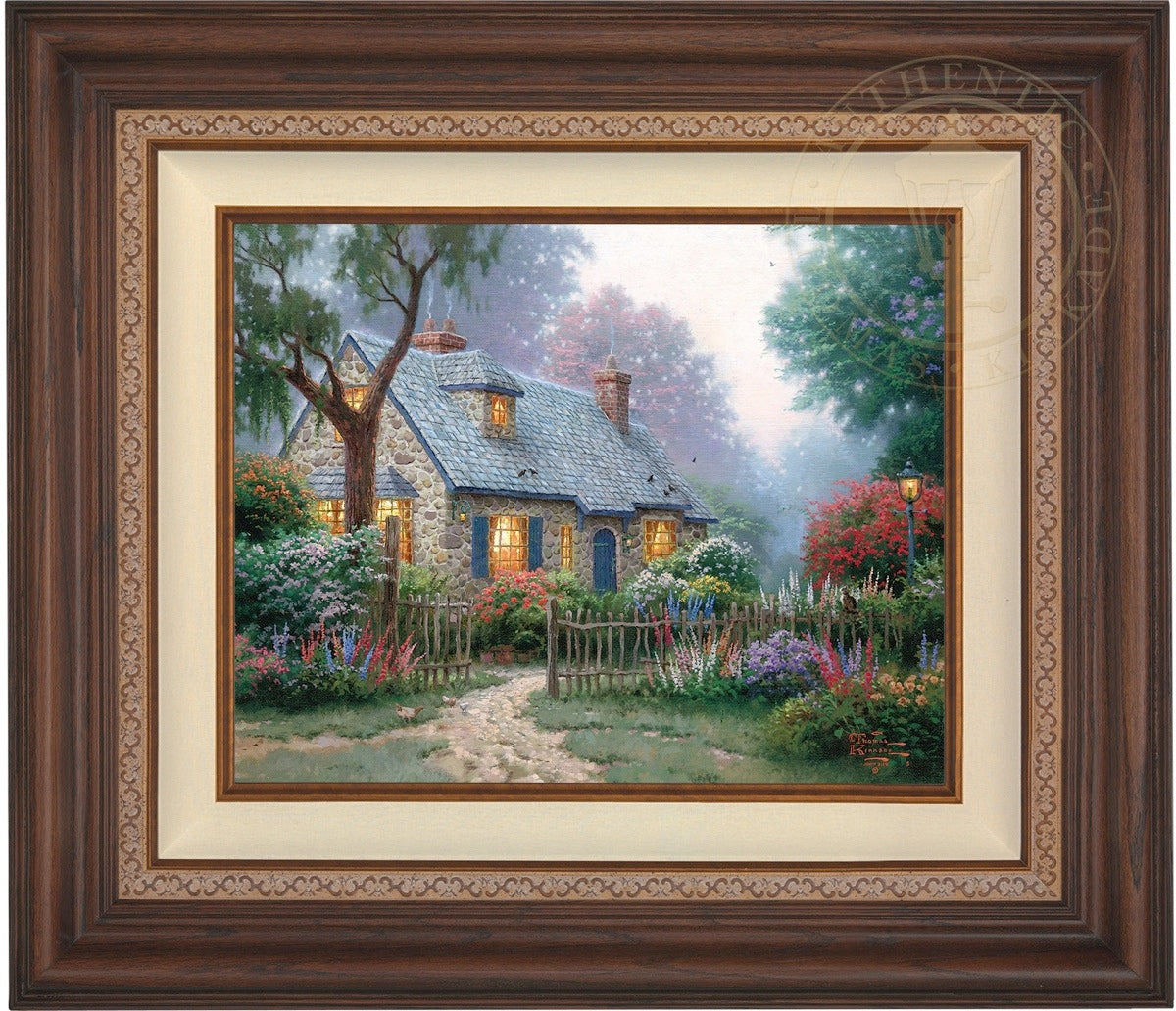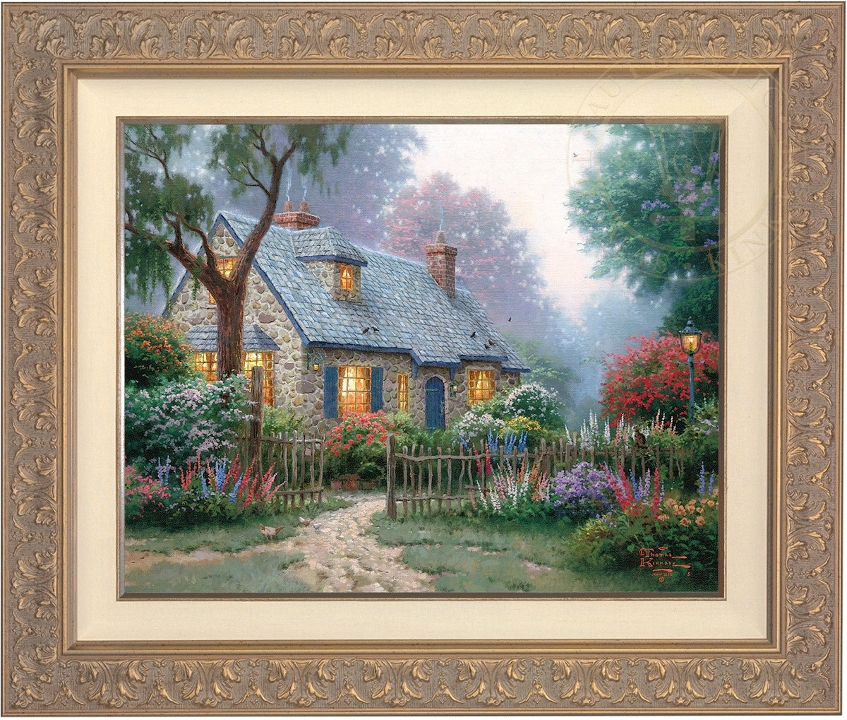 Thomas Kinkade Limited Edition Canvases combine old world craftsmanship with the finest materials and latest production technologies to produce extraordinary canvas artwork. Our reproduction process captures not only the color and mood of Thom's enchanting original painting, but the actual brushwork as well. Every piece is hand-retouched by skilled artisans, giving the painting a look almost identical to the artist's on-easel original. Vibrant colors, rich textures and color tones accurate to Thom's original brushstrokes are the hallmarks of your finished piece.