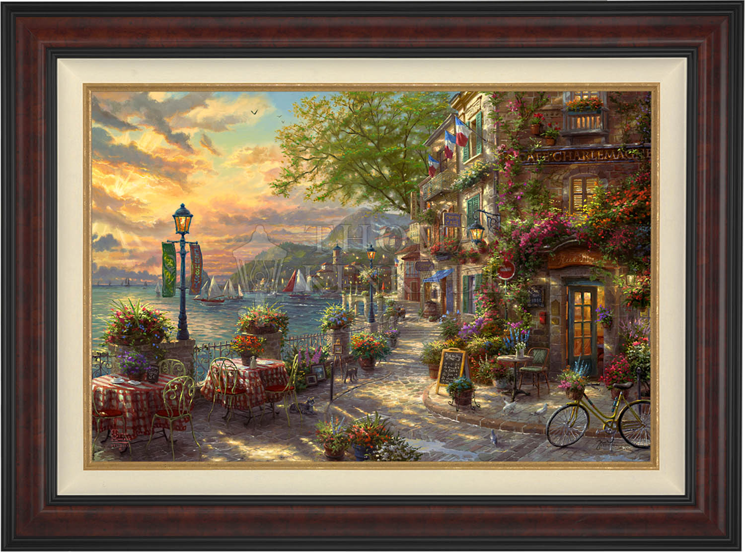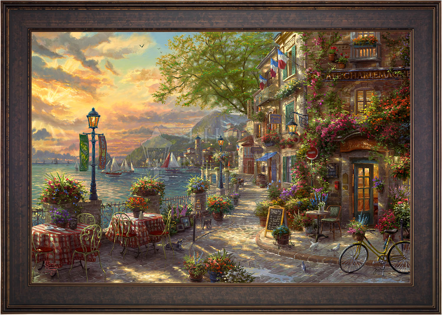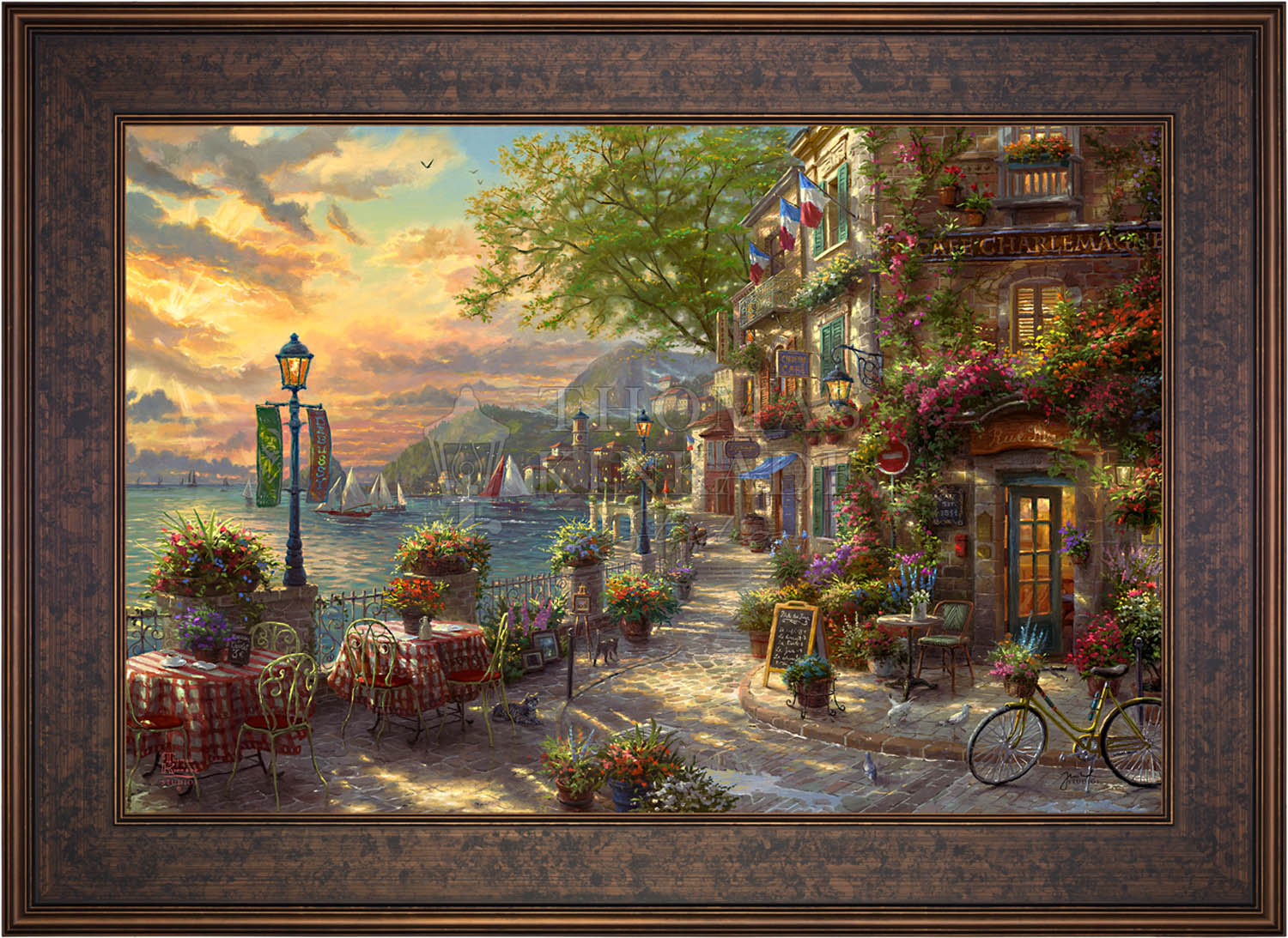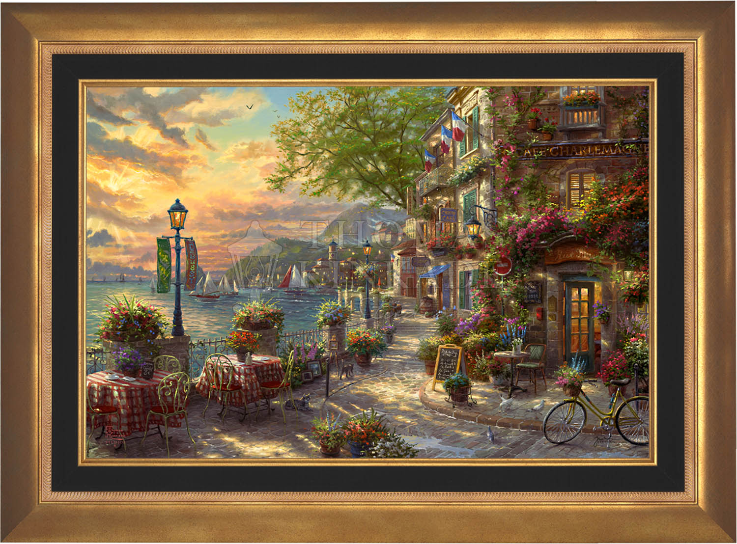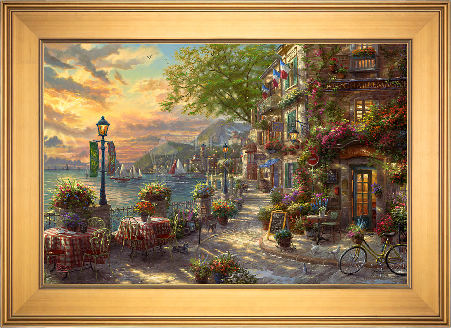 Allow Thomas Kinkade Studios to draw you into the glamourous hills and streets of France’s salty shores of the Mediterranean Sea with the release of their newest painting, French Riviera Café , a work that encapsulates every alluring aspect of southern France.
