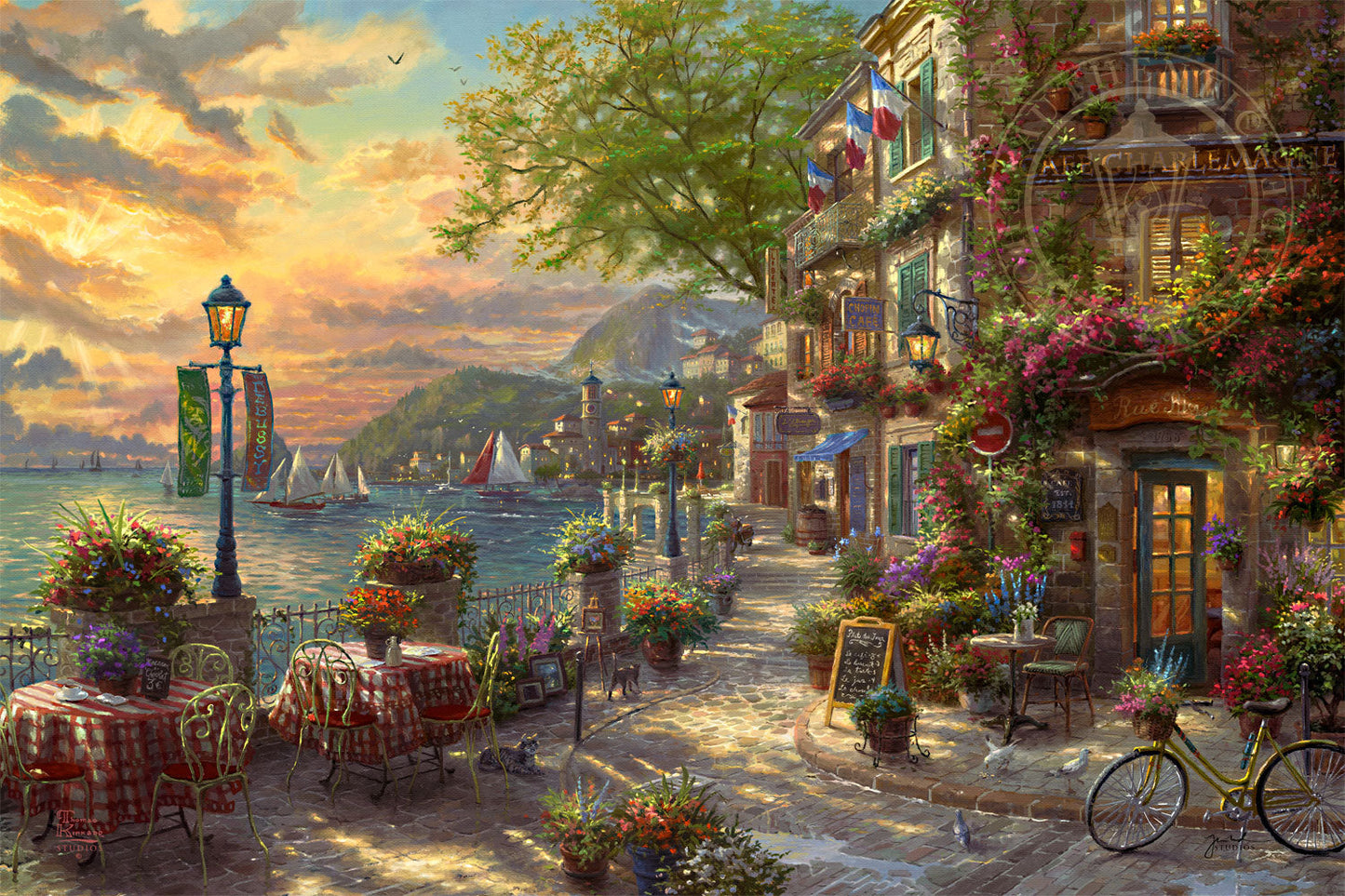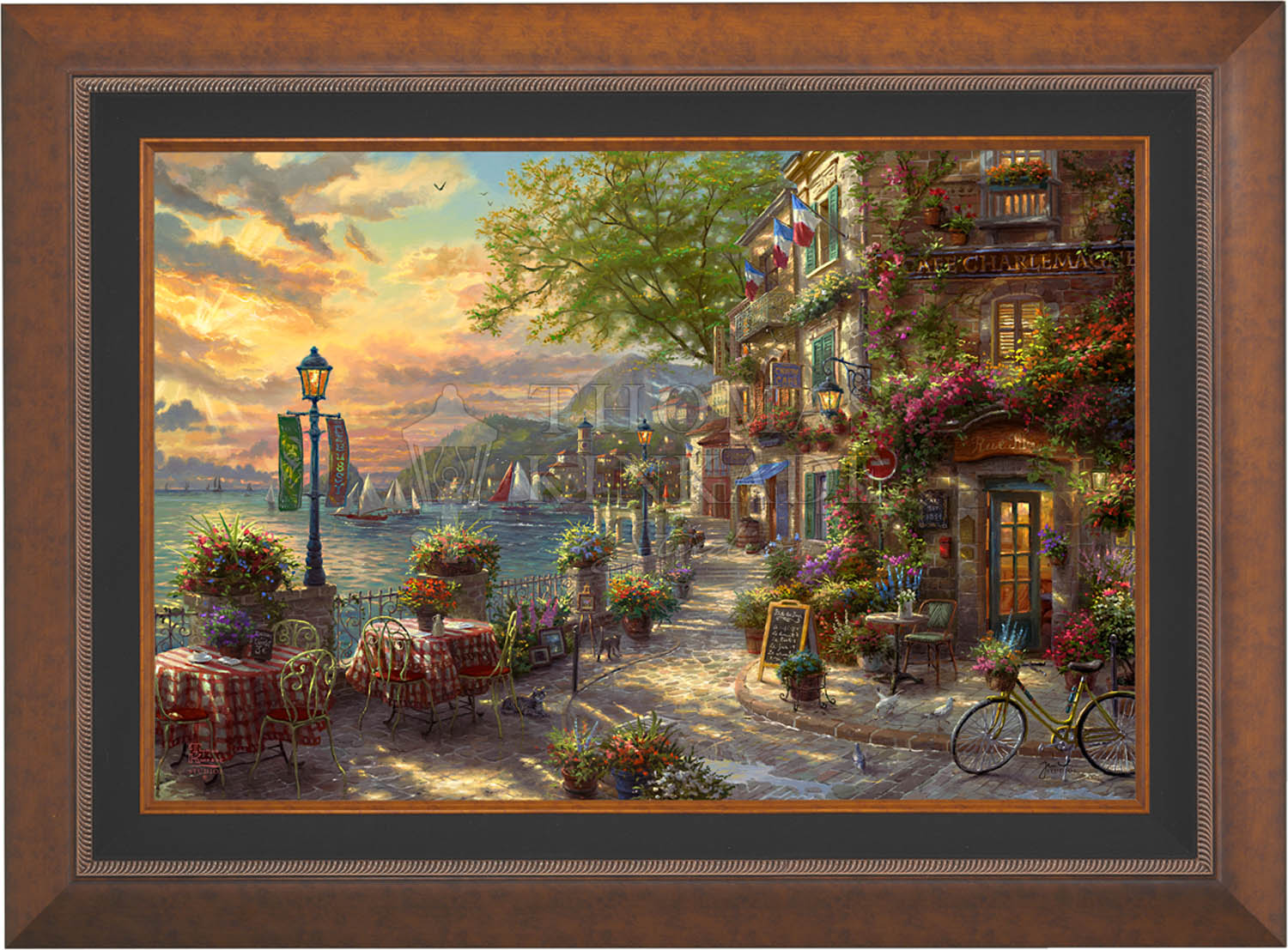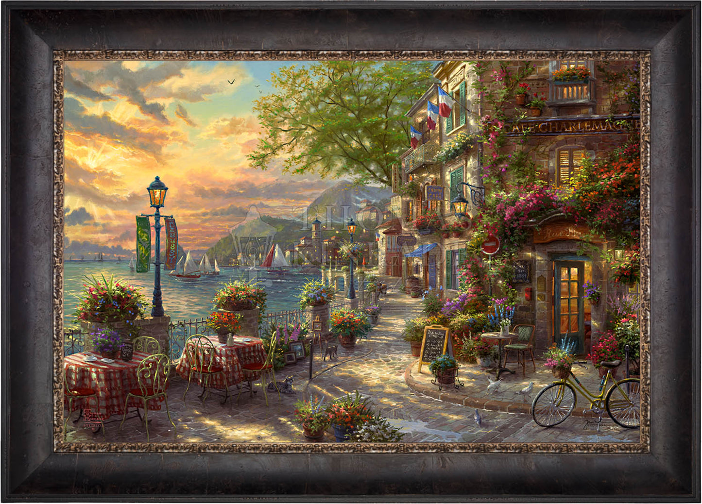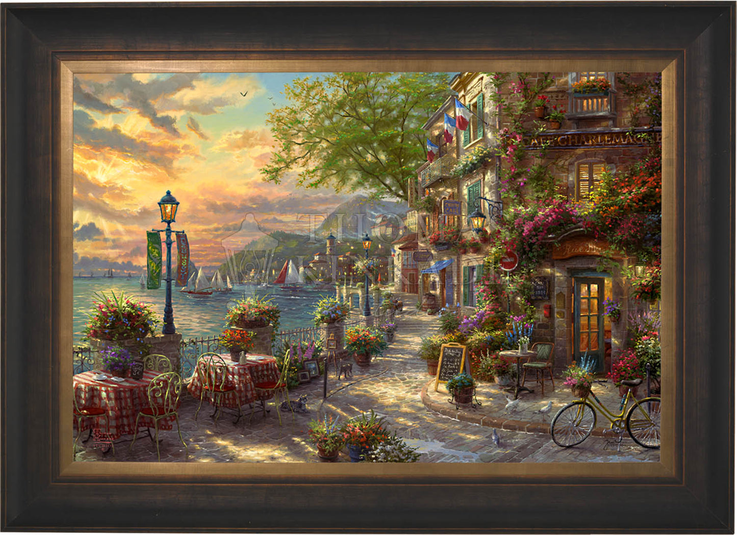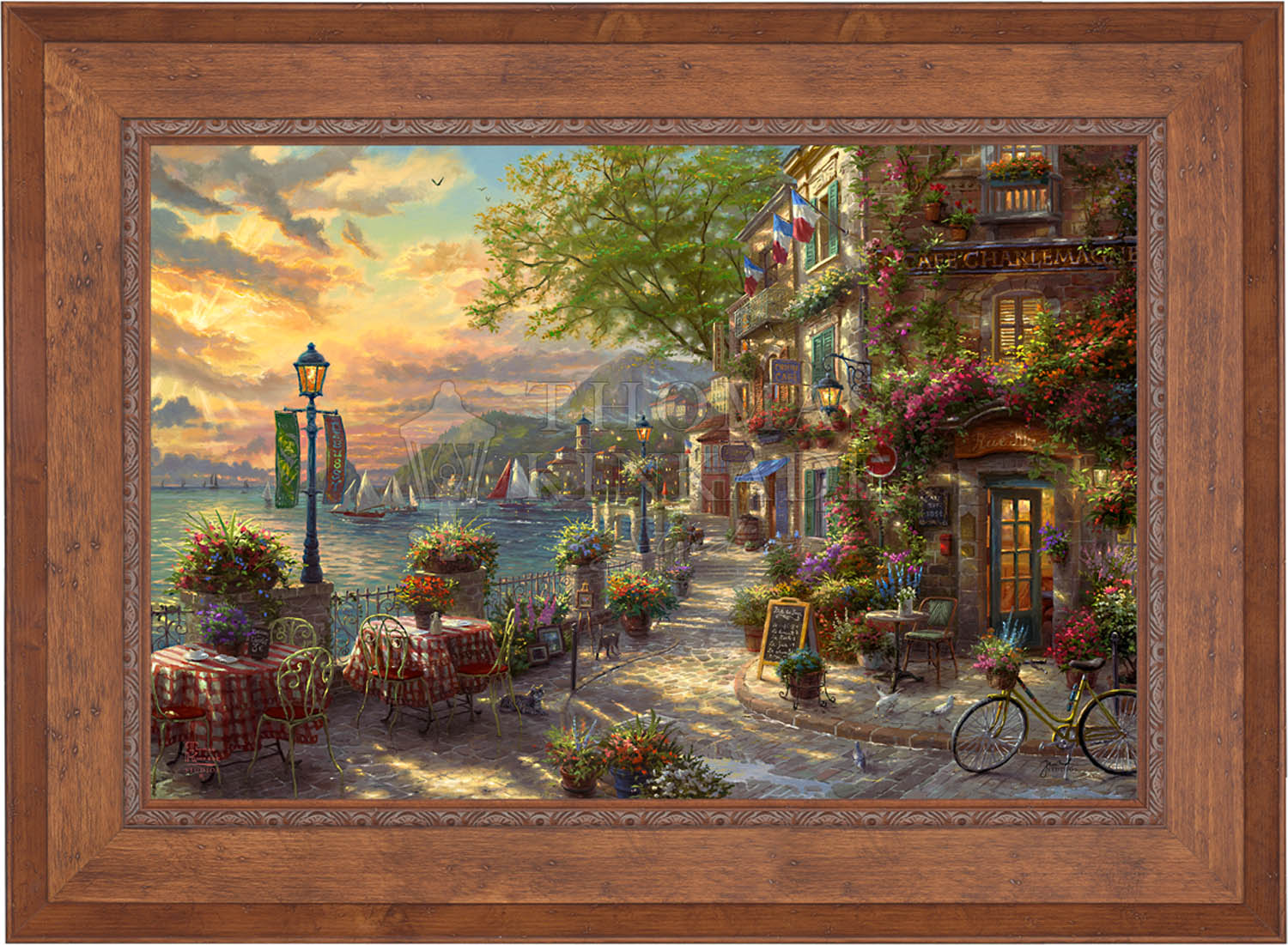 Allow Thomas Kinkade Studios to draw you into the glamourous hills and streets of France’s salty shores of the Mediterranean Sea with the release of their newest painting, French Riviera Café , a work that encapsulates every alluring aspect of southern France.