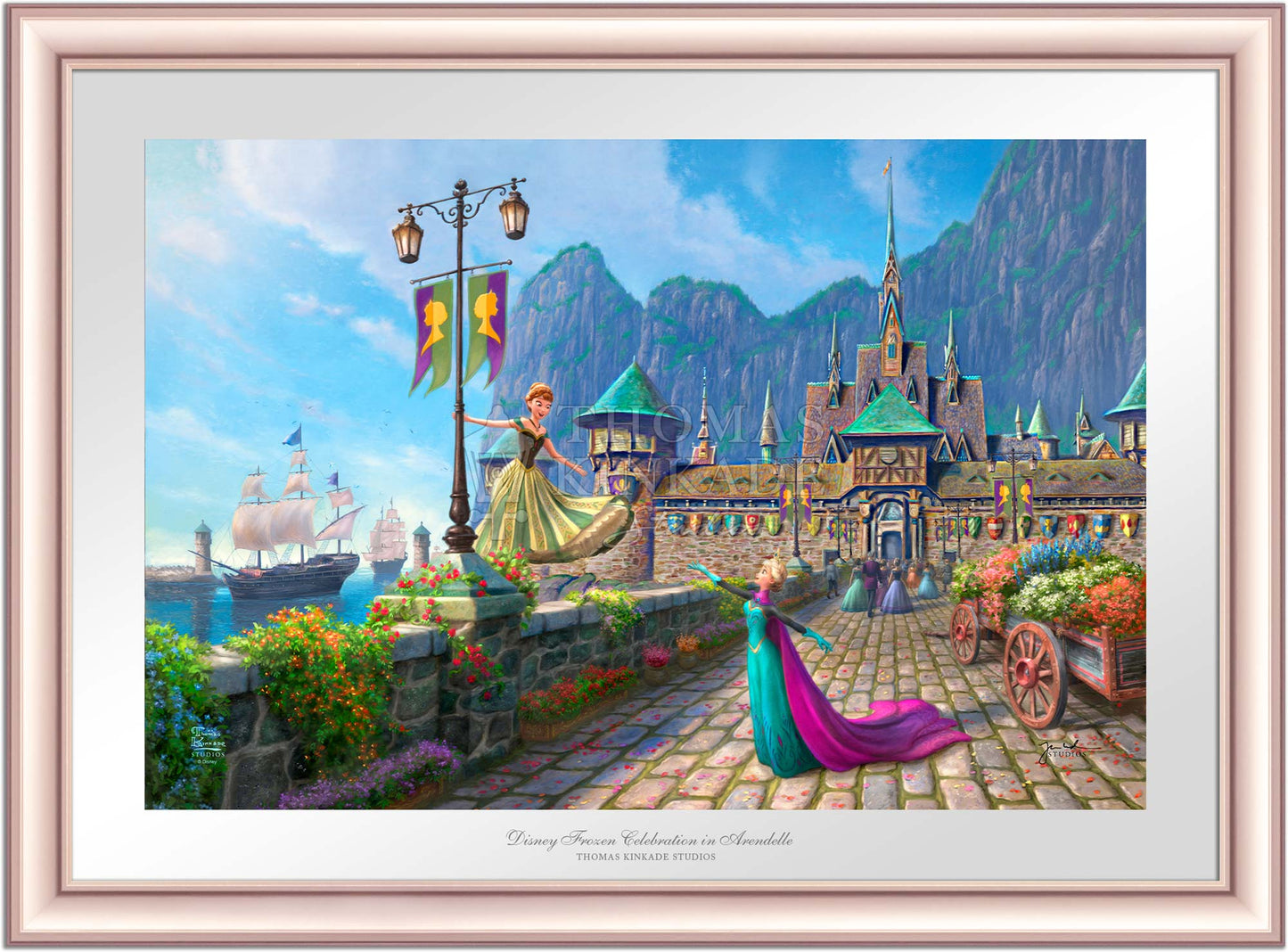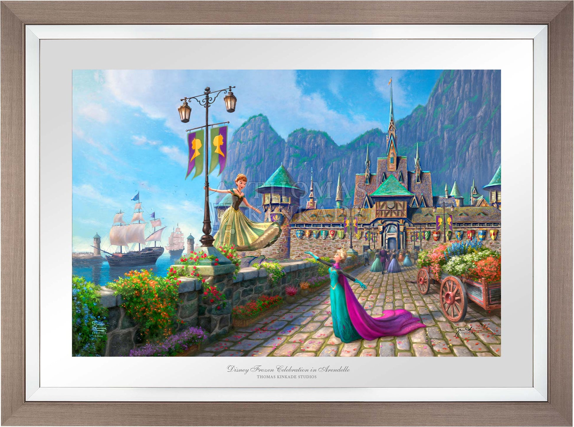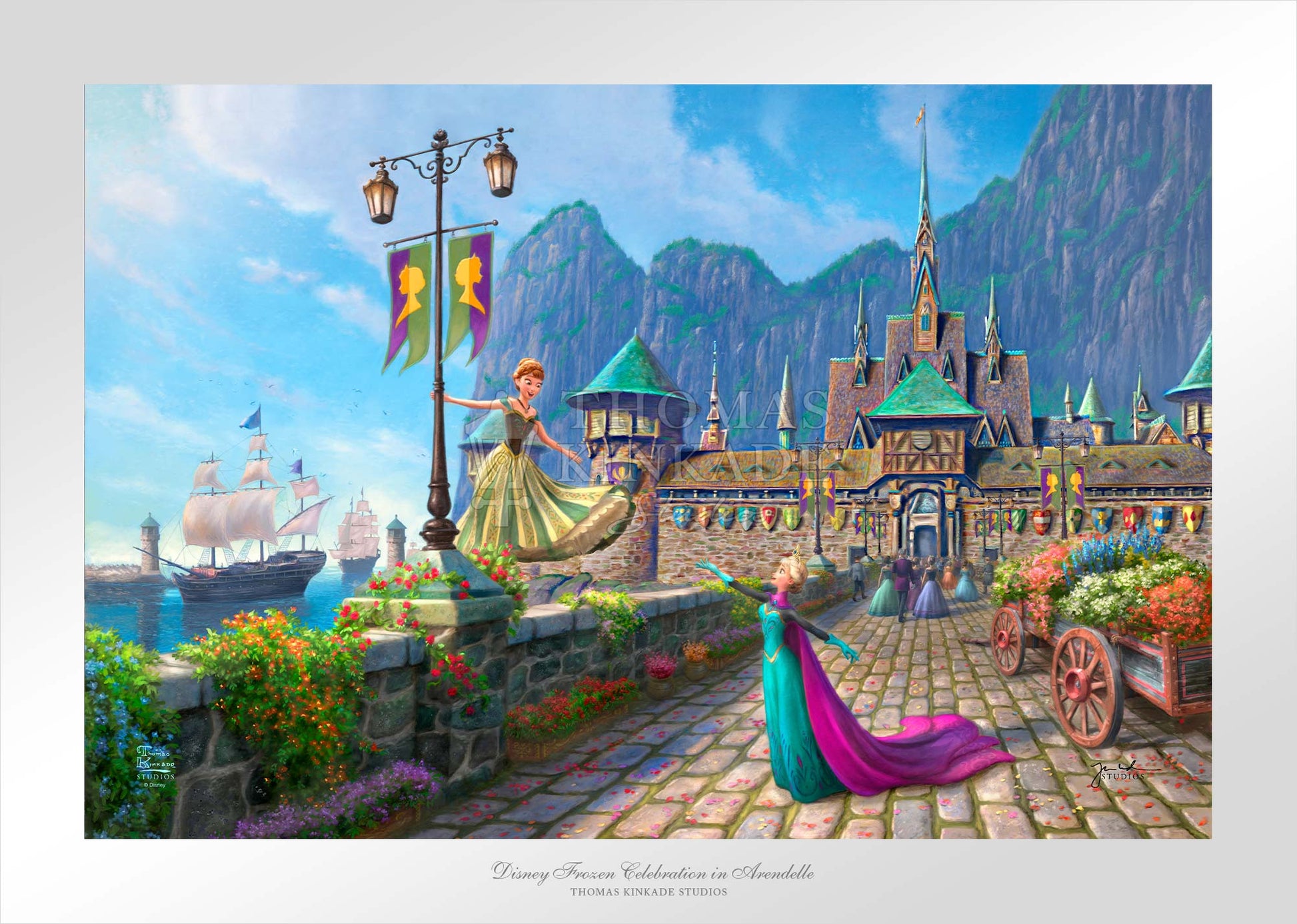 - Disney Frozen Celebration in Arendelle is the second time Thomas Kinkade Studios has collaborated with Disney to create art featuring moments from this classic film. The first painting was Disney Frozen.