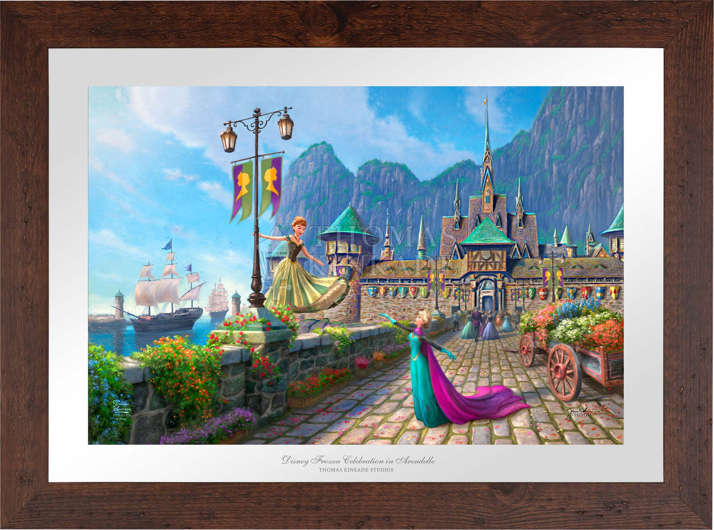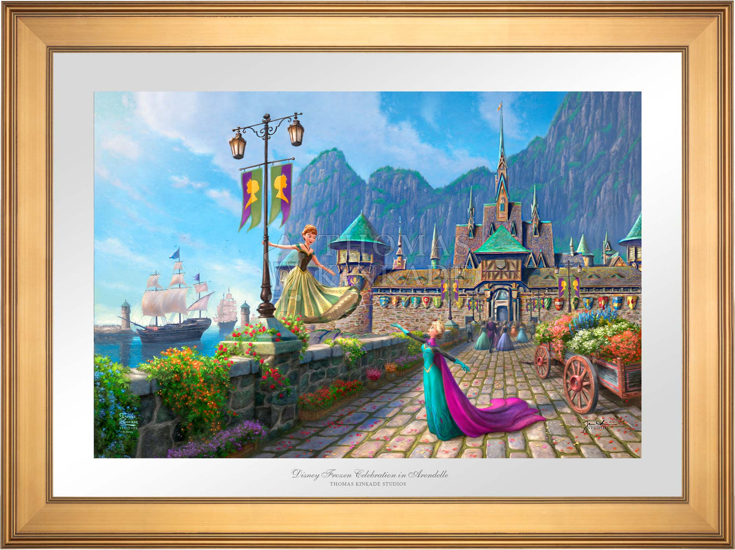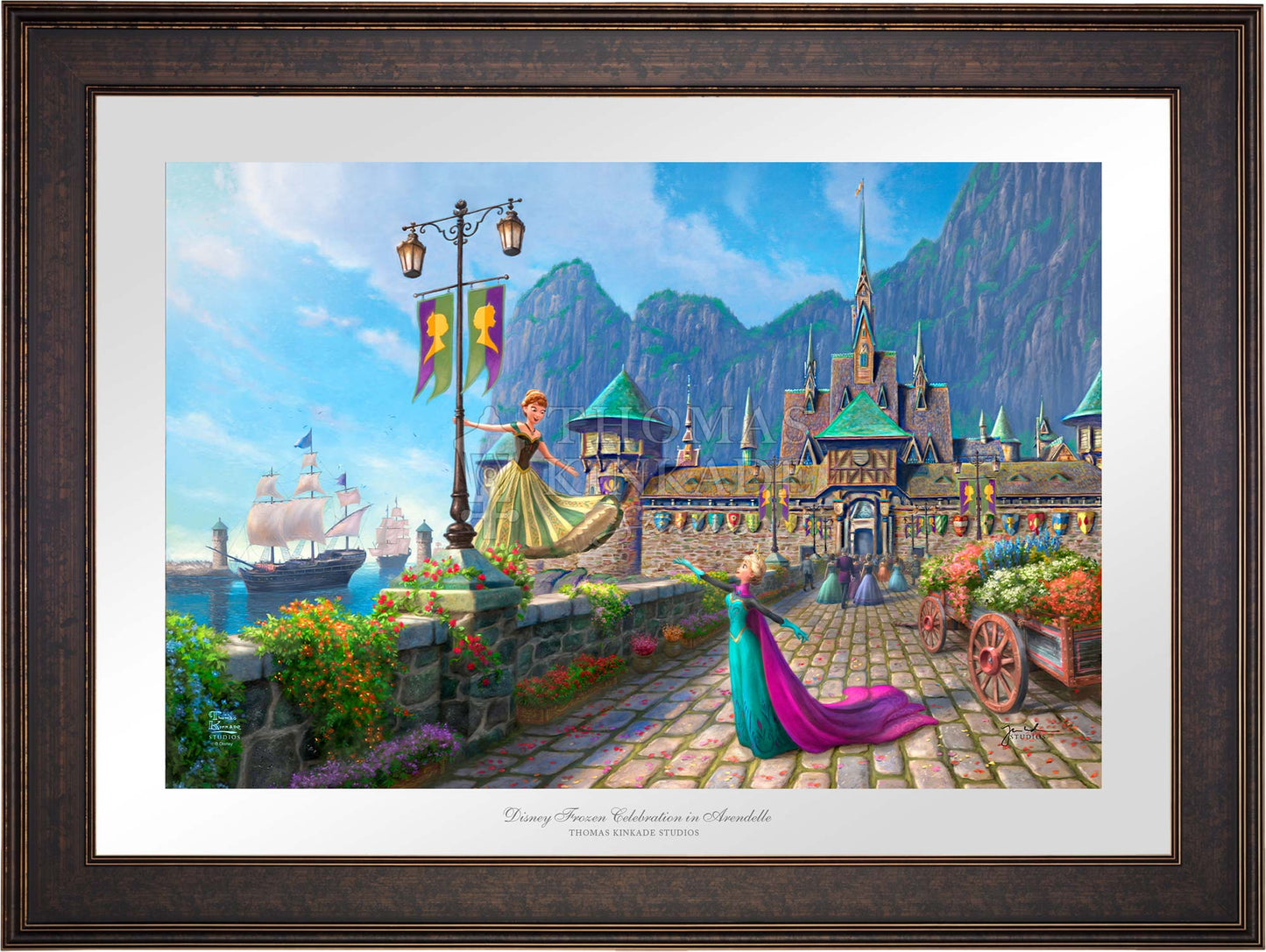 - Disney Frozen Celebration in Arendelle is the second time Thomas Kinkade Studios has collaborated with Disney to create art featuring moments from this classic film. The first painting was Disney Frozen.