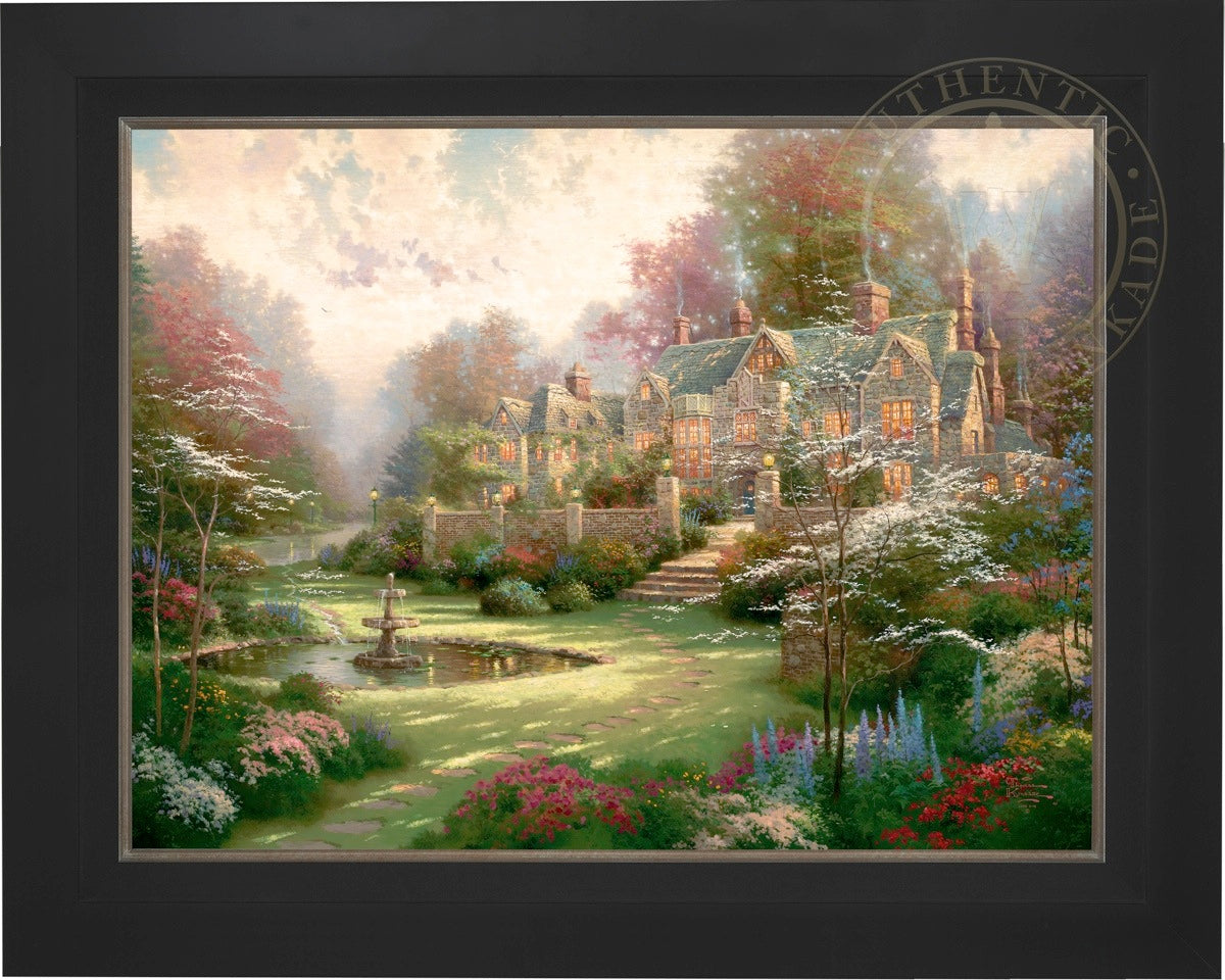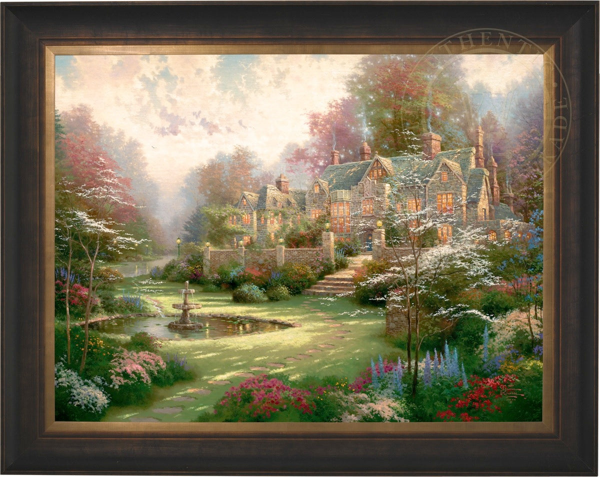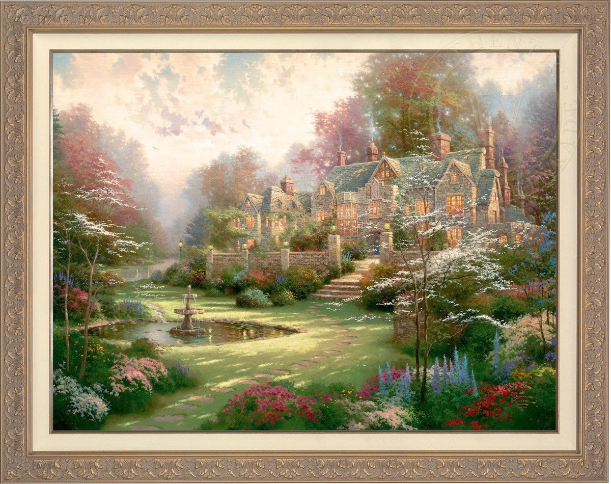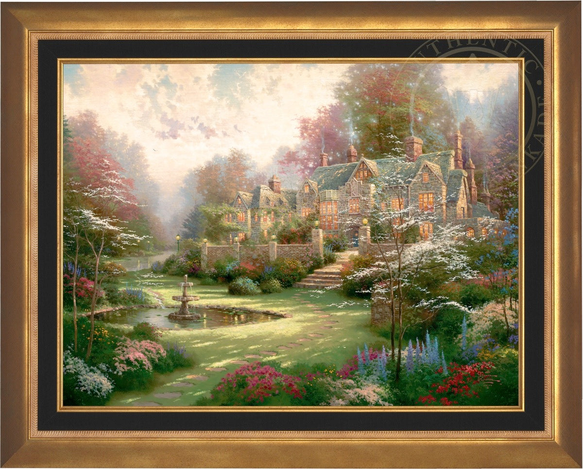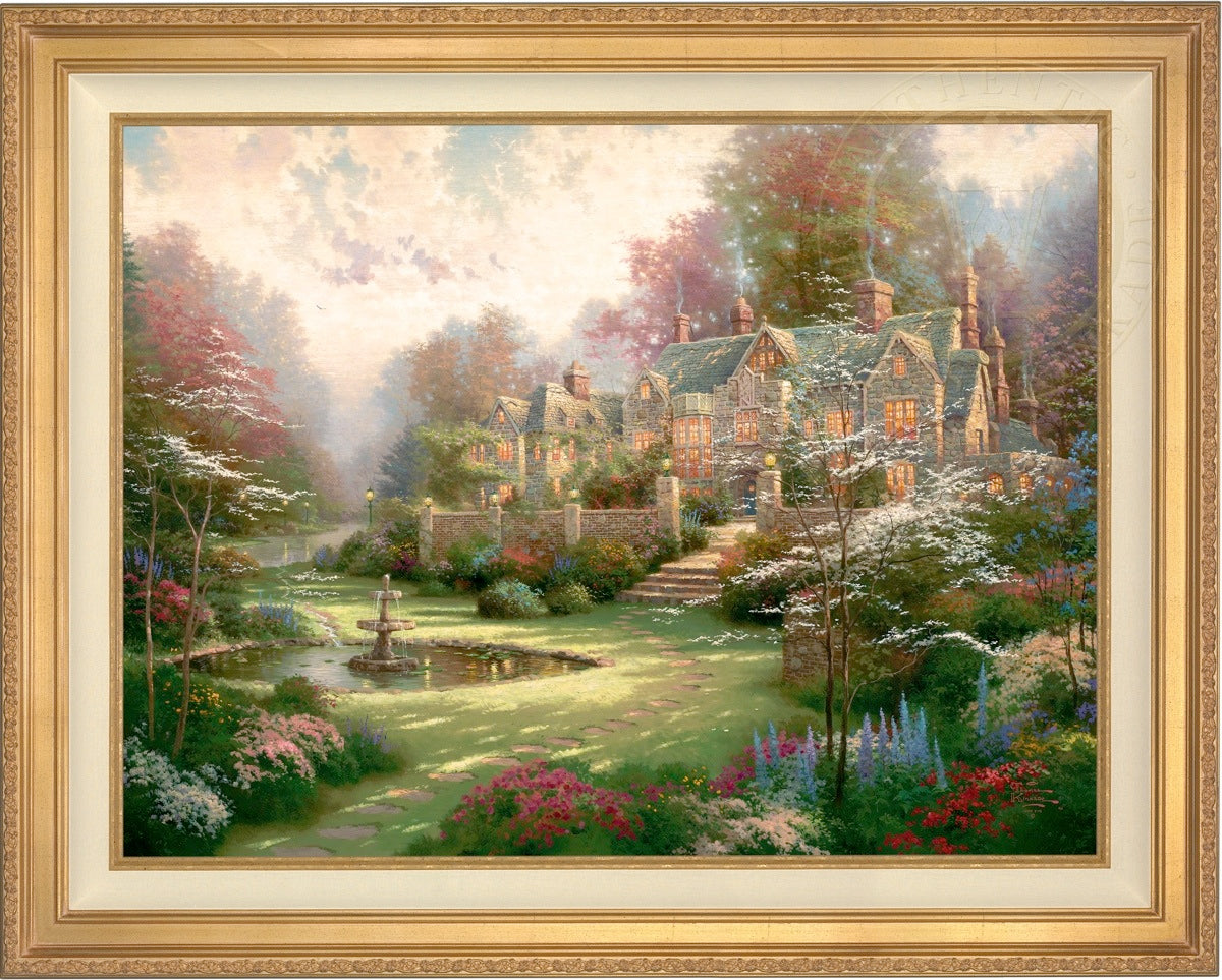 Thomas Kinkade Limited Edition Canvases combine old world craftsmanship with the finest materials and latest production technologies to produce extraordinary canvas artwork. Our reproduction process captures not only the color and mood of Thom's enchanting original painting, but the actual brushwork as well. Every piece is hand-retouched by skilled artisans, giving the painting a look almost identical to the artist's on-easel original. Vibrant colors, rich textures and color tones accurate to Thom's original brushstrokes are the hallmarks of your finished piece.