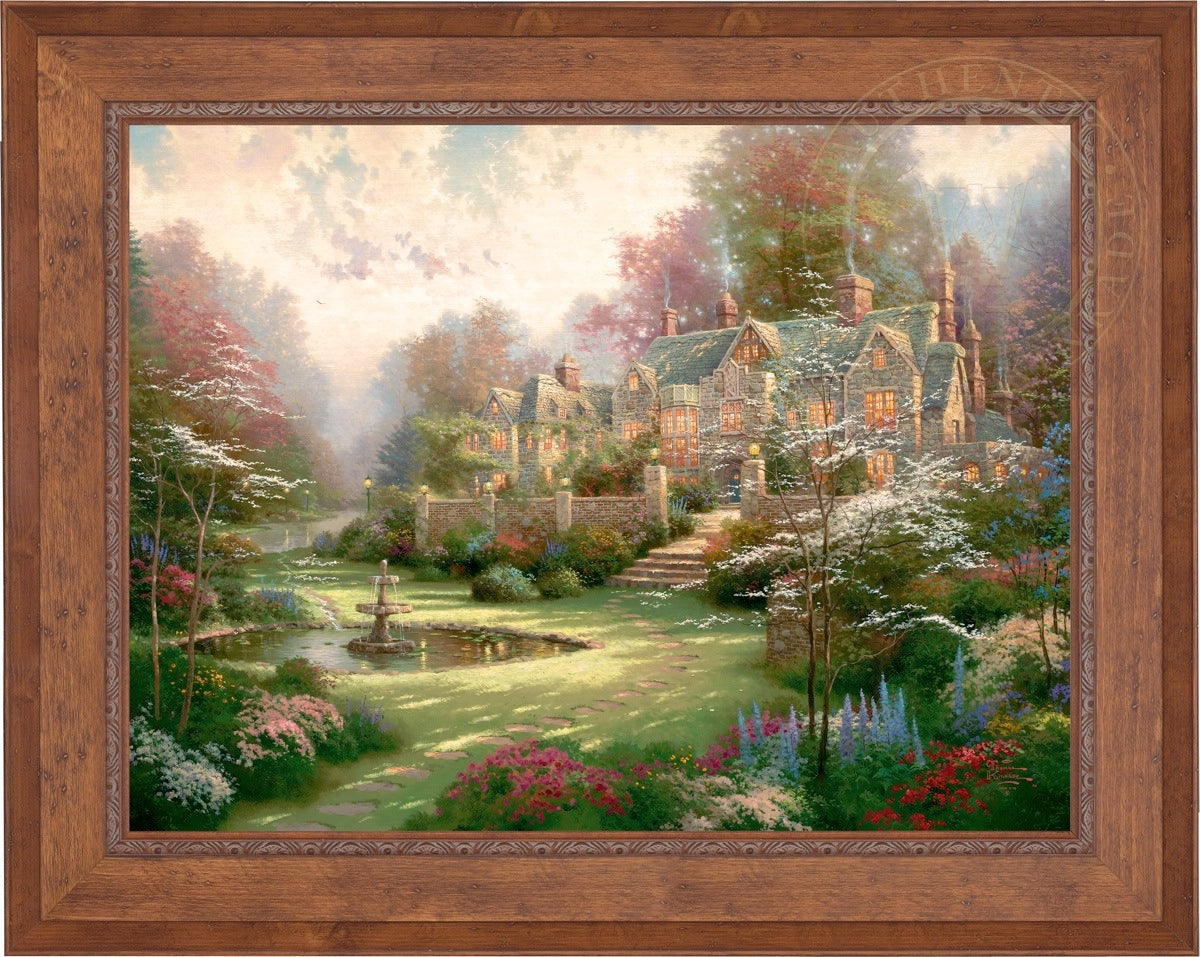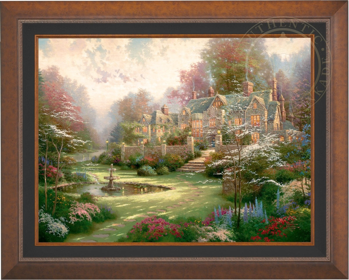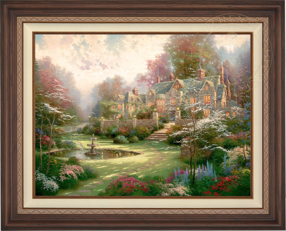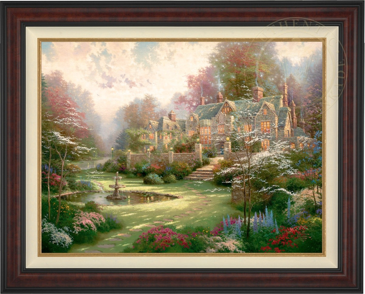 Thomas Kinkade Limited Edition Canvases combine old world craftsmanship with the finest materials and latest production technologies to produce extraordinary canvas artwork. Our reproduction process captures not only the color and mood of Thom's enchanting original painting, but the actual brushwork as well. Every piece is hand-retouched by skilled artisans, giving the painting a look almost identical to the artist's on-easel original. Vibrant colors, rich textures and color tones accurate to Thom's original brushstrokes are the hallmarks of your finished piece.