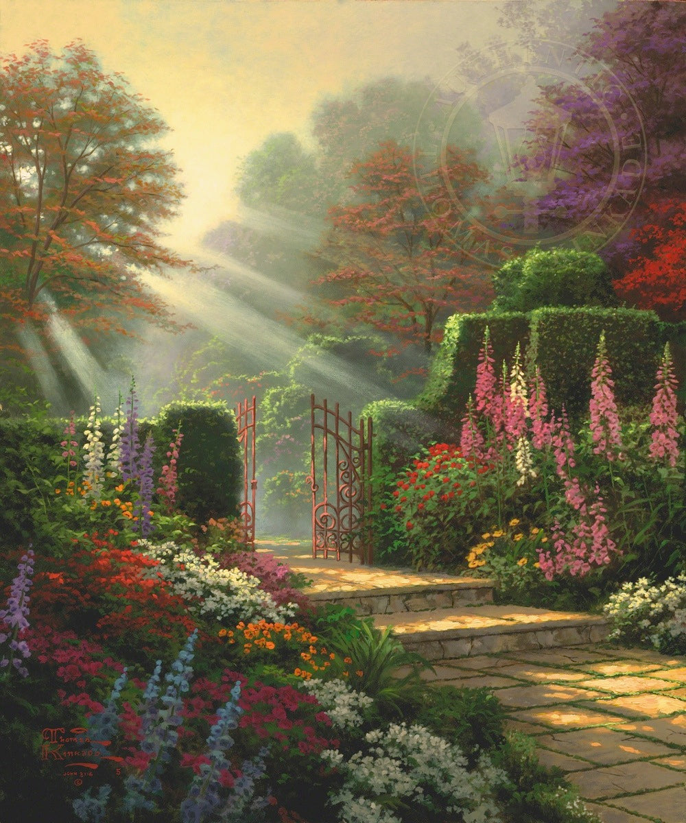 "Amazing Grace, how sweet the sound ..." How sweet, too, are the sights that await us in the "Garden of Grace." And the scents. I think of a melodious harmony of bird song, of the heady perfume of flowers wafted on the breeze. Above all, I imagine a glorious light that pours through the foliage, clothing the trees and shrubs in its resplendent radiance. What can lie beyond the aged, wrought iron gate that opens into the "Garden of Grace?" Surely, abundant blessings and God's tender mercies await.