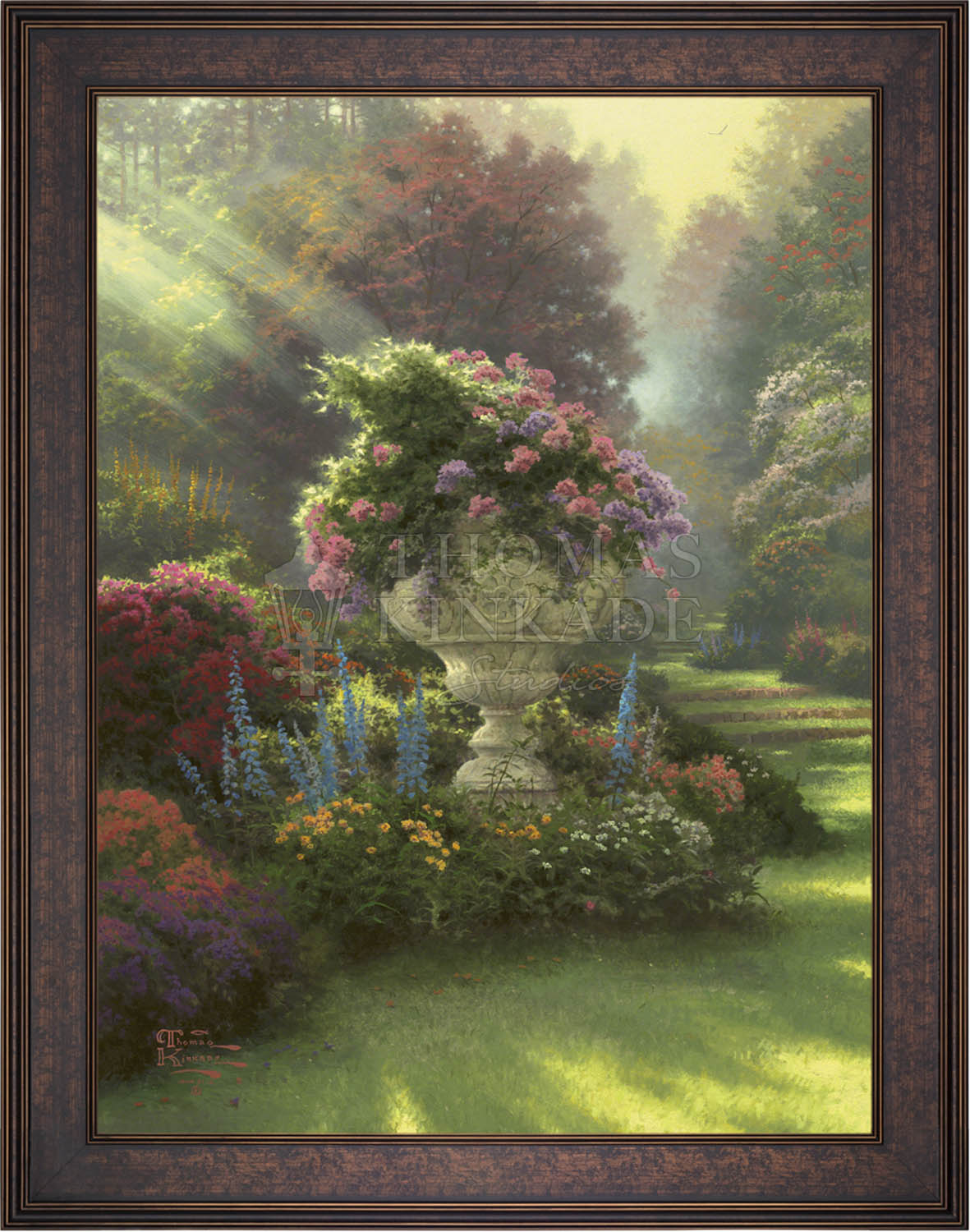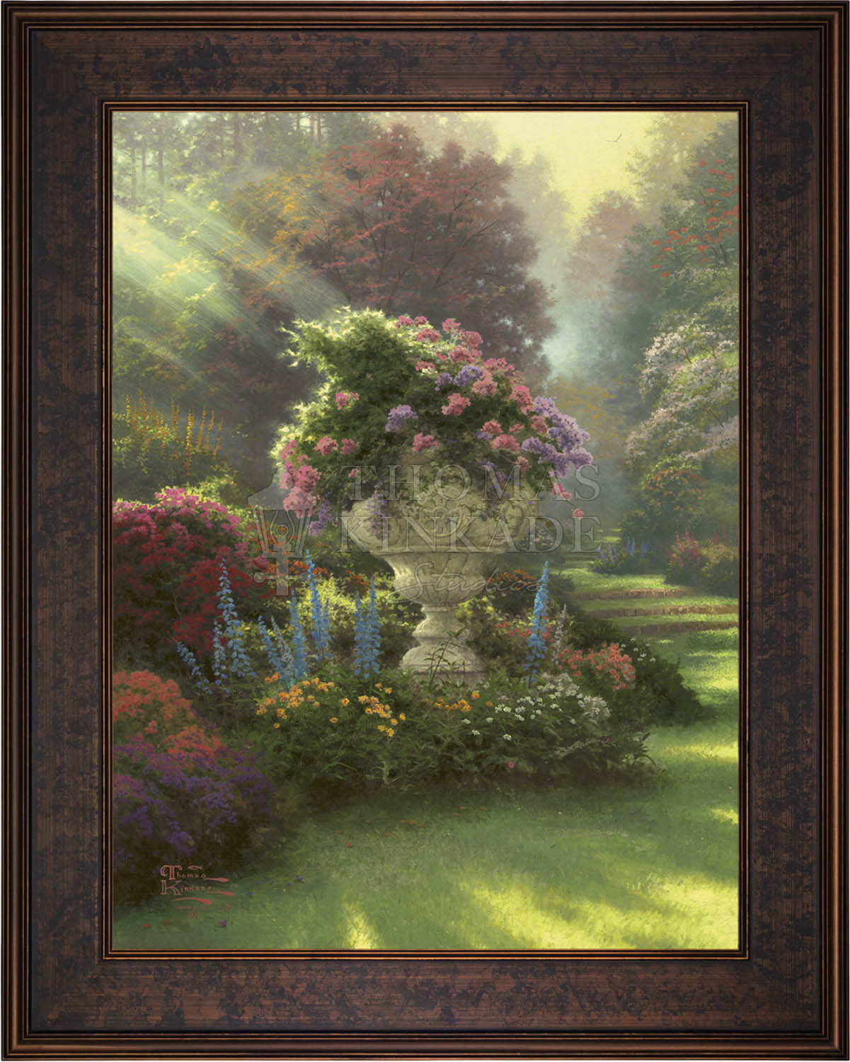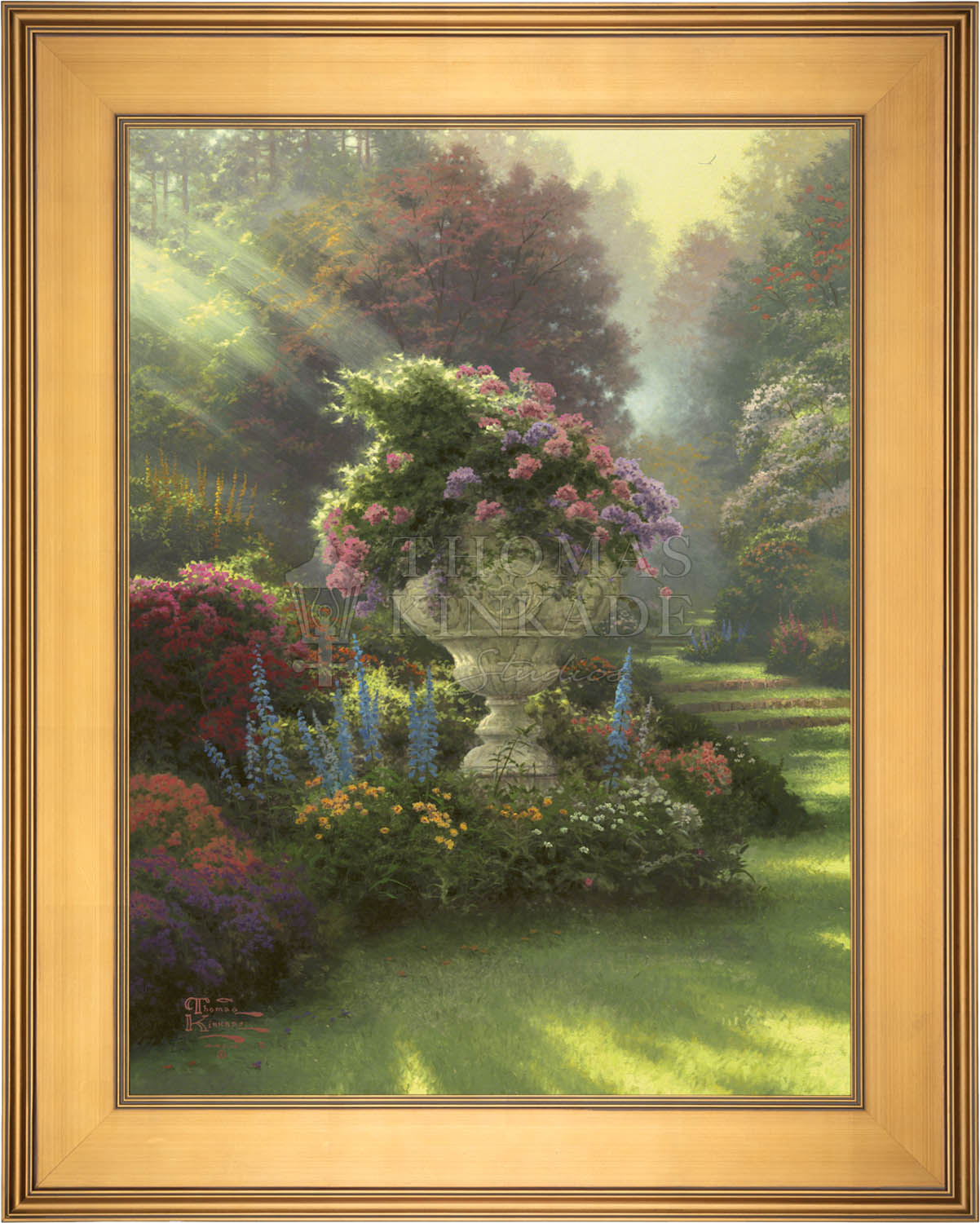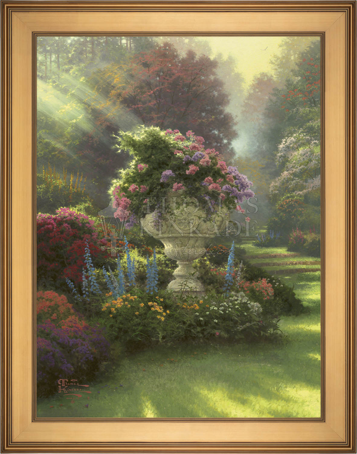 Hope is the great gift of a loving God. In The Garden of Hope, second in my Gardens of Light collection, I celebrate the bountiful blessing that is a hopeful spirit. Radiance bathes a garden in the woods, pouring down in a flood of light upon an ancient stone urn that is a vessel of hope.