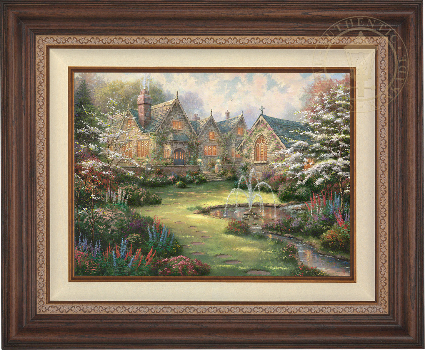 Thomas Kinkade Studios Limited Edition Canvases combine old world craftsmanship with the finest materials and latest production technologies to produce extraordinary canvas artwork. Our reproduction process captures not only the color and mood of the enchanting original painting, but the actual brushwork as well. Every piece is hand-retouched by skilled artisans, giving the painting a look almost identical to the artist's on-easel original. Vibrant colors, rich textures and color tones accurate to the artists original brushstrokes are the hallmarks of your finished piece.