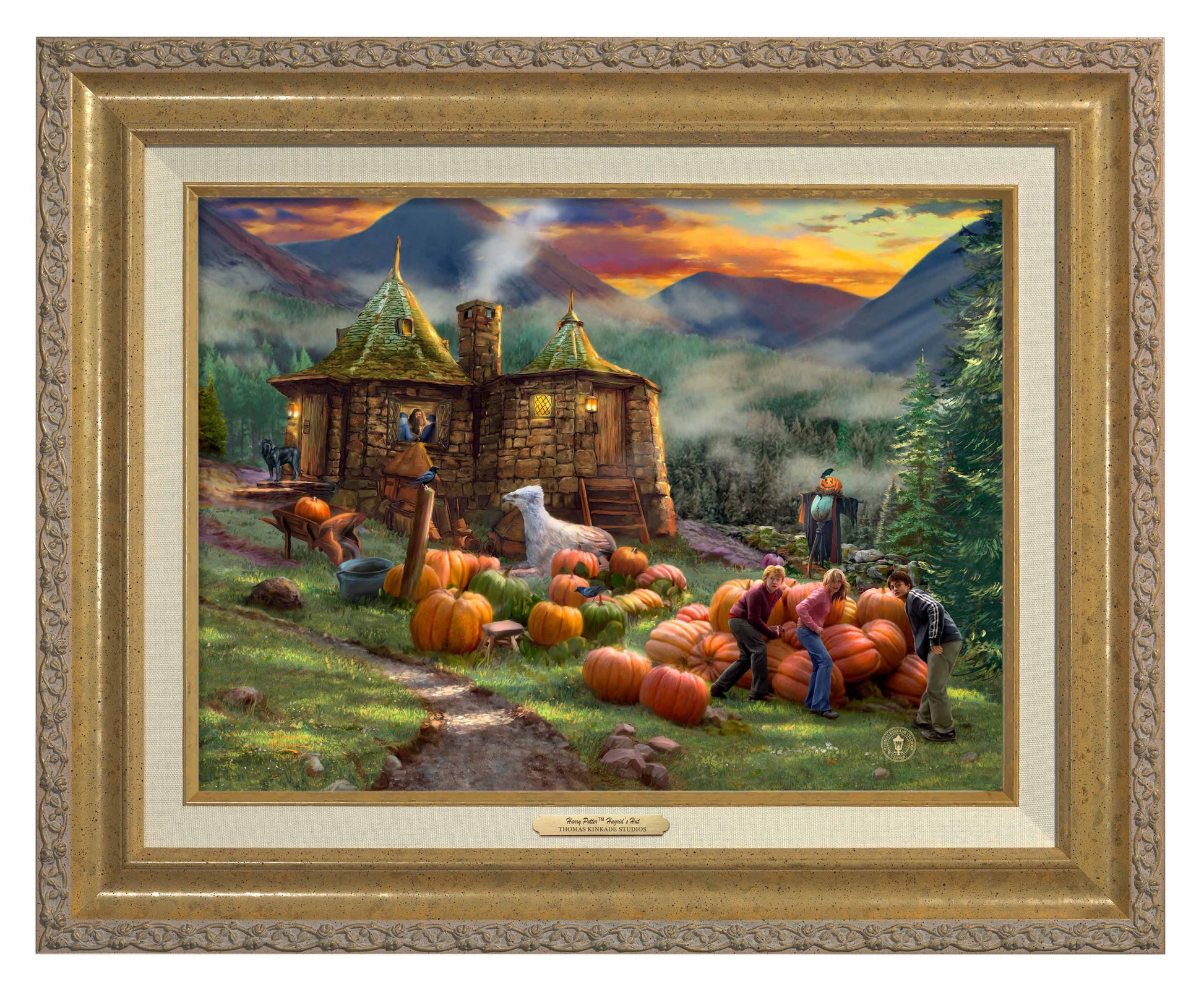 Hagrid’s hut, a small wooden dwelling, sits on the edge of the school grounds next to the Forbidden Forest. This one room hut was a wholesome place, complete with cozy fire, large cups of tea and of course, Fang, his loyal boarhound. Hermione, Ron and Harry spent many afternoons at the hut, enjoying the company of Hagrid. Join Thomas Kinkade Studios as we spend an afternoon at Harry Potter™ Hagrid’s Hut.