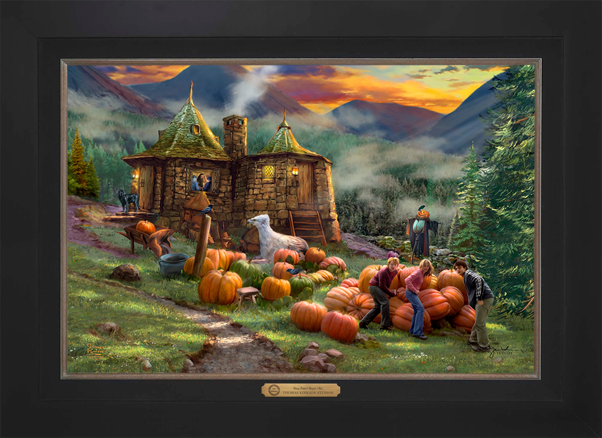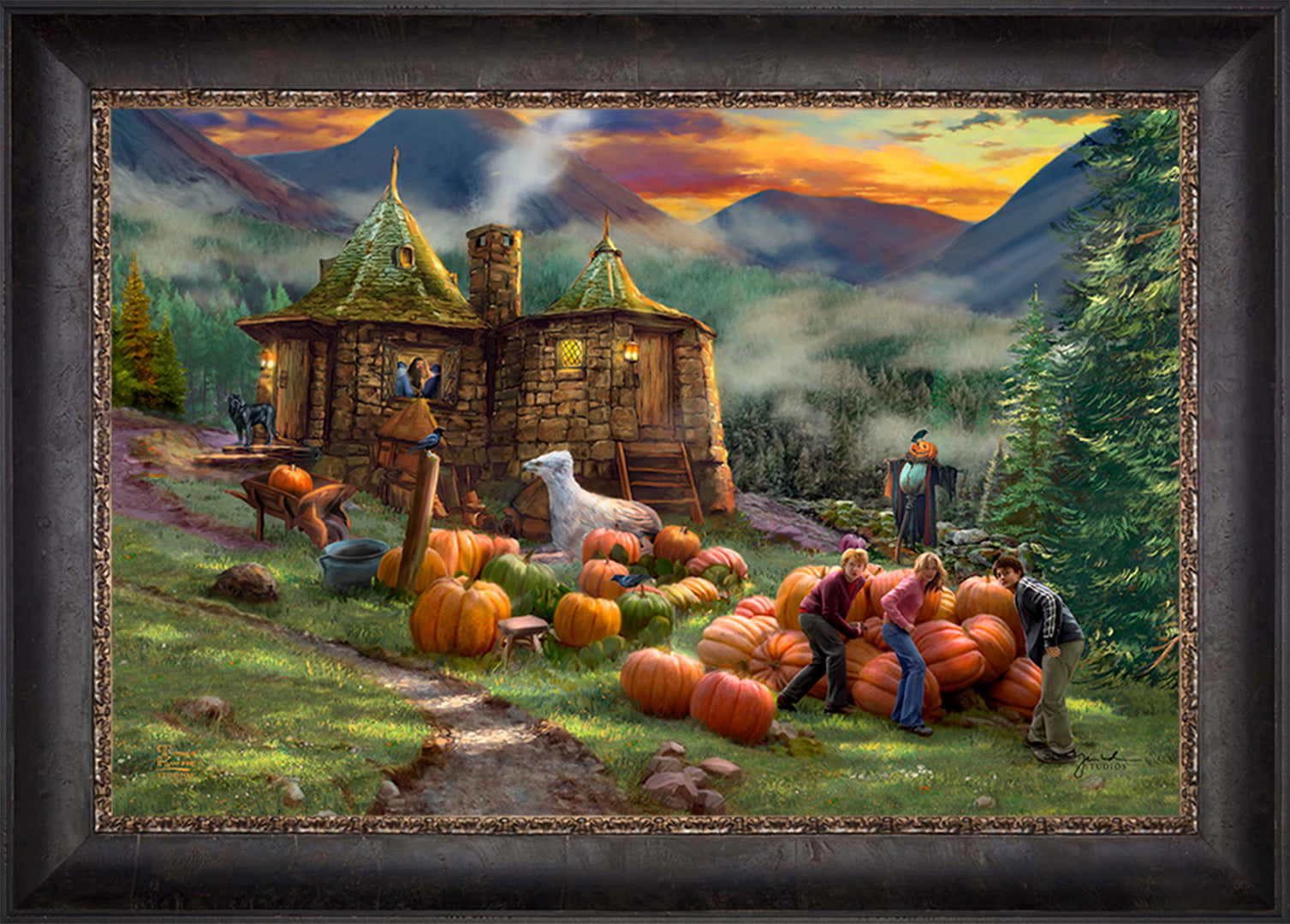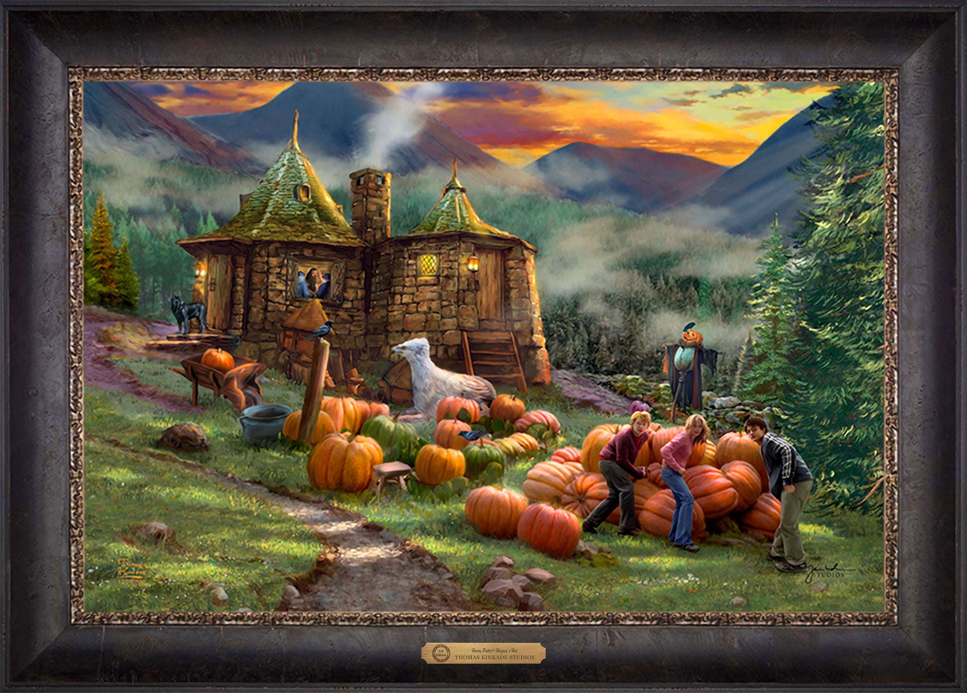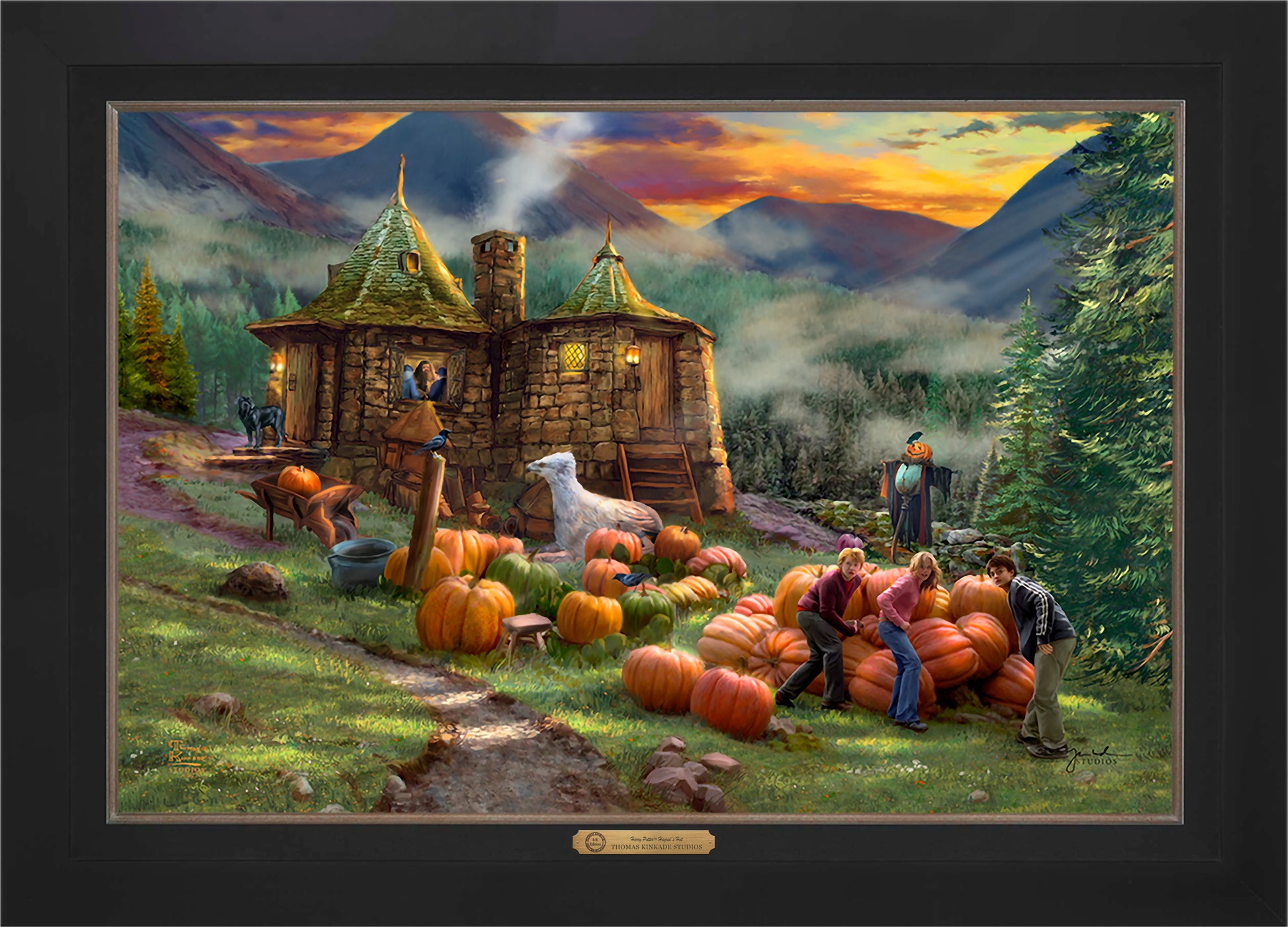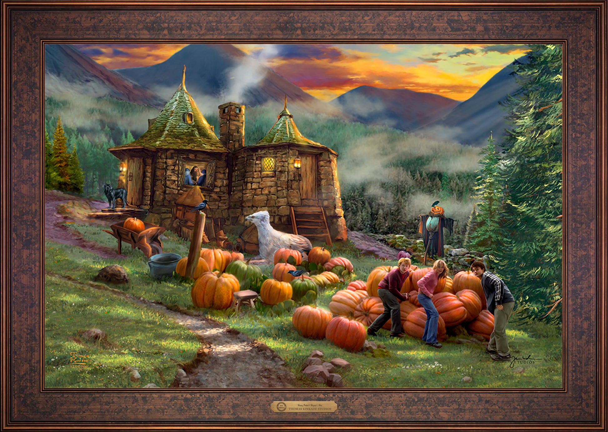Hagrid’s hut, a small wooden dwelling, sits on the edge of the school grounds next to the Forbidden Forest. This one room hut was a wholesome place, complete with cozy fire, large cups of tea and of course, Fang, his loyal boarhound. Hermione, Ron and Harry spent many afternoons at the hut, enjoying the company of Hagrid. Join Thomas Kinkade Studios as we spend an afternoon at Harry Potter™ Hagrid’s Hut .