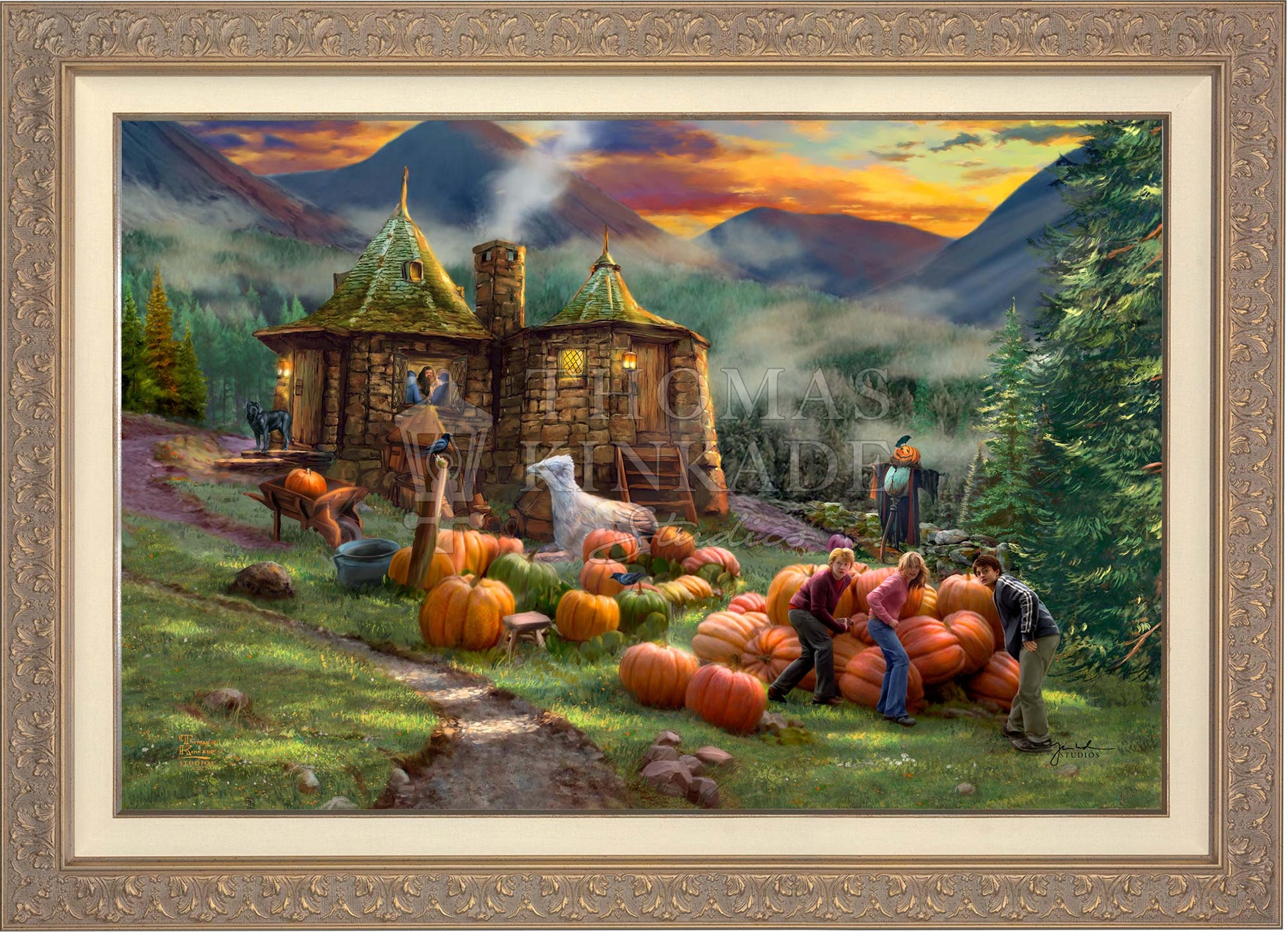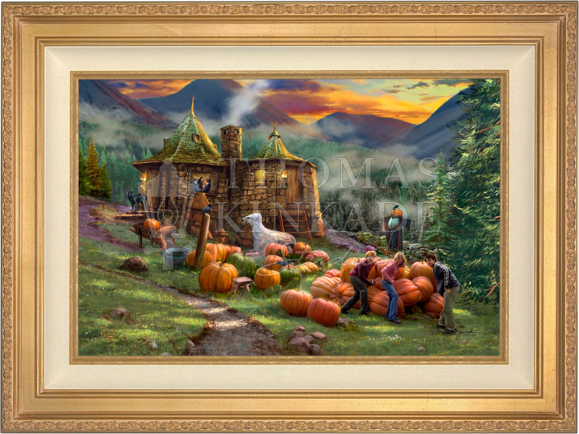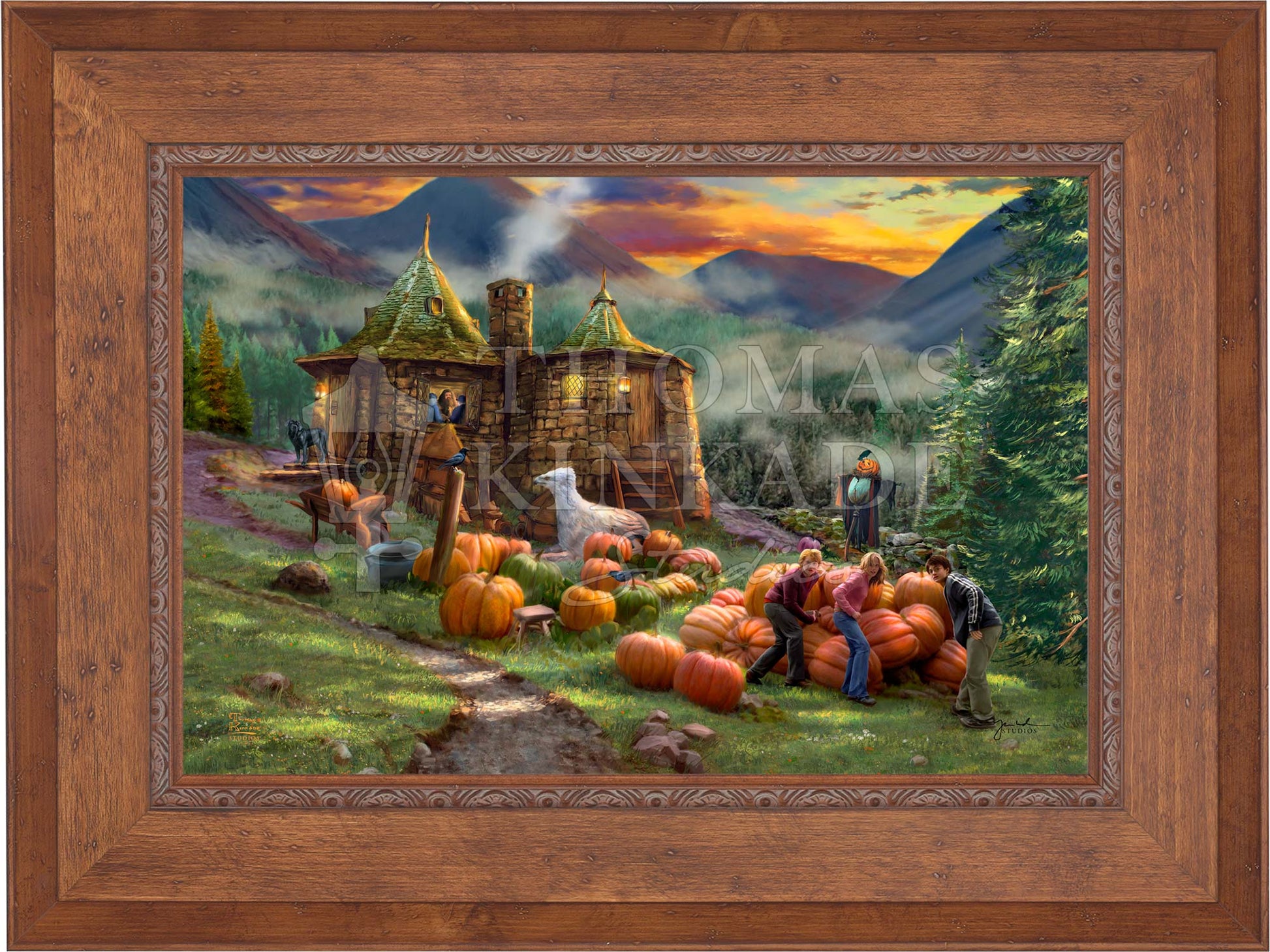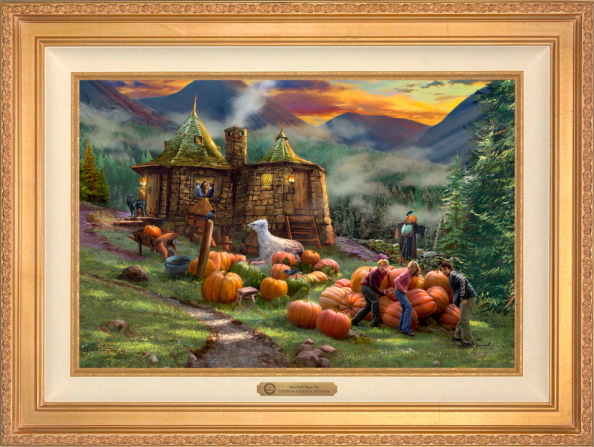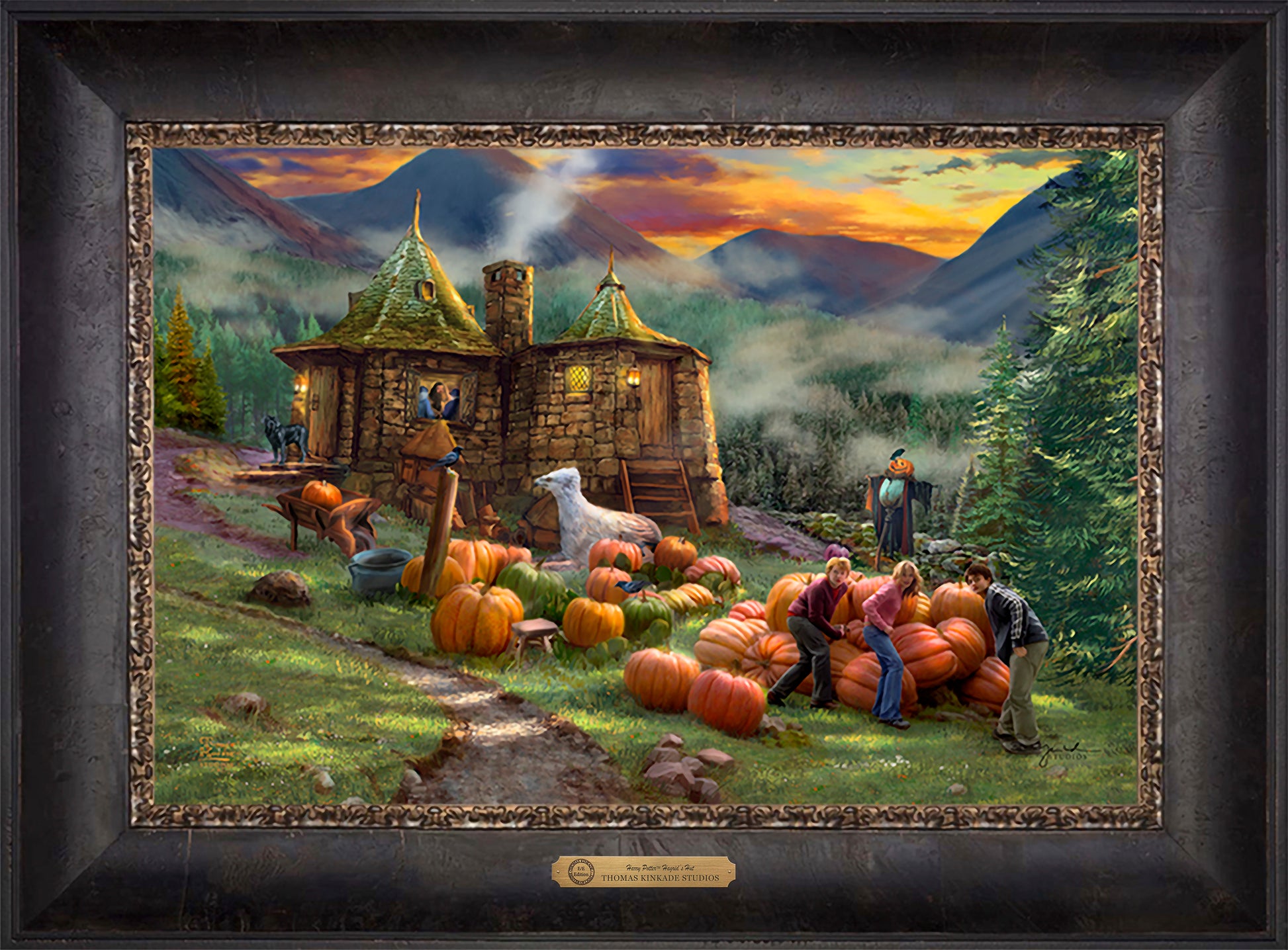 Hagrid’s hut, a small wooden dwelling, sits on the edge of the school grounds next to the Forbidden Forest. This one room hut was a wholesome place, complete with cozy fire, large cups of tea and of course, Fang, his loyal boarhound. Hermione, Ron and Harry spent many afternoons at the hut, enjoying the company of Hagrid. Join Thomas Kinkade Studios as we spend an afternoon at Harry Potter™ Hagrid’s Hut .