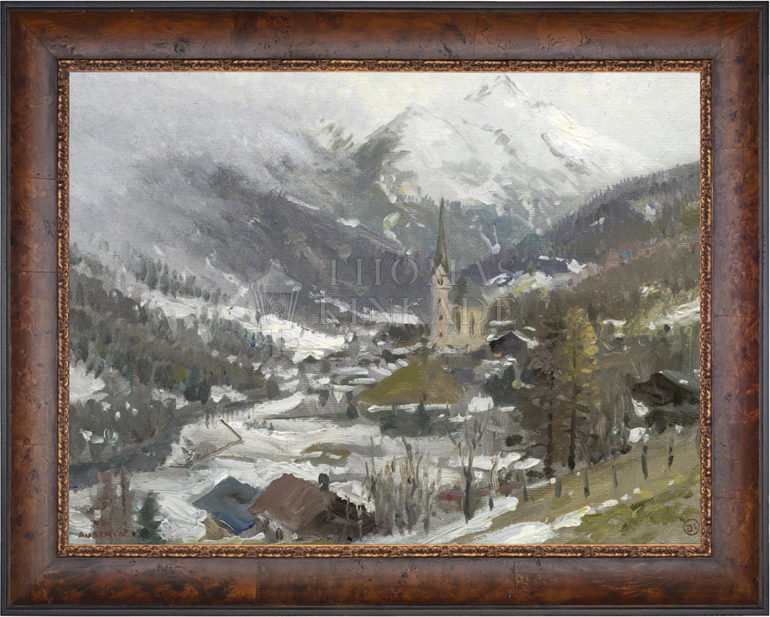Call UsThis secluded Austrian town sits amongst the sheltering mountains and is softly covered in a blanket of snow. The vacant streets suggest that many have found their way home to warm themselves by the fire. The towering mountaintops watch over this humble town as silent guardians. Thom has successfully portrayed silence and tranquility in this wonderful winter masterpiece.