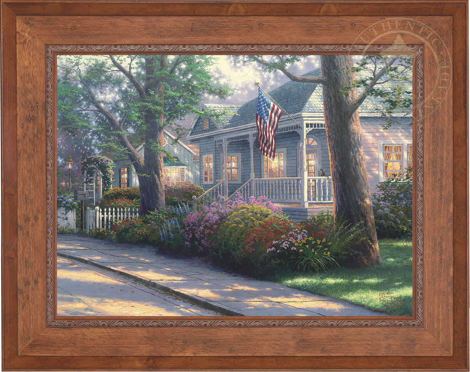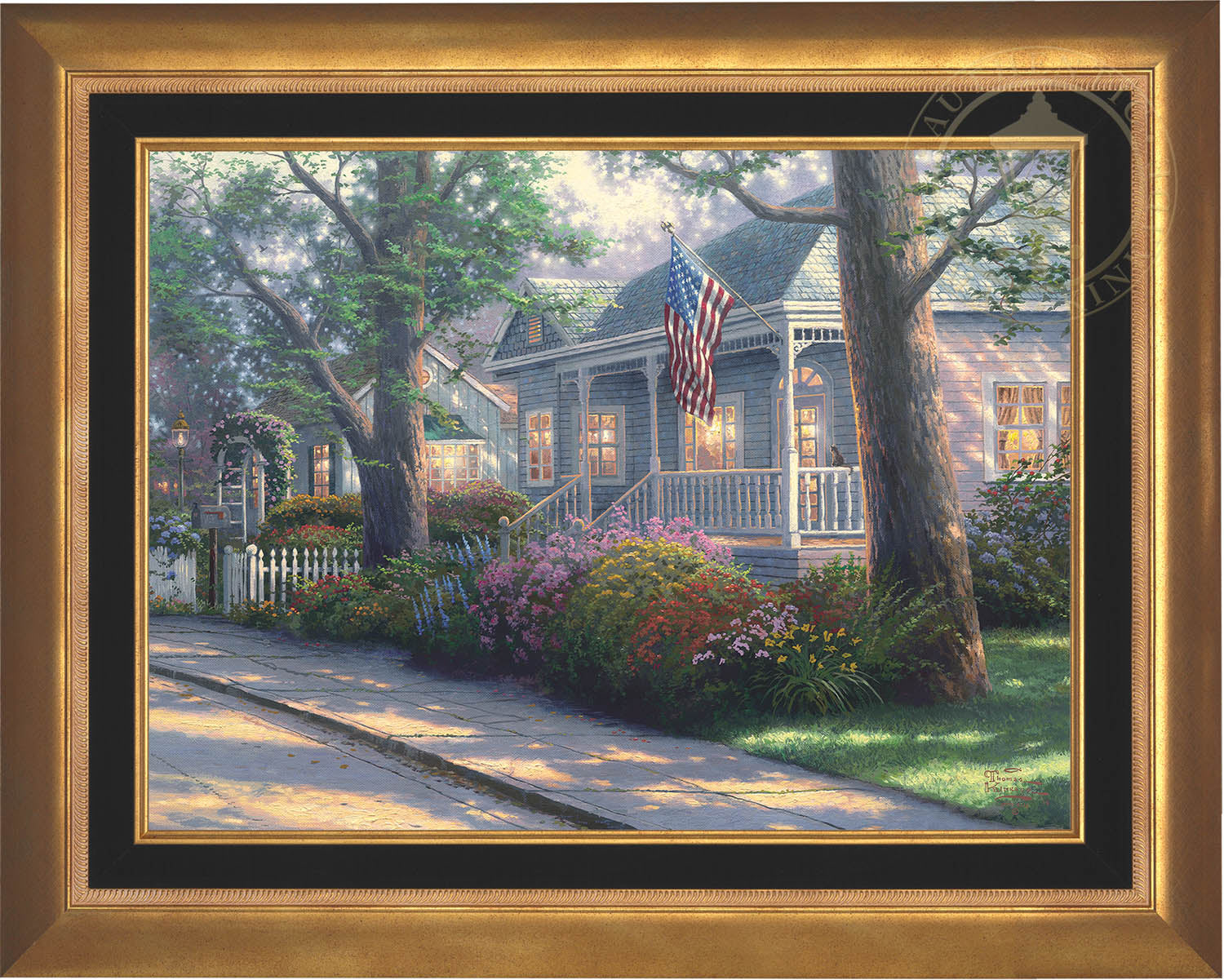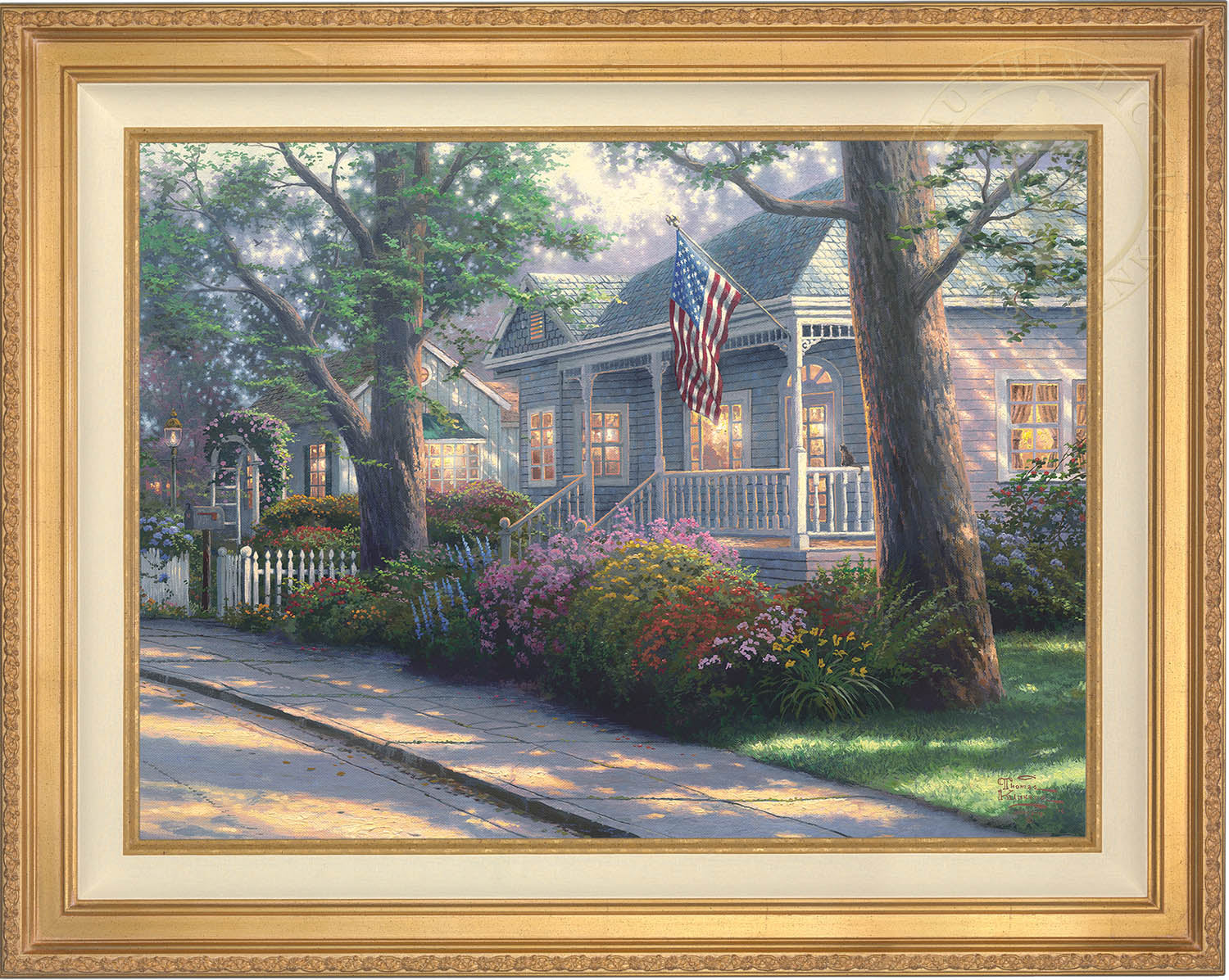 Thomas Kinkade Limited Edition Canvases combine old world craftsmanship with the finest materials and latest production technologies to produce extraordinary canvas artwork. Our reproduction process captures not only the color and mood of Thom's enchanting original painting, but the actual brushwork as well. Every piece is hand-retouched by skilled artisans, giving the painting a look almost identical to the artist's on-easel original. Vibrant colors, rich textures and color tones accurate to Thom's original brushstrokes are the hallmarks of your finished piece.