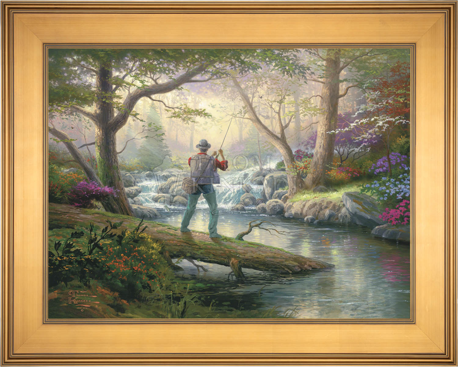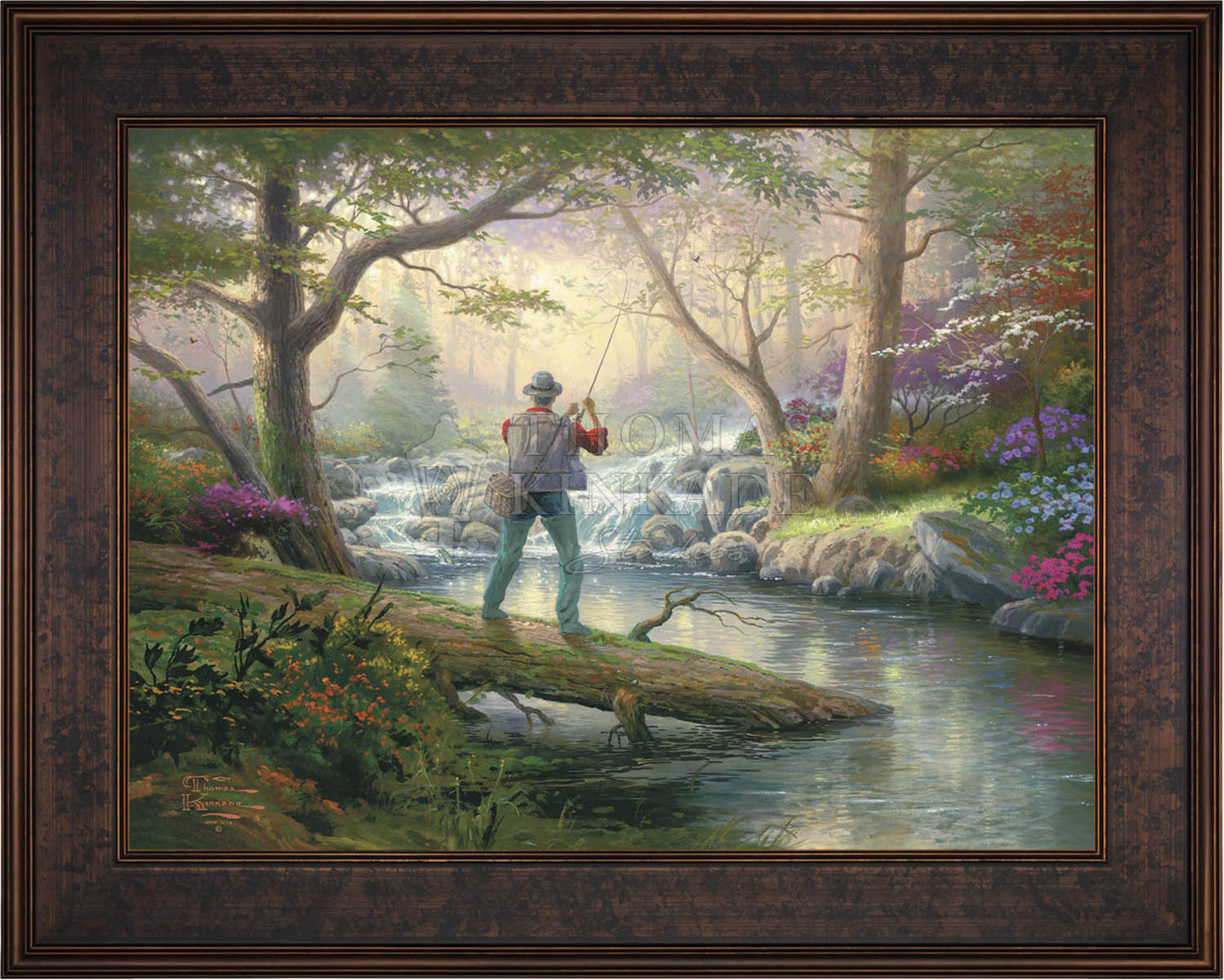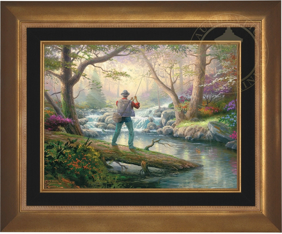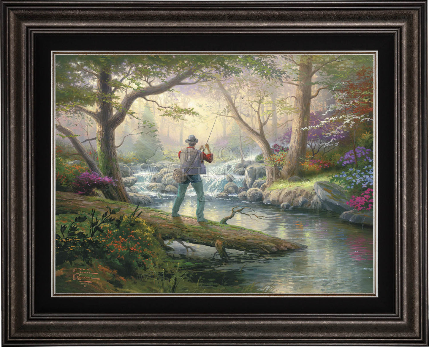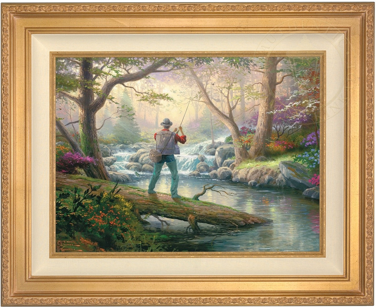 Thomas Kinkade Limited Edition Canvases combine old world craftsmanship with the finest materials and latest production technologies to produce extraordinary canvas artwork. Our reproduction process captures not only the color and mood of Thom's enchanting original painting, but the actual brushwork as well. Every piece is hand-retouched by skilled artisans, giving the painting a look almost identical to the artist's on-easel original. Vibrant colors, rich textures and color tones accurate to Thom's original brushstrokes are the hallmarks of your finished piece.