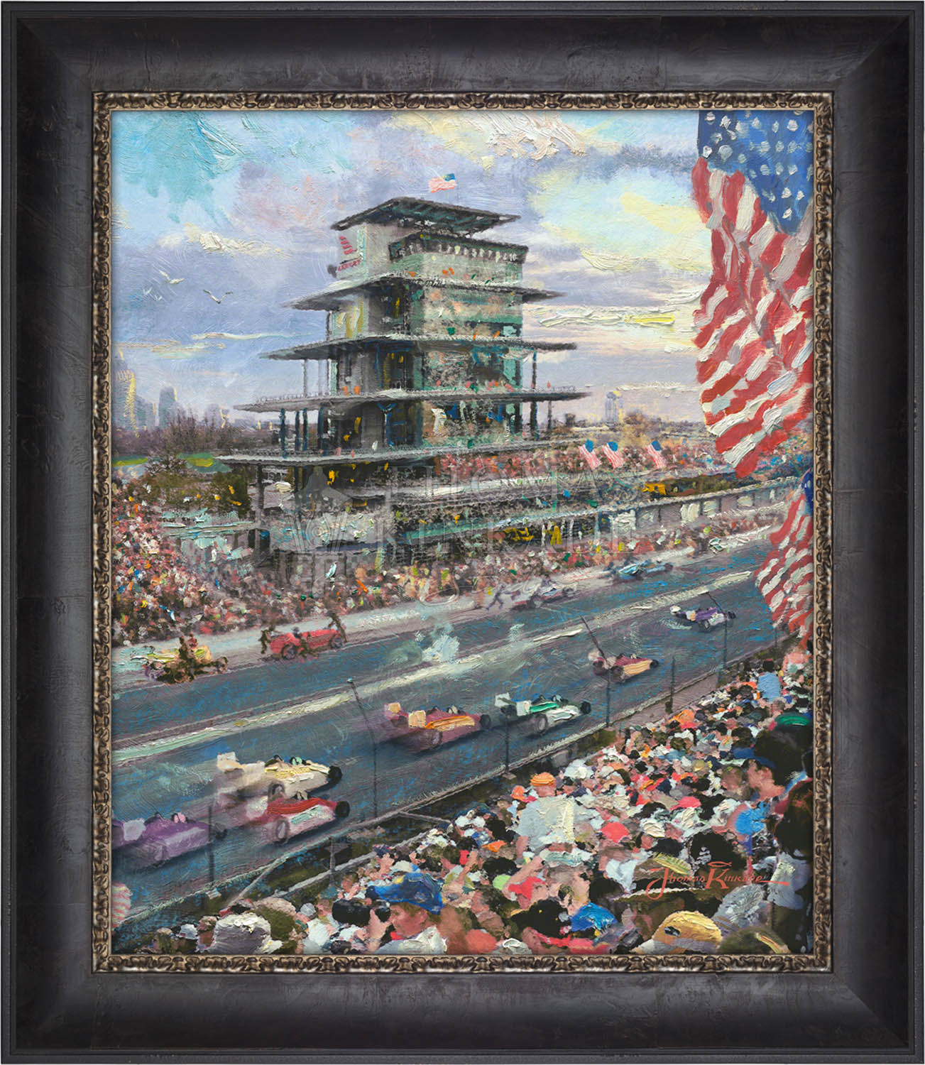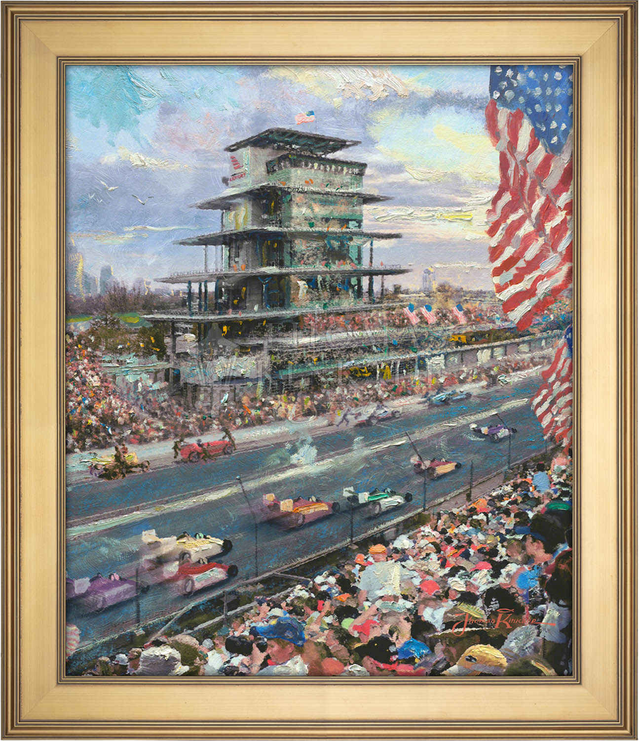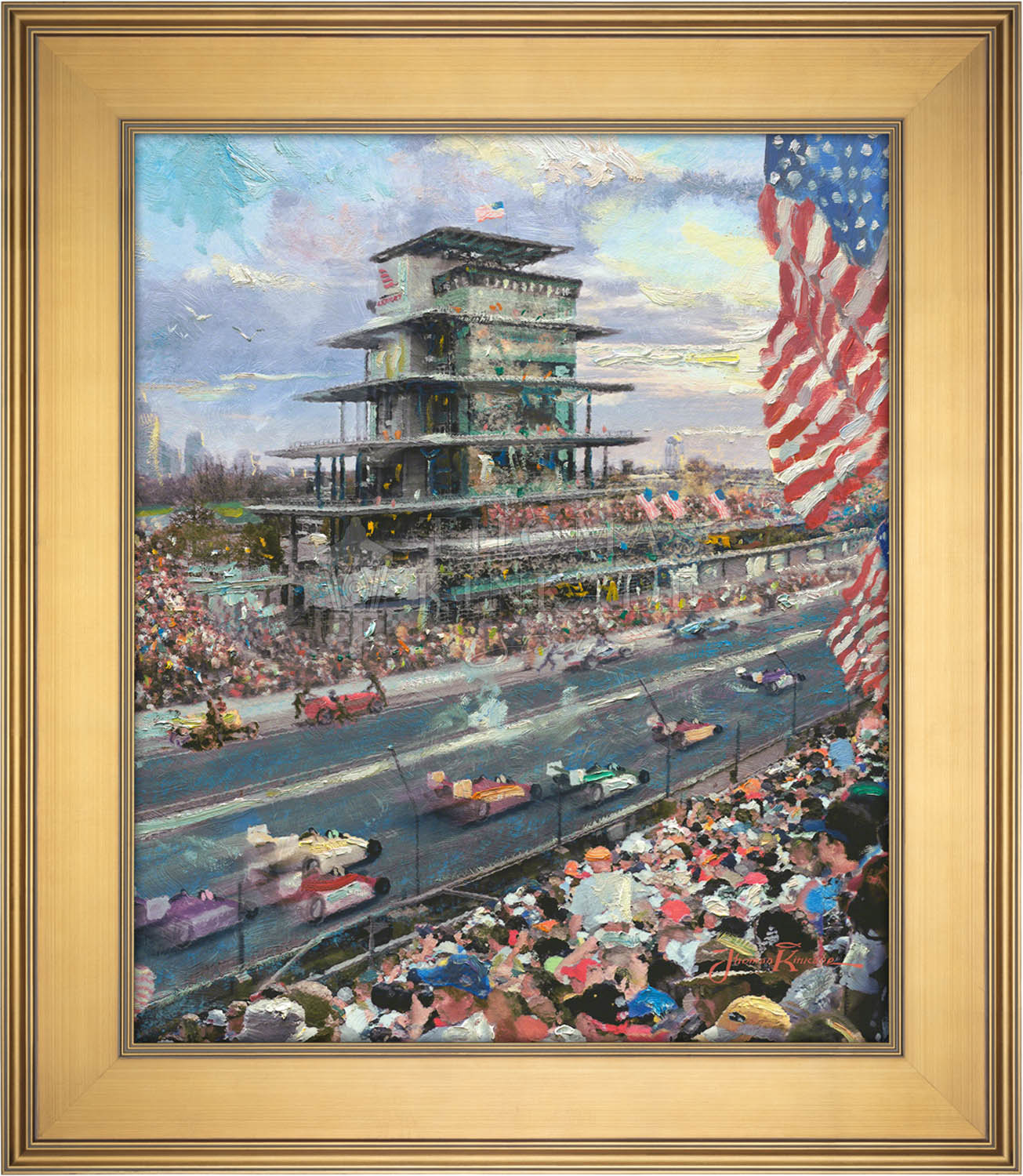 Call UsTo create my tribute painting as the official artist for the Centennial Era of this famous speedway, I was allowed to take my sketching materials right onto the grounds of the track. I even got to set up and work at the famous brickyard starting line! As I worked, I envisioned a crowd of cheering spectators from each of the generations that have embraced the track as an American icon. I even envisioned including famous cars from the golden age of racing in my painting. The finished work required countless studio hours, and an immense amount of final detailing. I hope you will join me in saluting the Indianapolis Motor Speedway® as it celebrates 100 years of Indy® Excitement.
