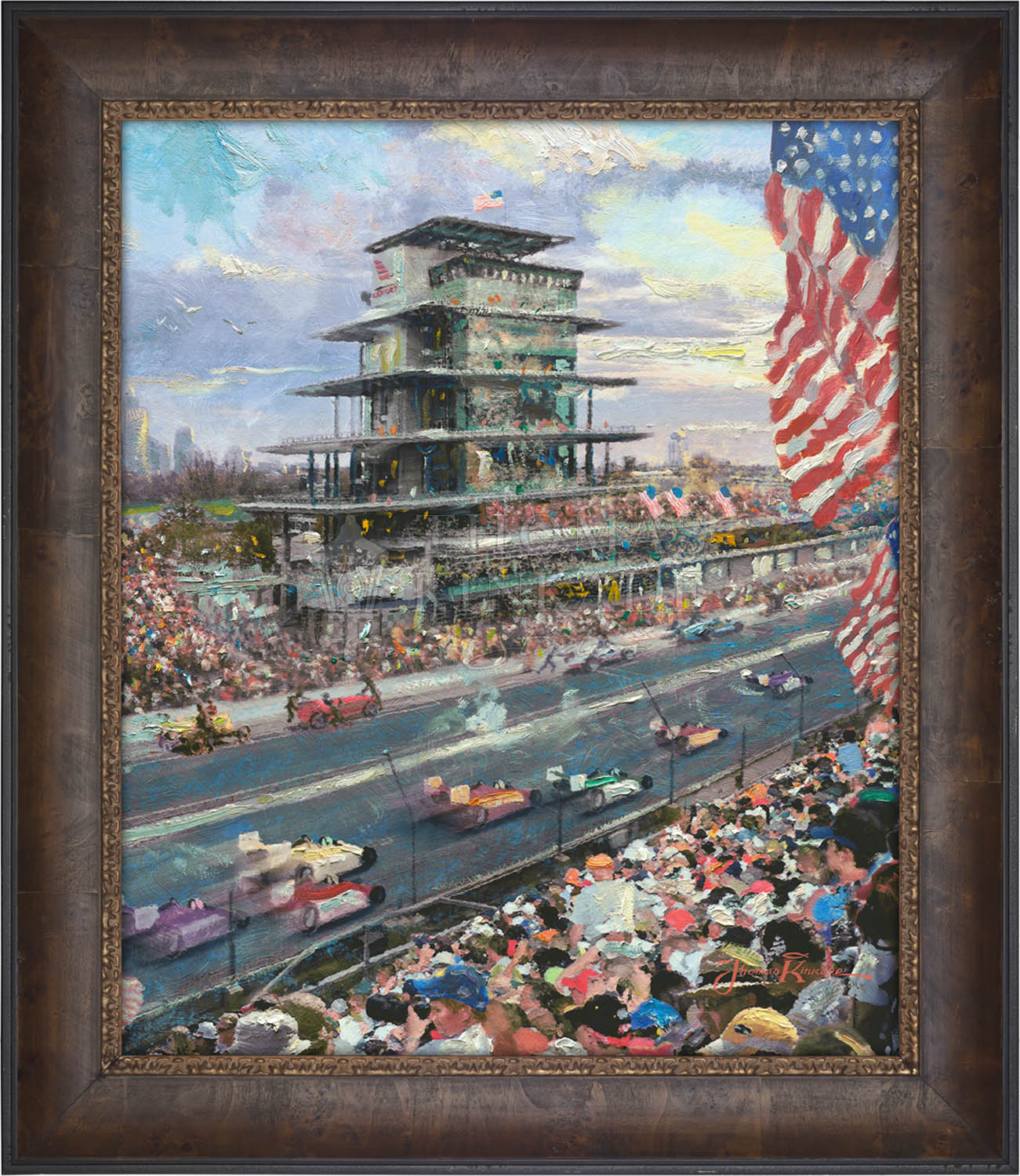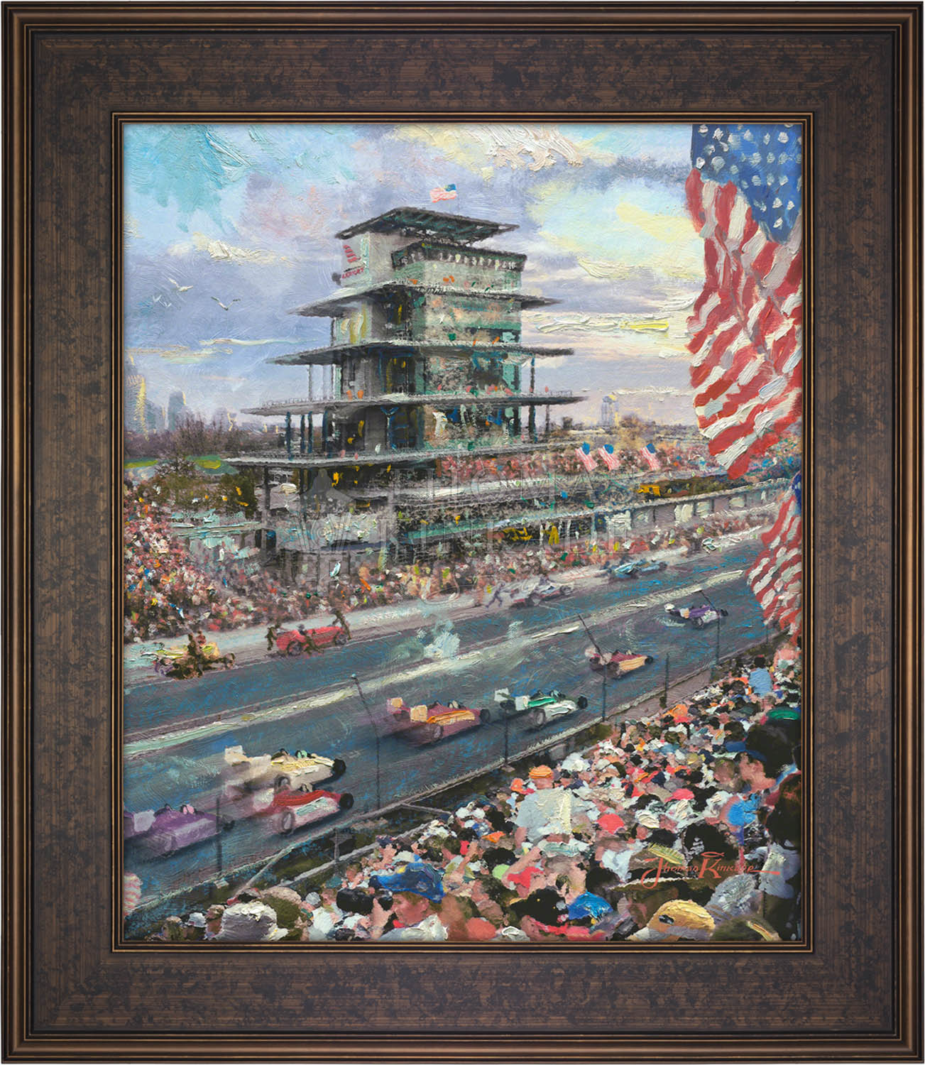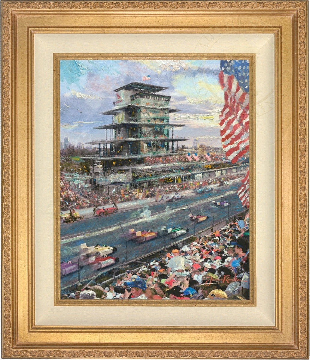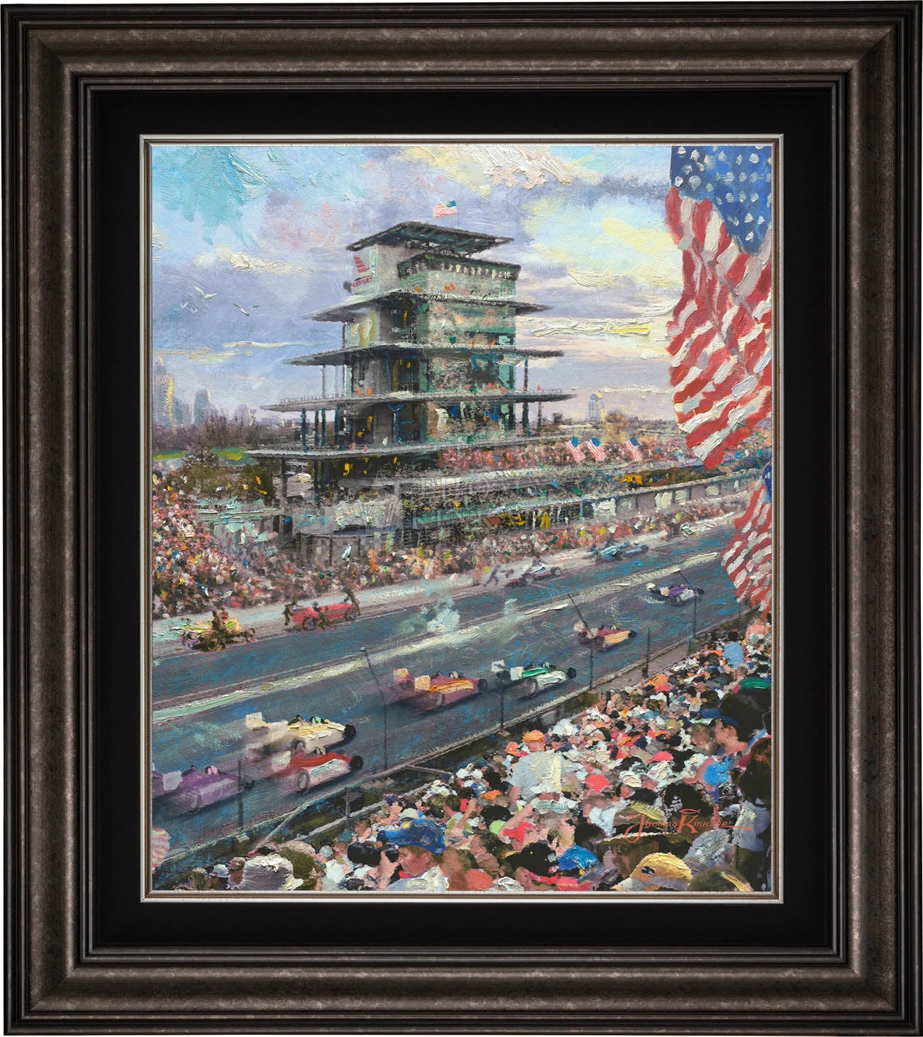 Call UsTo create my tribute painting as the official artist for the Centennial Era of this famous speedway, I was allowed to take my sketching materials right onto the grounds of the track. I even got to set up and work at the famous brickyard starting line! As I worked, I envisioned a crowd of cheering spectators from each of the generations that have embraced the track as an American icon. I even envisioned including famous cars from the golden age of racing in my painting. The finished work required countless studio hours, and an immense amount of final detailing. I hope you will join me in saluting the Indianapolis Motor Speedway® as it celebrates 100 years of Indy® Excitement.