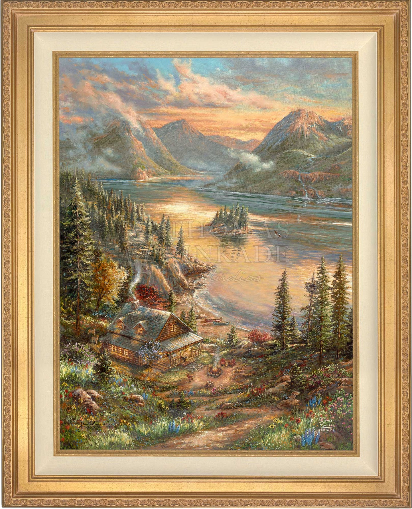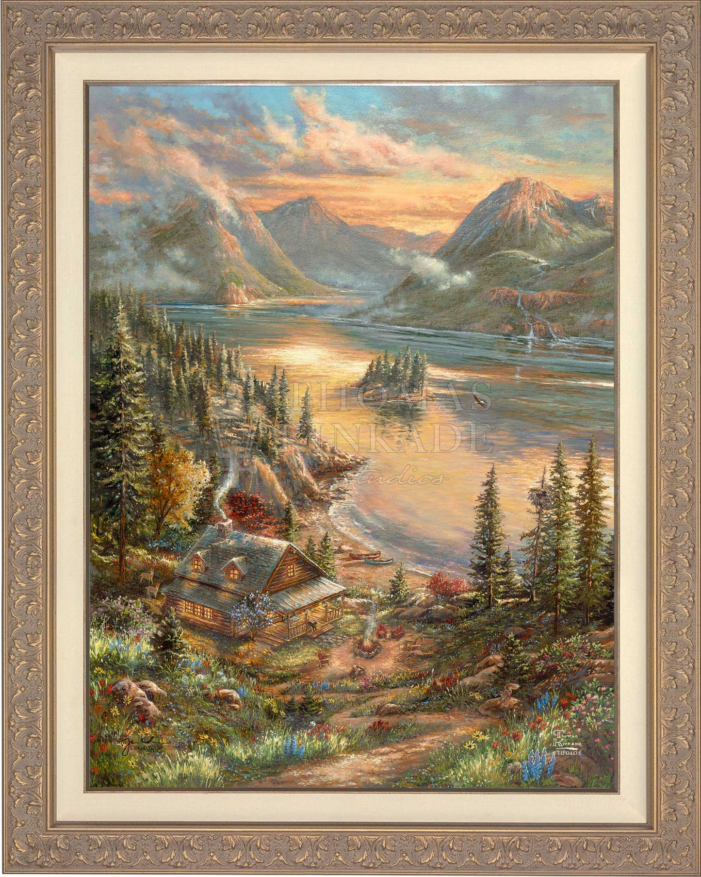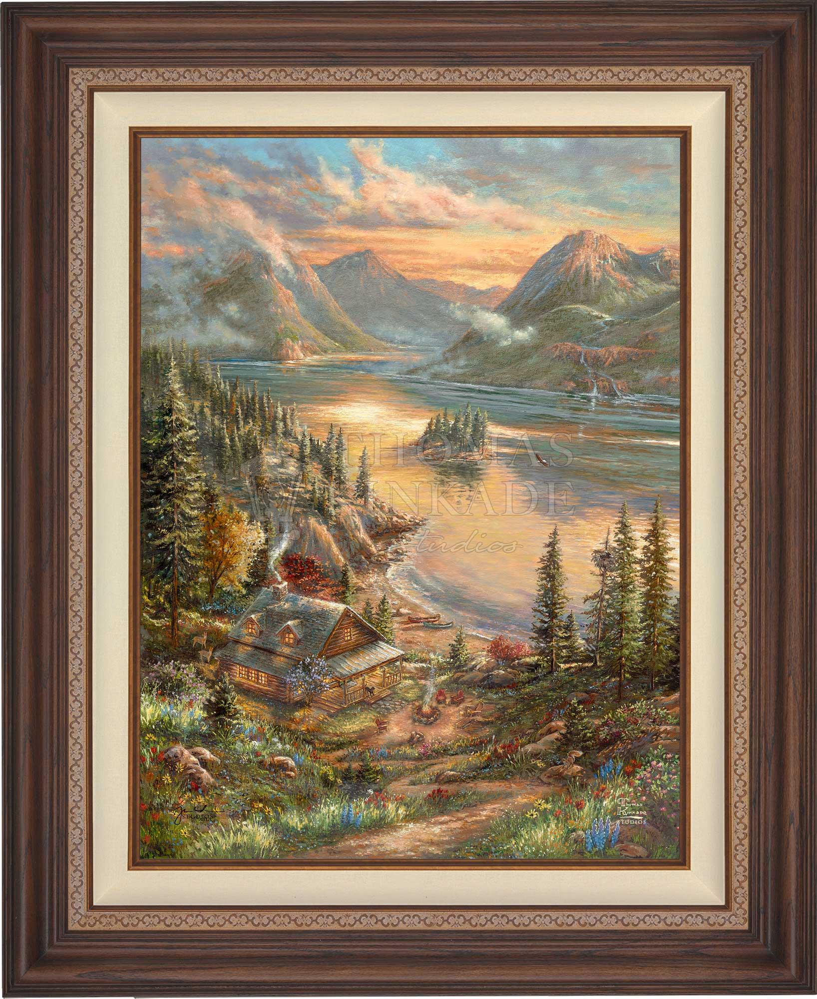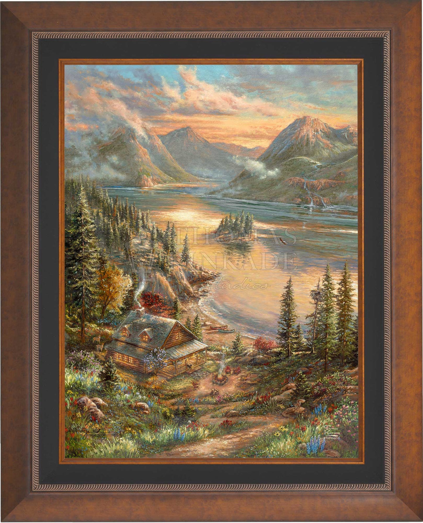 What constitutes living “the good life?” For some, it is living near the ocean, enjoying the relaxation of life at the beach. To others, it’s traveling around the world, exploring its wonders. For Thomas Kinkade, the good life was time spent at a cozy cabin near a tranquil lake nestled at the base of a mountain. Lakeside Splendor by Thomas Kinkade Studios captures his experience and that of so many who love nature.