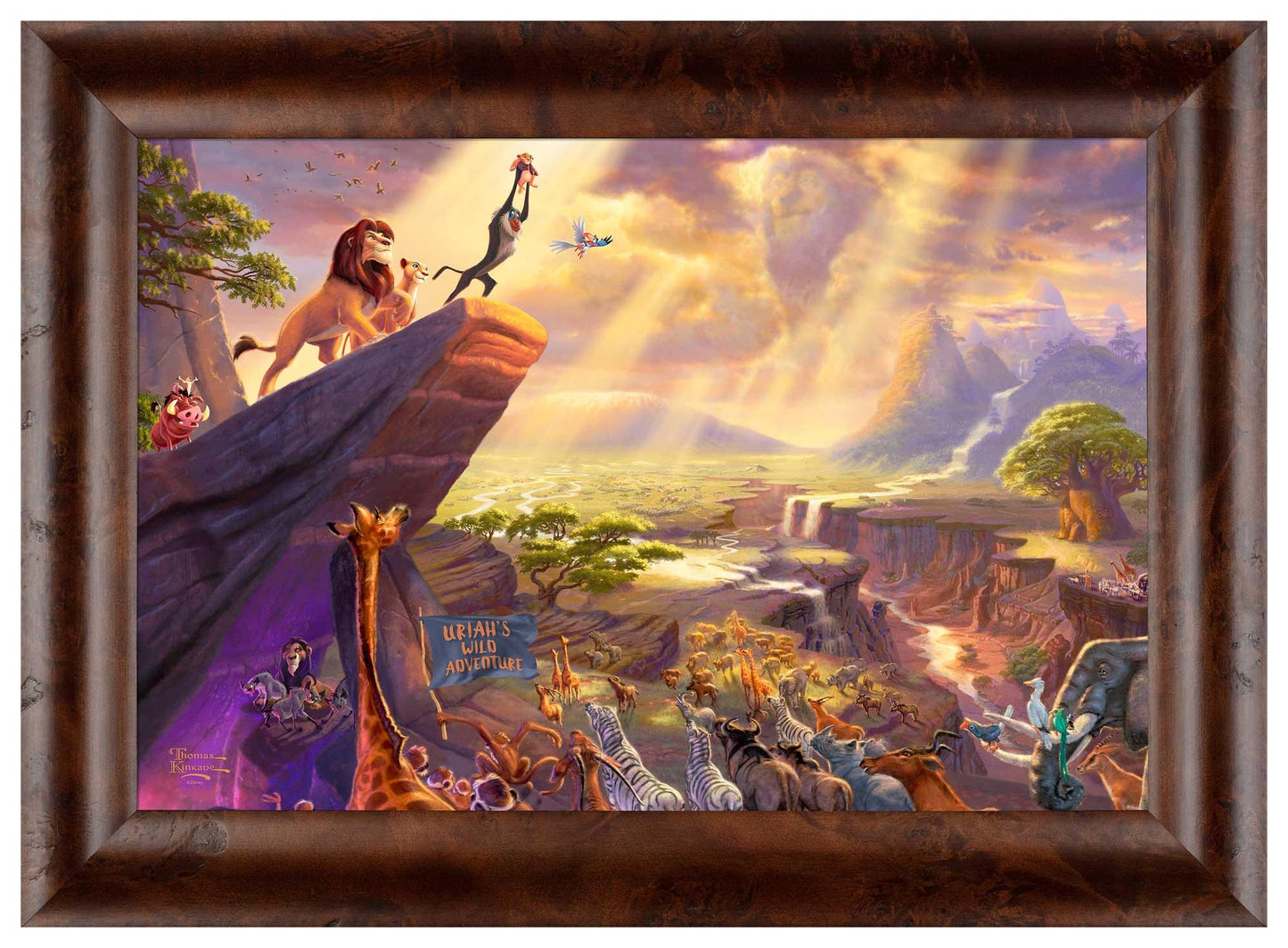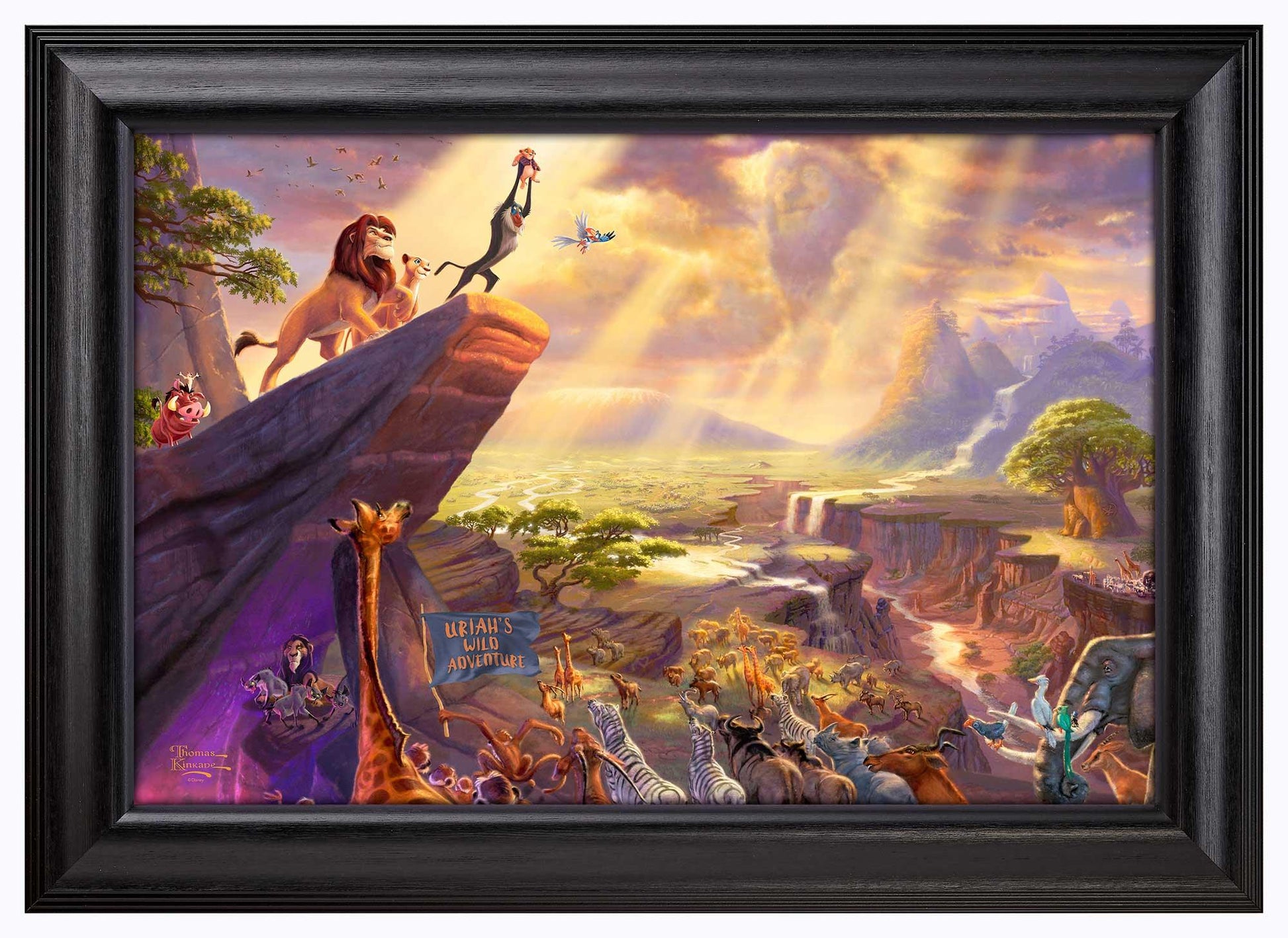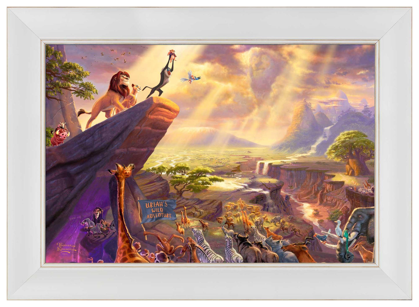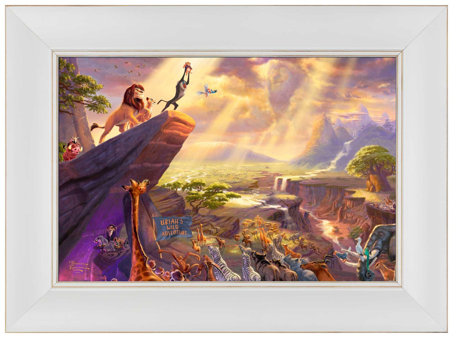 Disney Dreams Collection by Thomas Kinkade Studios now available as a personalized framed canvas! We'll add one line of personalization to the flag in the image so you or someone special can feel part of this adored love story! Specify personalization during checkout or contact us for additional personalization requests. Open edition canvas framed. Available with multiple frame choices in multiple sizes. Open Edition Certificate of Authenticity included.