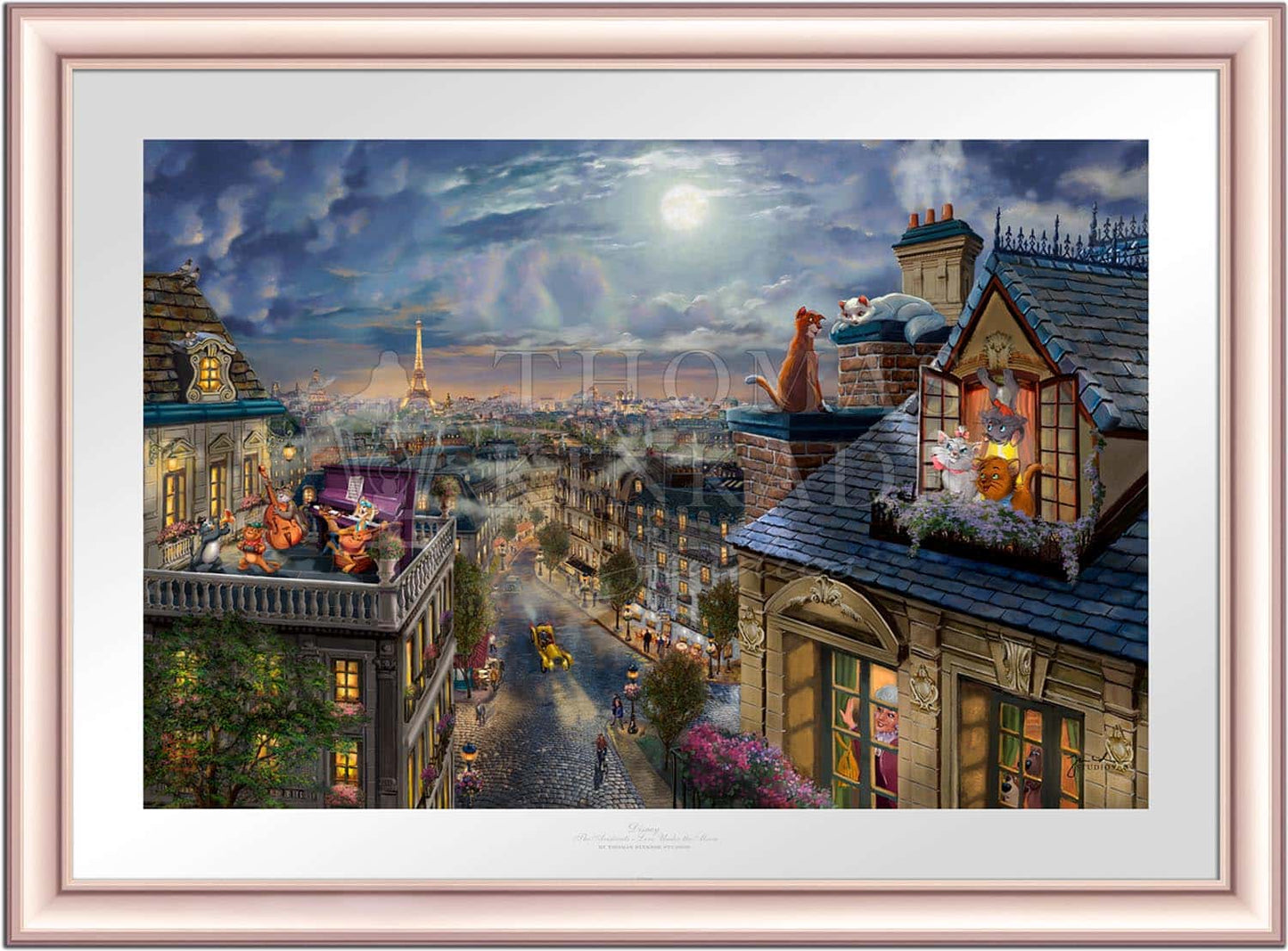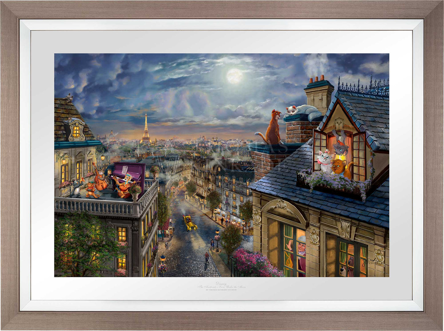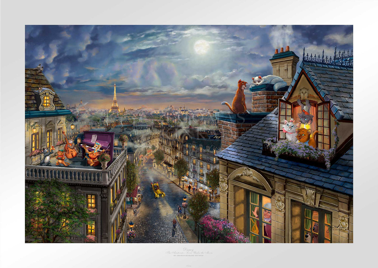 The Disney Aristocats - Love Under the Moon by Thomas Kinkade Studios® captures the magic of Paris and celebrates the romantic story of two beloved Disney characters.