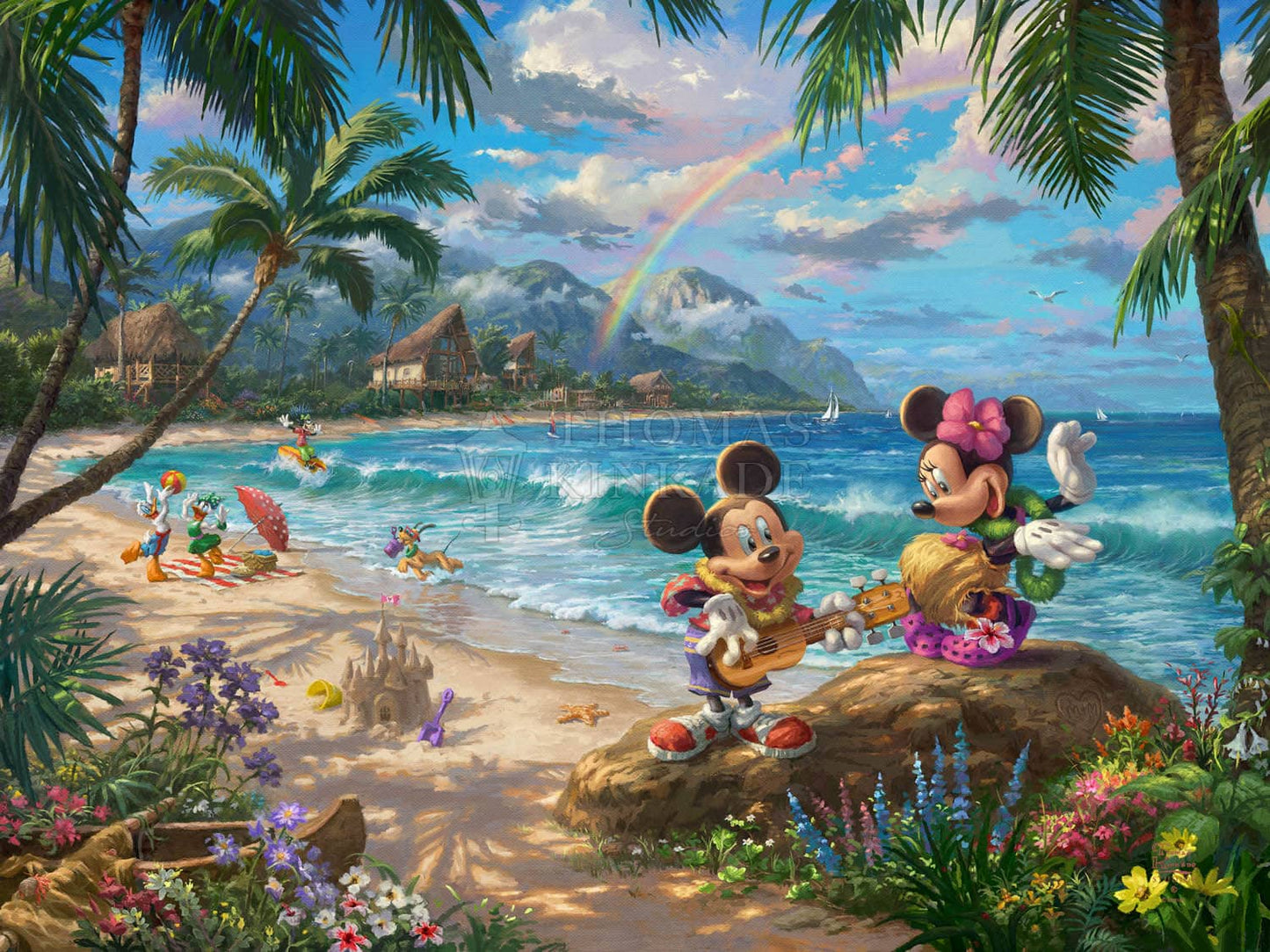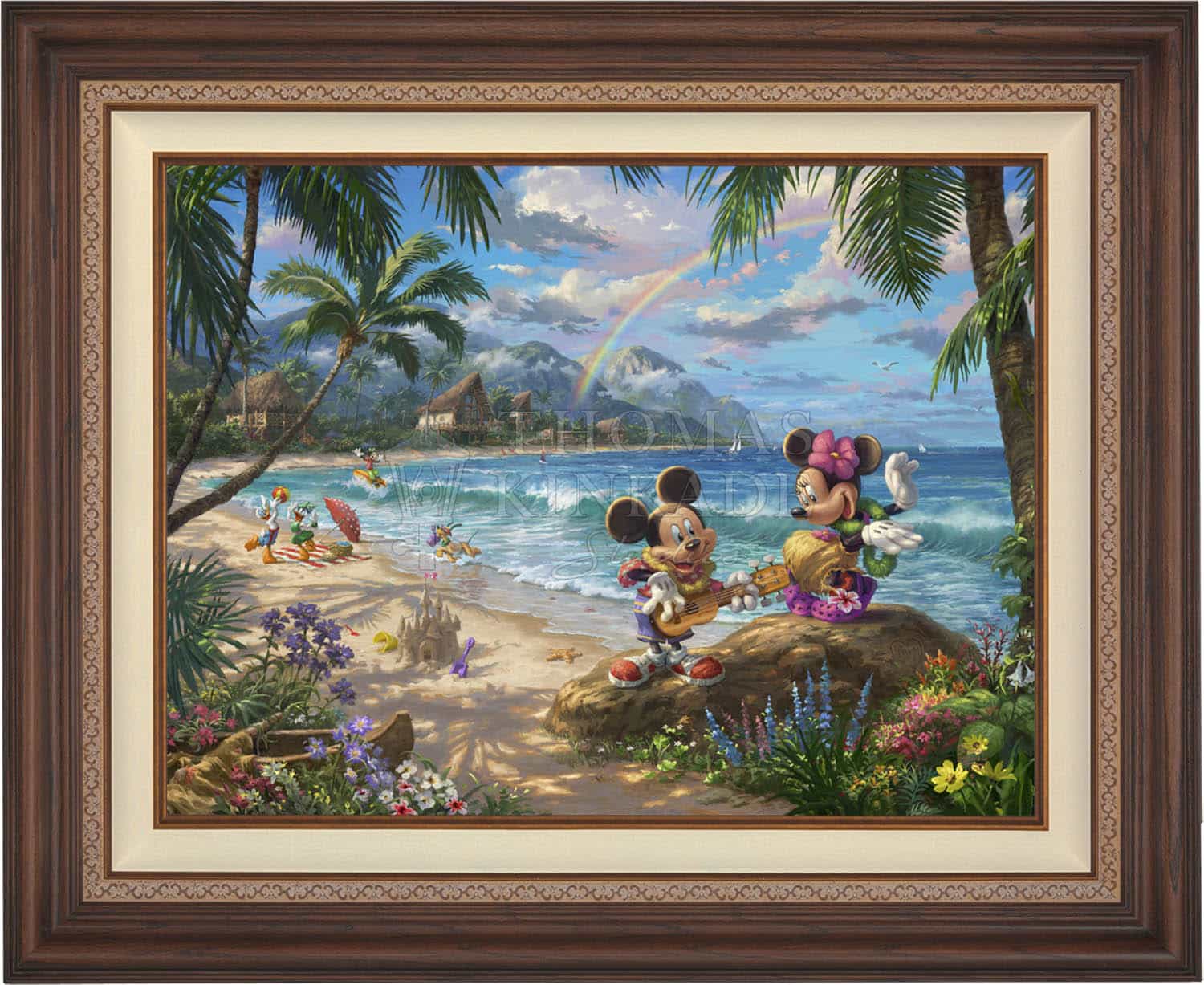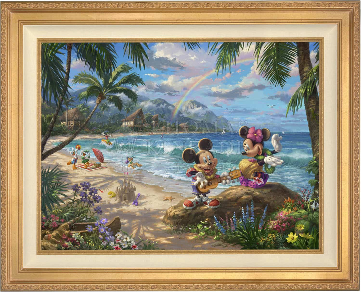 In celebration of the 80-year anniversary of this film, Thomas Kinkade Studio’s, inspired by the 1937 film, is proud to present their newest painting -Mickey and Minnie in Hawaii; the first painting in the Passport to Adventure Collection.
