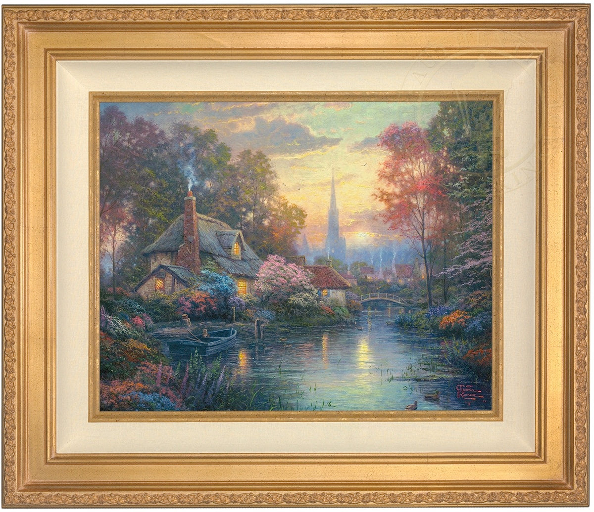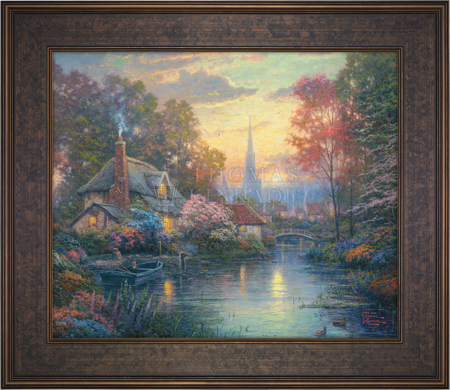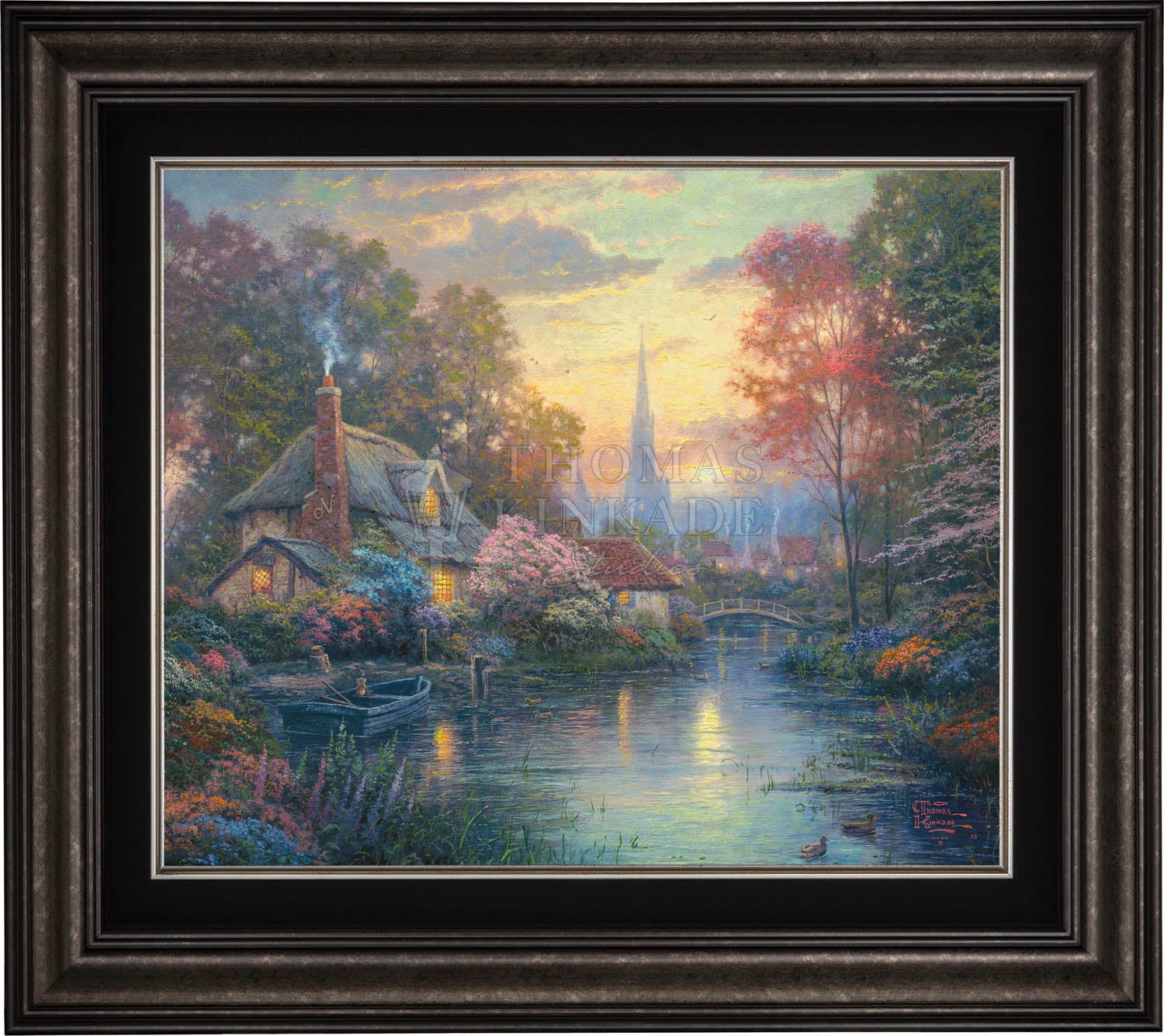 Thomas Kinkade Limited Edition Canvases combine old world craftsmanship with the finest materials and latest production technologies to produce extraordinary canvas artwork. Our reproduction process captures not only the color and mood of Thom's enchanting original painting, but the actual brushwork as well. Every piece is hand-retouched by skilled artisans, giving the painting a look almost identical to the artist's on-easel original. Vibrant colors, rich textures and color tones accurate to Thom's original brushstrokes are the hallmarks of your finished piece.