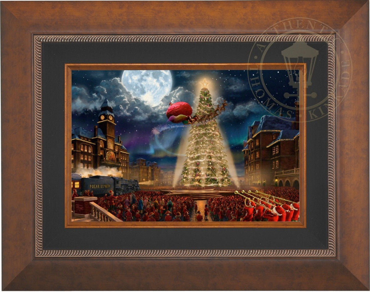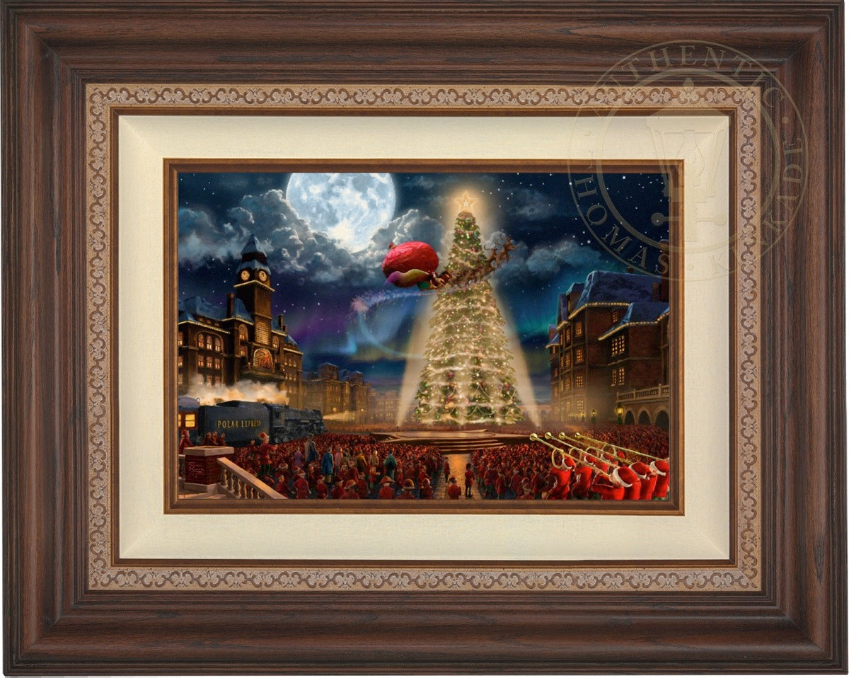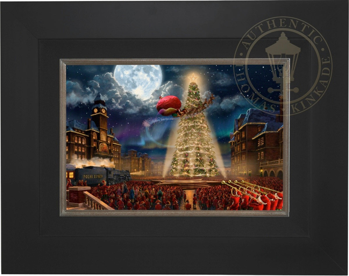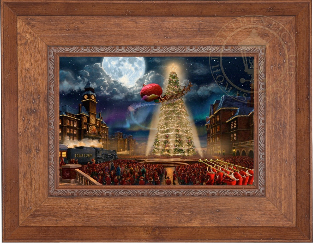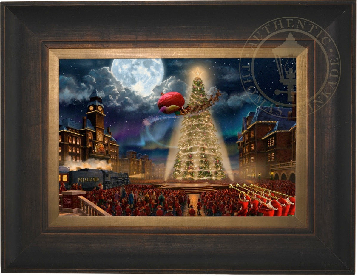 We at the Thomas Kinkade Studios are proud to bring Chris Van Allsburg's delightful tale of Christmas magic, The Polar Express to light. It is a story of a wondrous train ride to the North Pole and of Santa's first gift of the season to a boy who believes. The Polar Express captures the climatic scene as Santa rises through the gathered elves to start his night's work while the train waits to deliver the children back home before Christmas morning. As long as one believes, the magic of the holiday will never be lost. Join us in believing again. Remember the laughter of the elves, the wink of Santa, the happiness of the North Pole and the tinkle of a sleigh bell making the most beautiful sound you will ever hear. Seeing is believing, but sometimes the most real things in the world are the things we can't see. The Thomas Kinkade Studios hope that you remember the true spirit of Christmas lies in your heart.