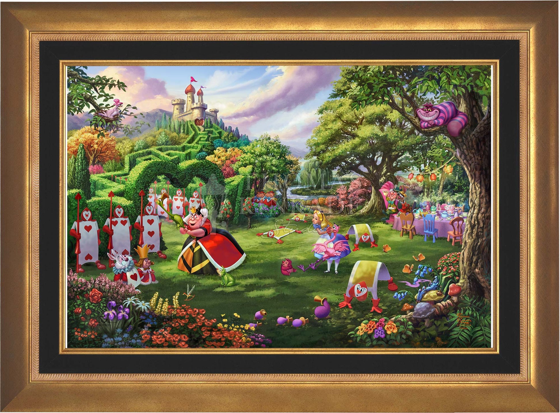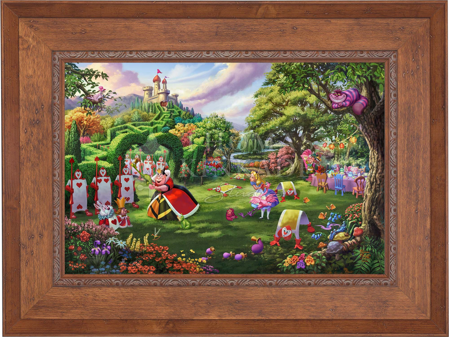 Thomas Kinkade Studios’ painting Disney Queen of Hearts is inspired by the literary genius of Lewis Carroll and the animated mastery of Walt Disney, and is a follow-up to the Thomas Kinkade Studios artwork Disney Alice in Wonderland and Disney Mad Hatter’s Tea Party.