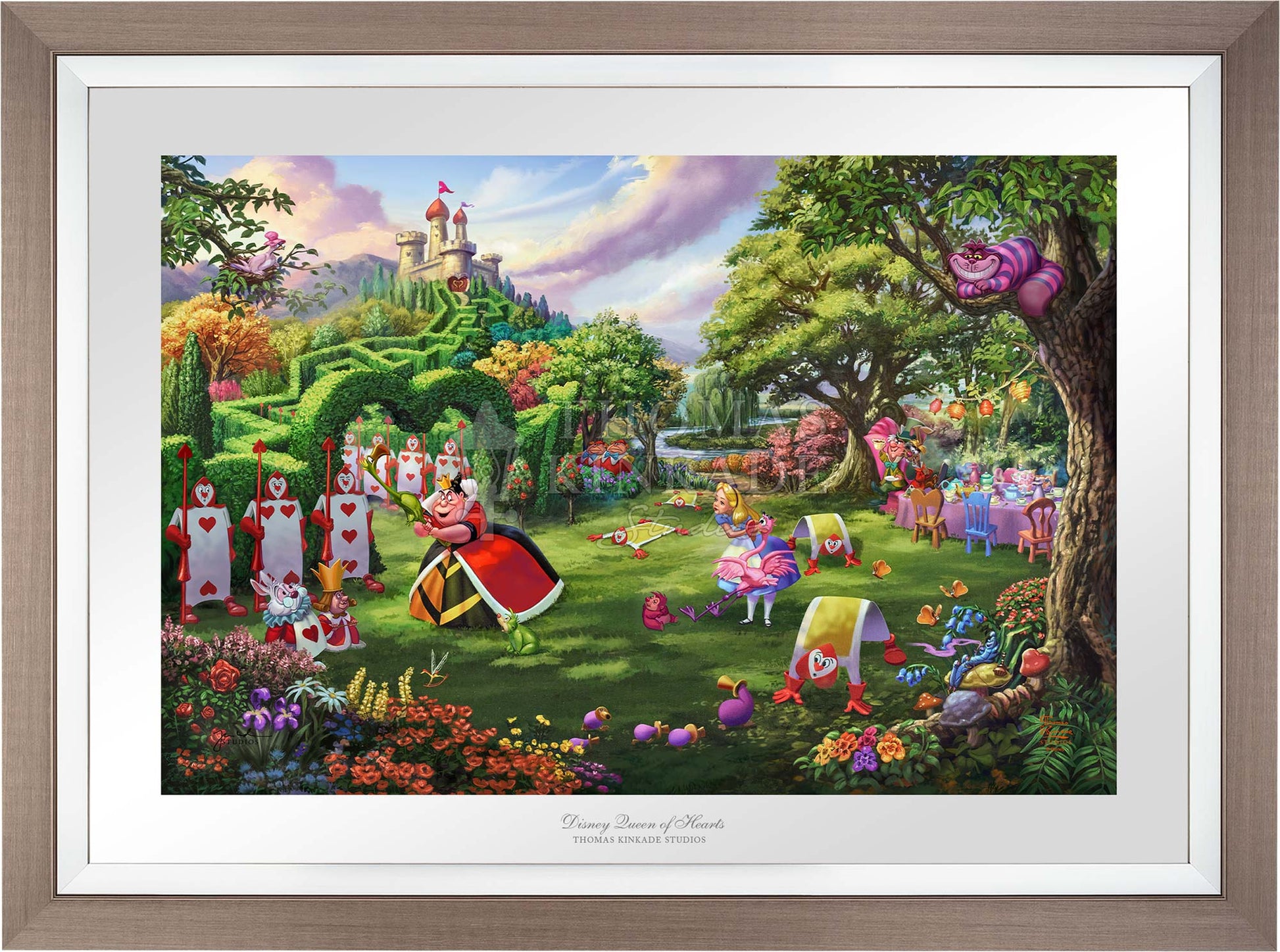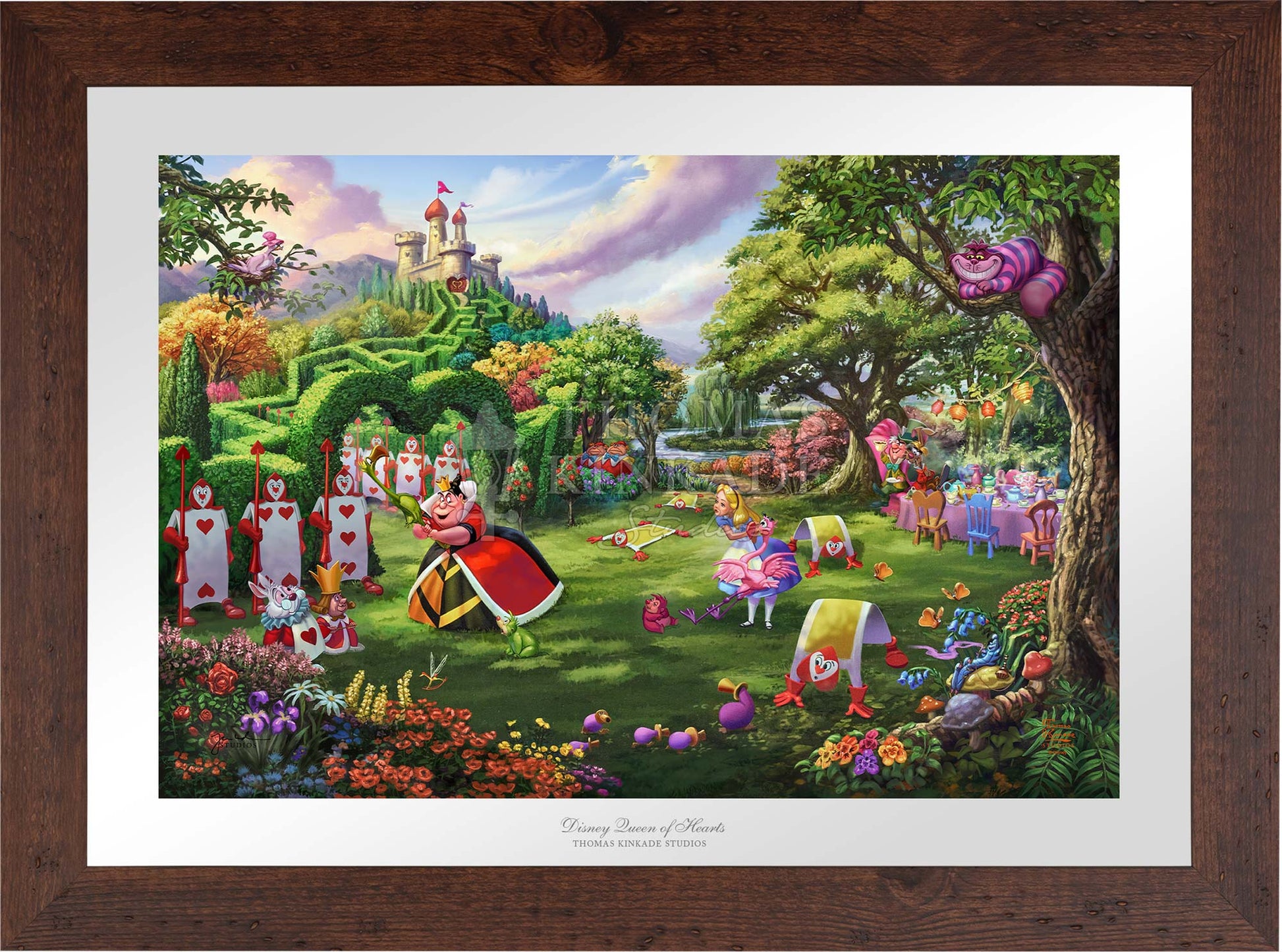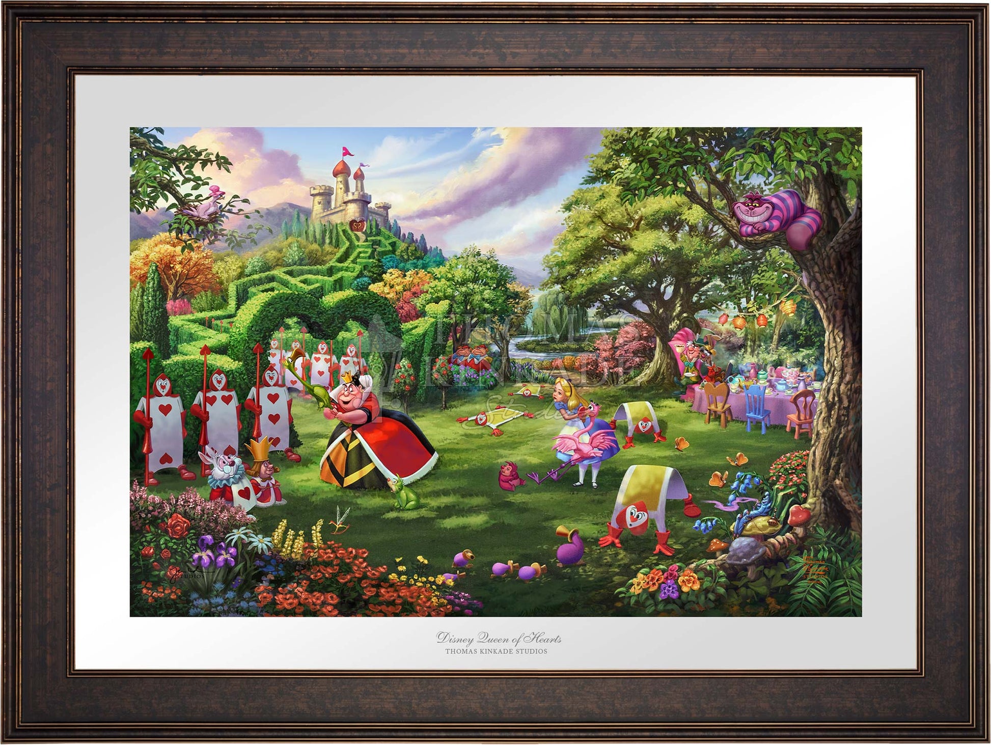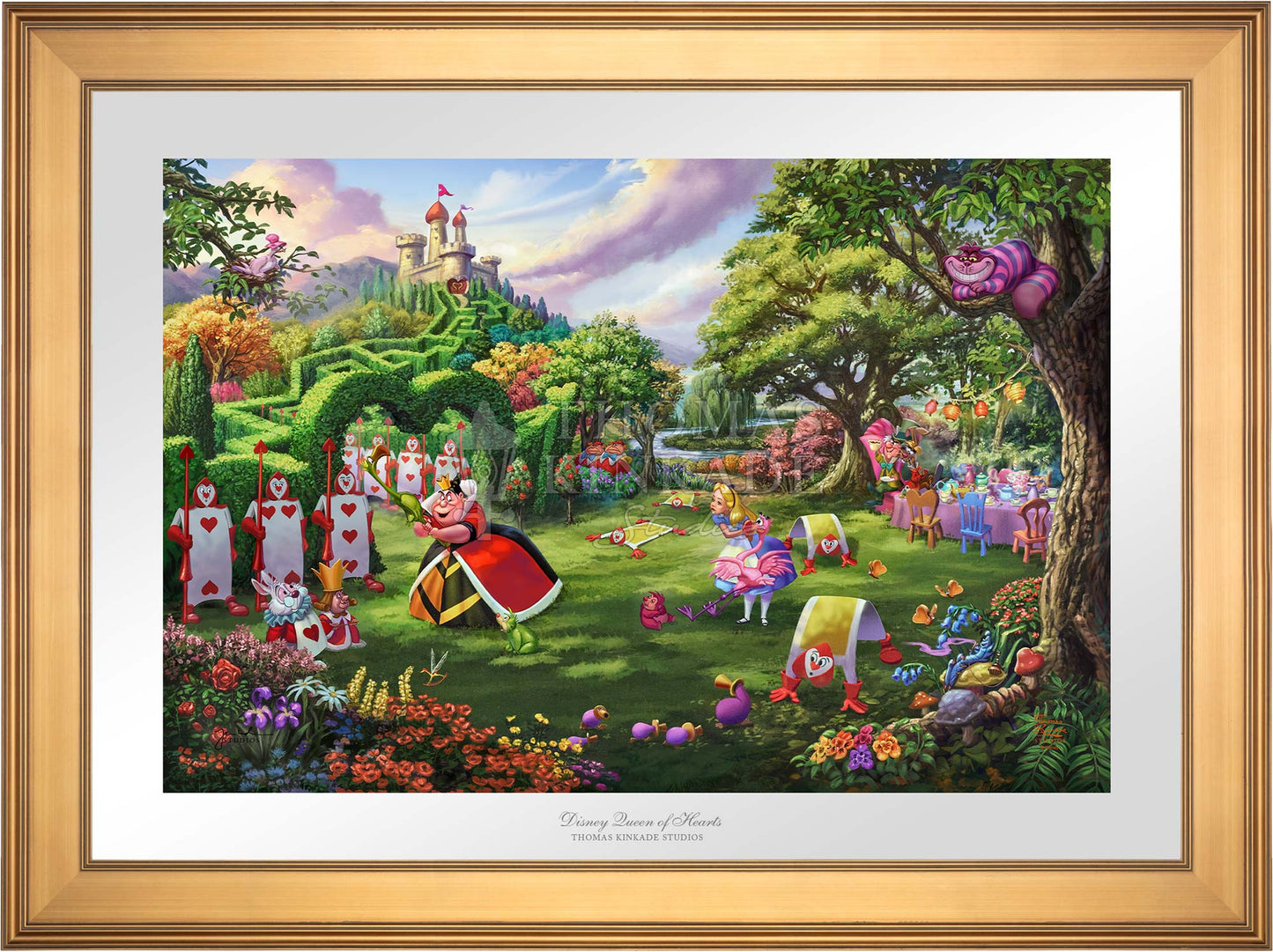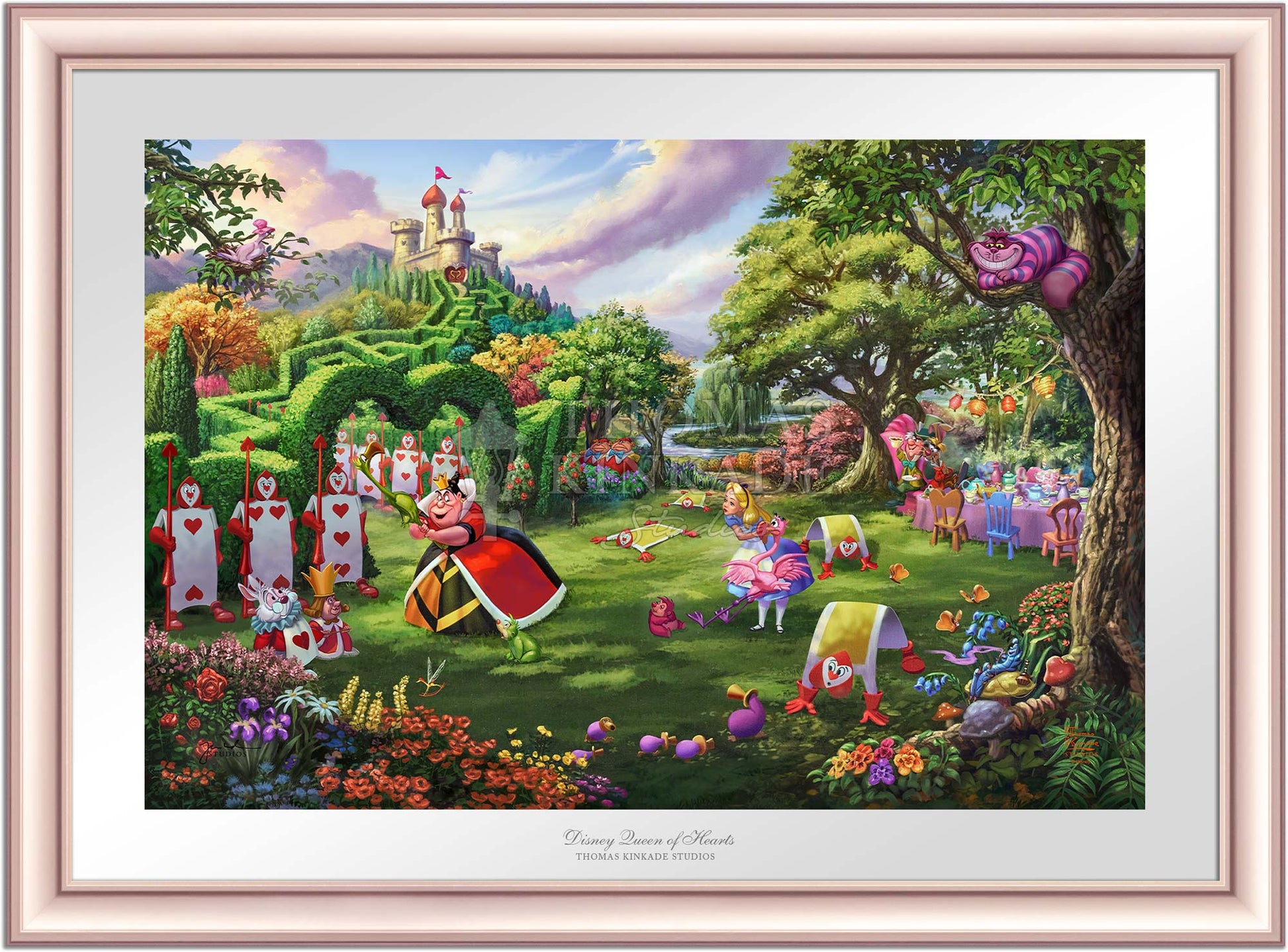 Thomas Kinkade Studios’ painting Disney Queen of Hearts is inspired by the literary genius of Lewis Carroll and the animated mastery of Walt Disney, and is a follow-up to the Thomas Kinkade Studios artwork Disney Alice in Wonderland and Disney Mad Hatter’s Tea Party.