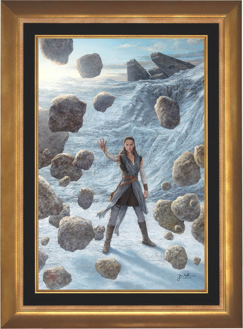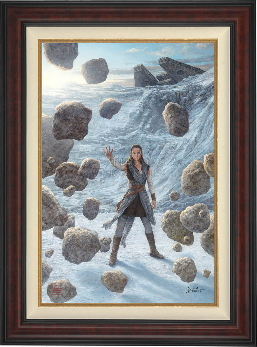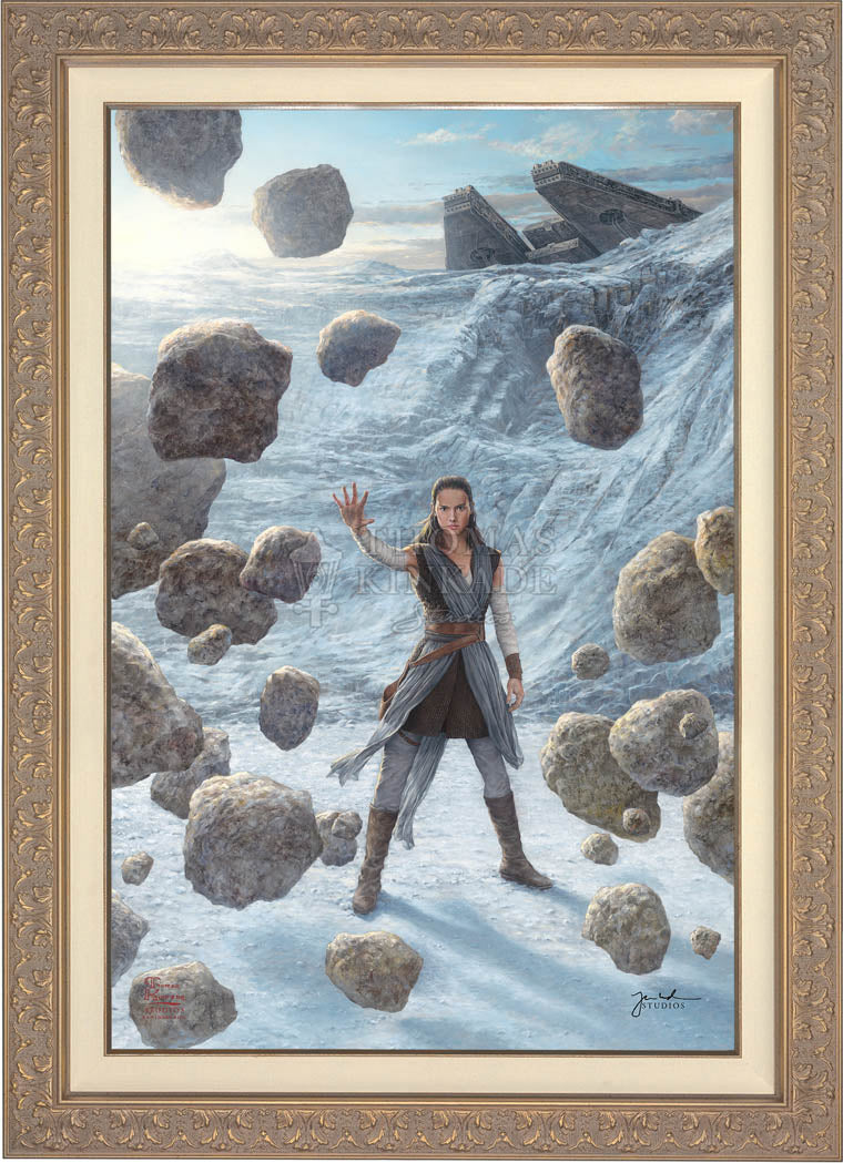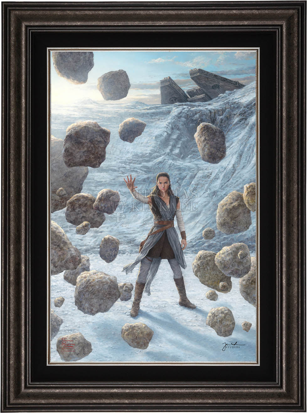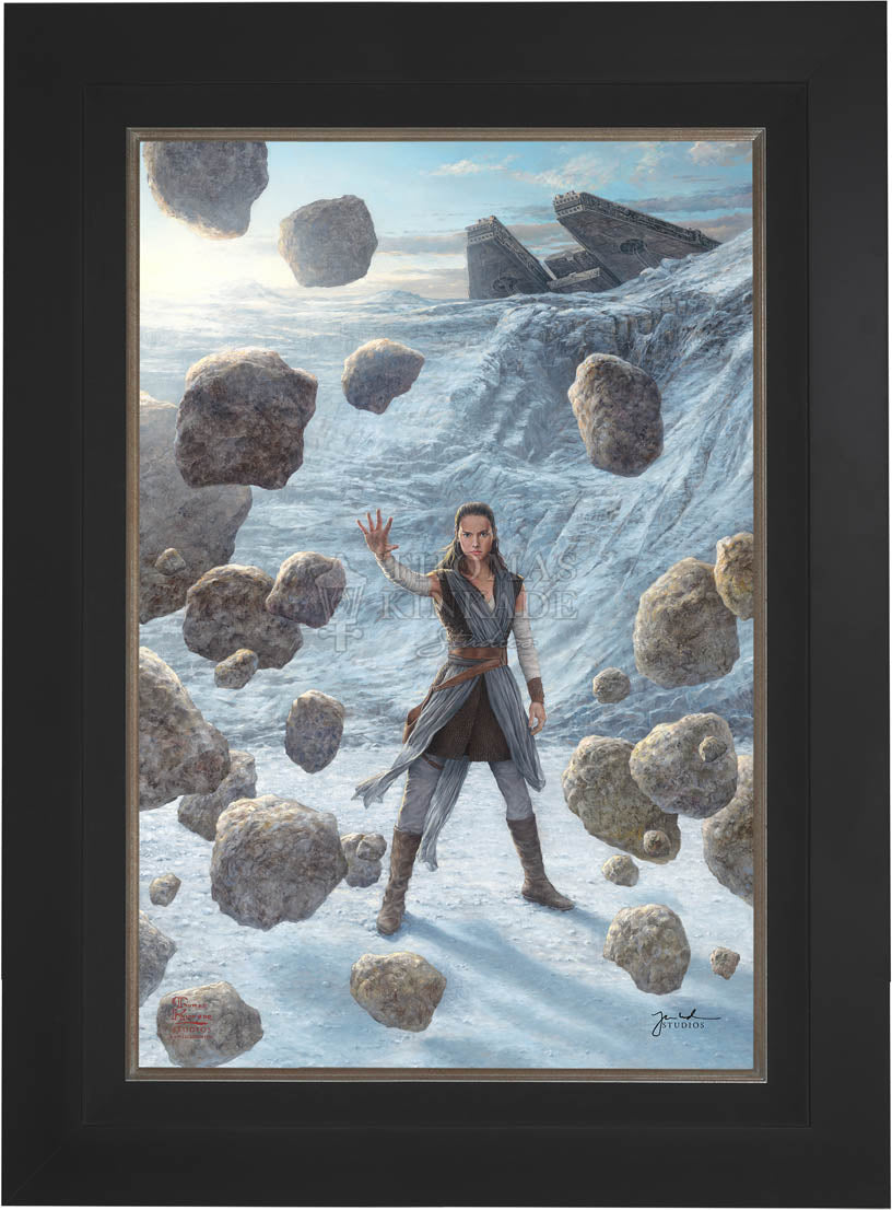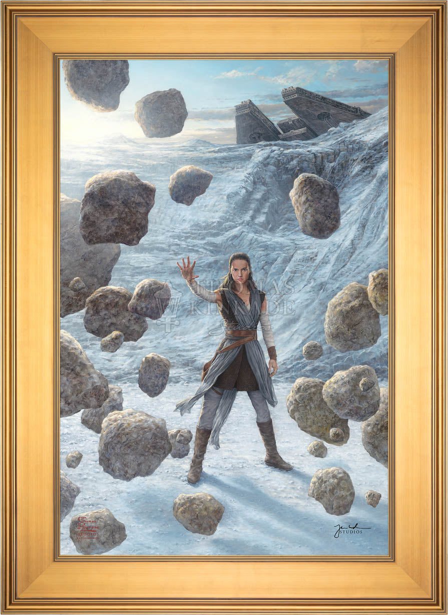 The Millennium Falcon has landed on Crait right above the back of the outpost cavern. Rey climbs down and sees the vulptex emerge through a small crevice, and senses that her friends are just inside behind all the fallen boulders. She raises her hand to move the boulders away from the cavern, saving her friends. The Resistance fighters emerge and join Rey aboard the Millennium Falcon, once more a step ahead of Kylo Ren and the First Order, restoring hope and inspiring rebellion across the galaxy.