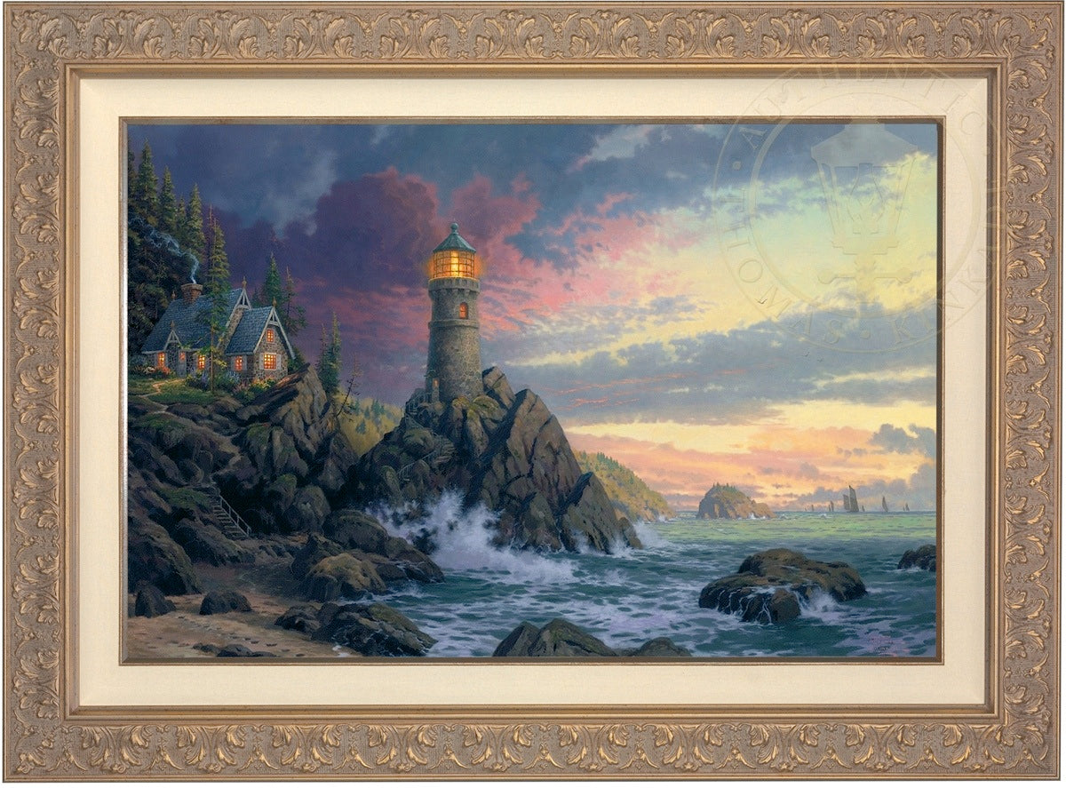 Thomas Kinkade Limited Edition Canvases combine old world craftsmanship with the finest materials and latest production technologies to produce extraordinary canvas artwork. Our reproduction process captures not only the color and mood of Thom's enchanting original painting, but the actual brushwork as well. Every piece is hand-retouched by skilled artisans, giving the painting a look almost identical to the artist's on-easel original. Vibrant colors, rich textures and color tones accurate to Thom's original brushstrokes are the hallmarks of your finished piece.