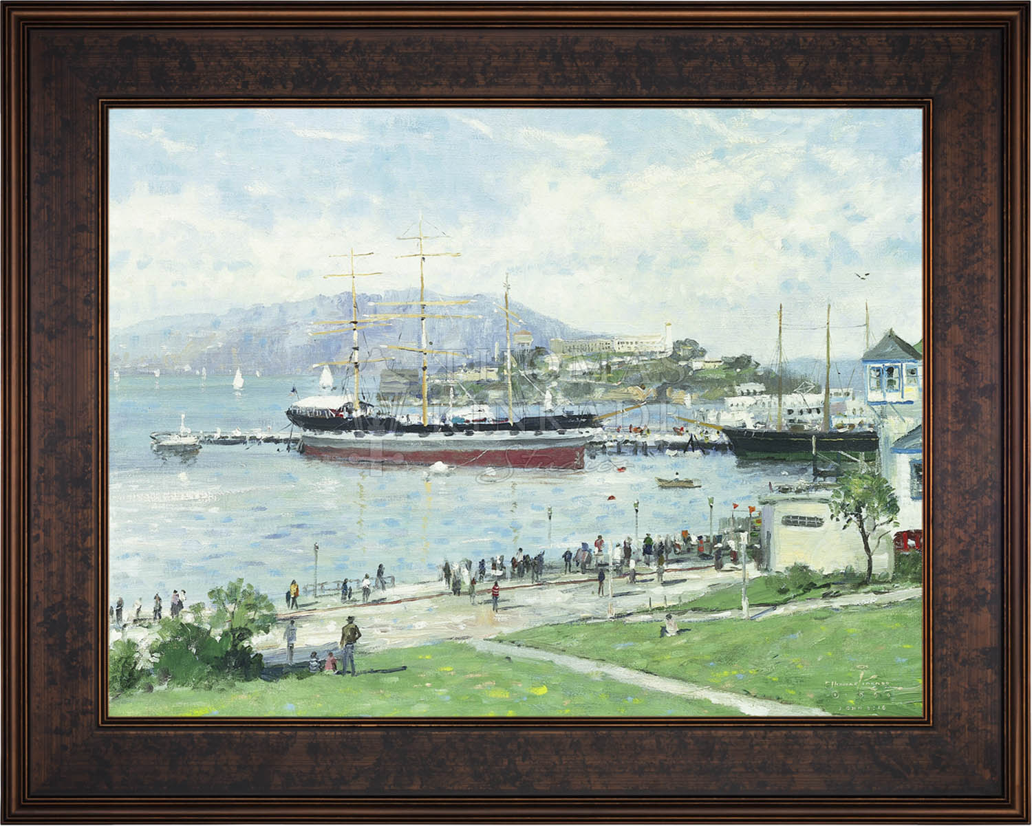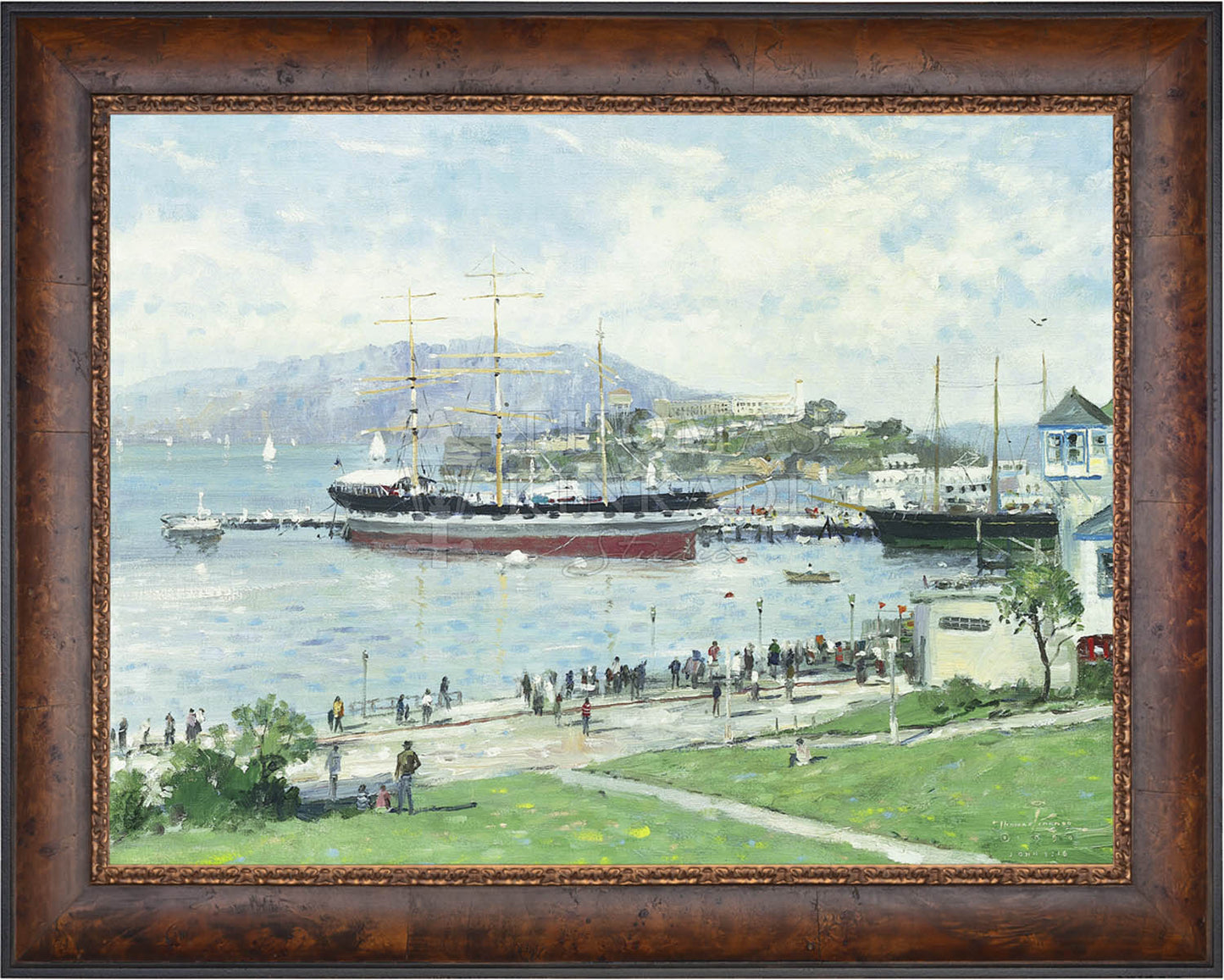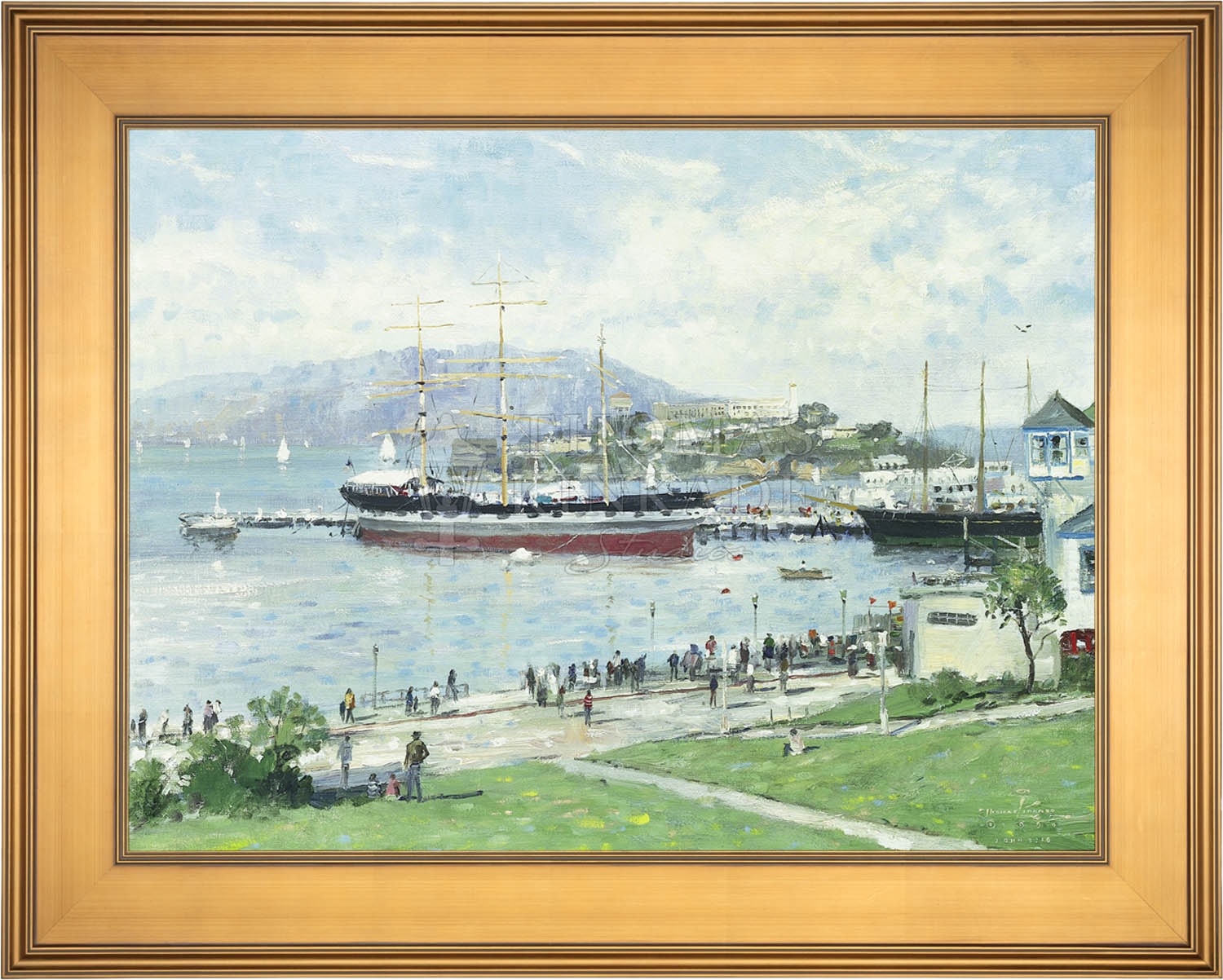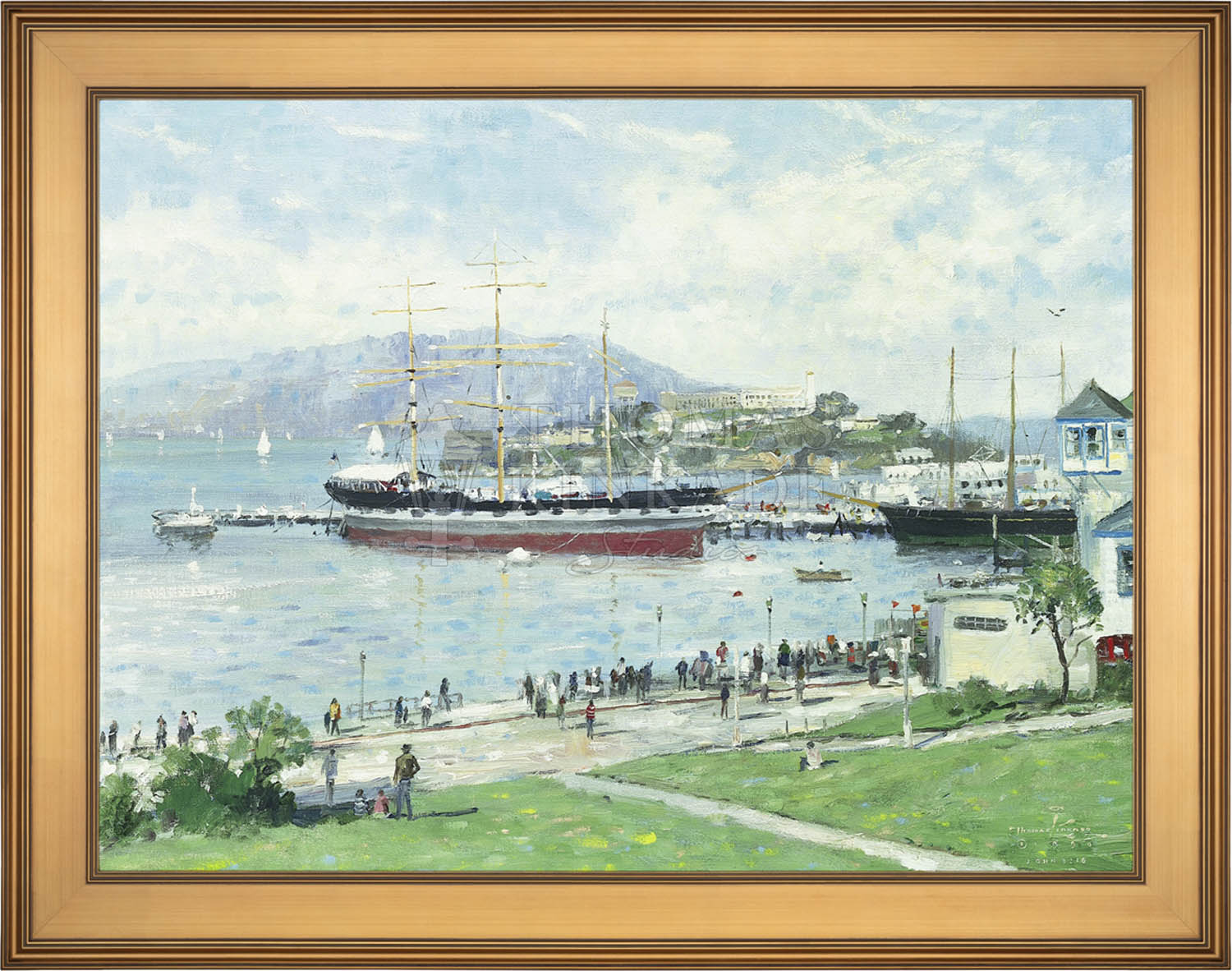 Call UsOn the day that I set up my canvas to paint San Francisco, this wonderful historic ship was docked in the harbor, and tourists crowded the waterfront, viewing the island of Alcatraz.