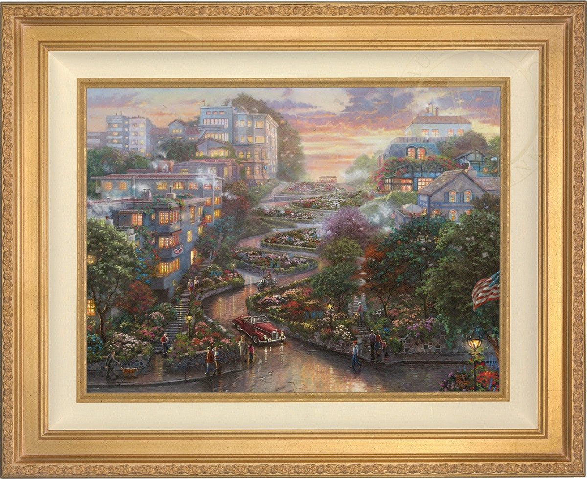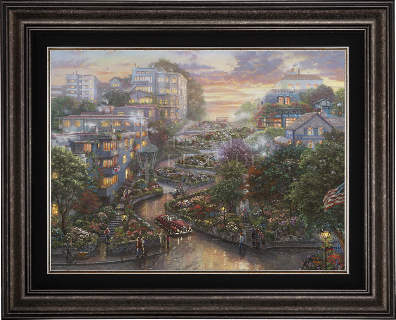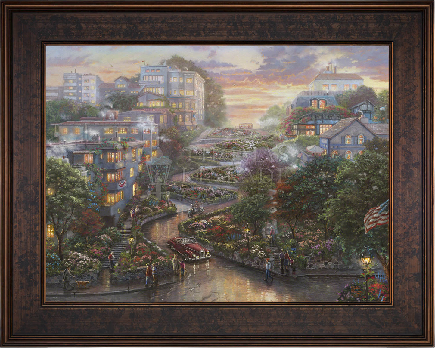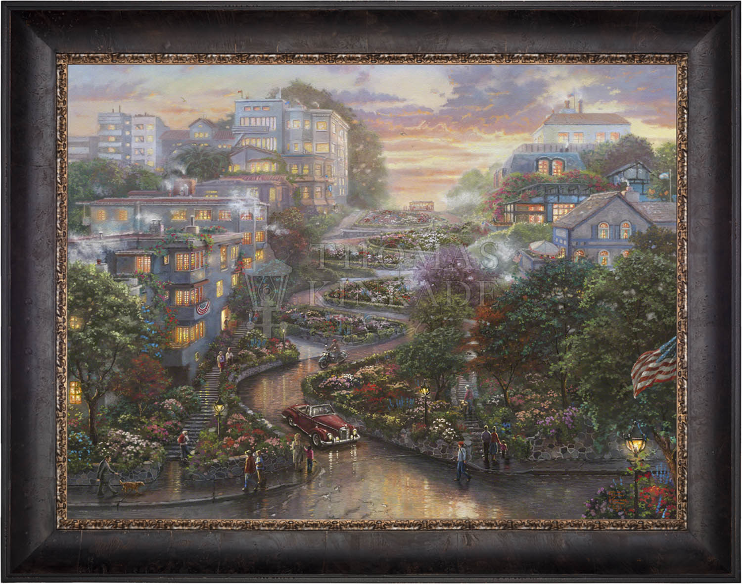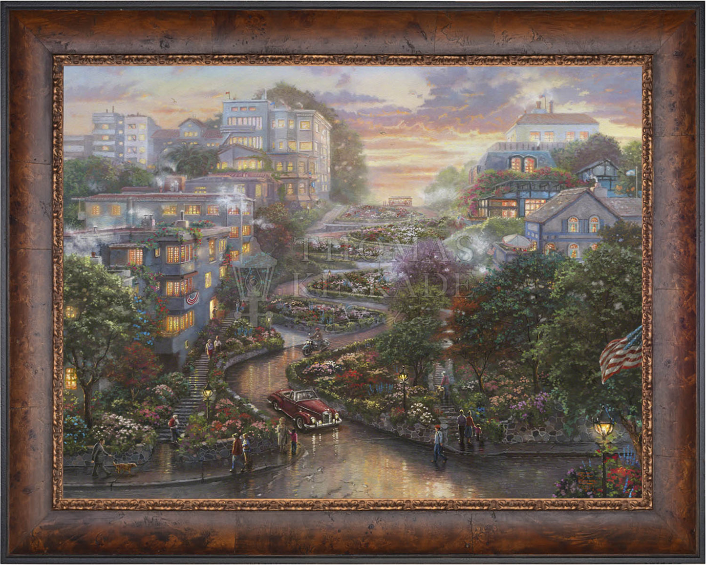 Few cities offered Thomas Kinkade the romantic inspiration that San Francisco brought to his canvas. A favorite for Thom even as a young boy, the City by the Bay was "the city for me" - with breathtaking vistas and stunning spectacles waiting to be captured by his artist’s brush.Lombard Street proclaimed "the crookedest street in the world," was a frequent stop for Thom’s motorcycle and artist easel. Plunging down a steep and winding road through a profusion of flowers and romantic old homes, Lombard Street offers sweeping views of the City and Bay while gently reminding us of the twists and turns along the road of life. Looking back up Lombard Street, it’s easy to see that the way we came, though winding and uncertain, still brought us to the place we were meant to be.