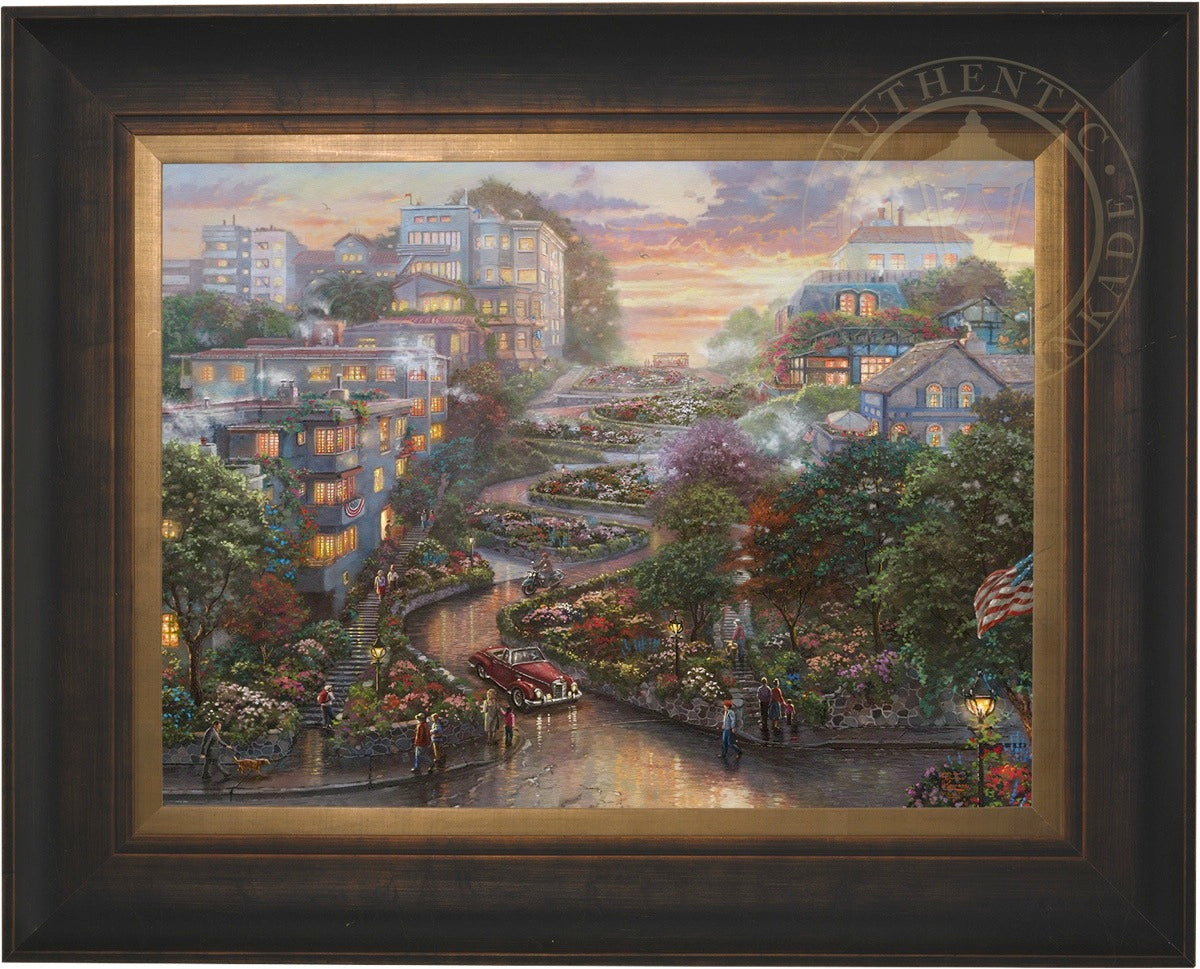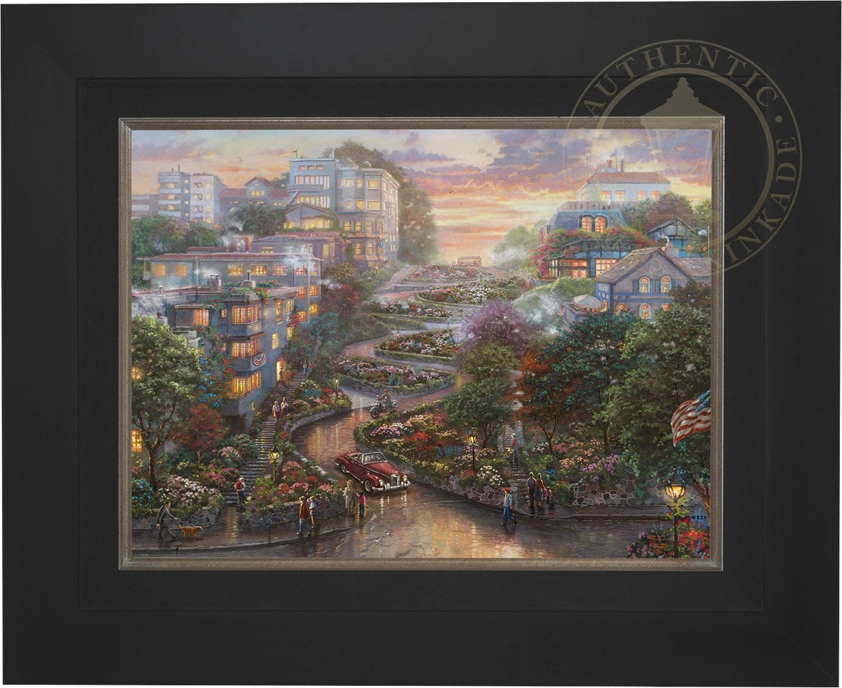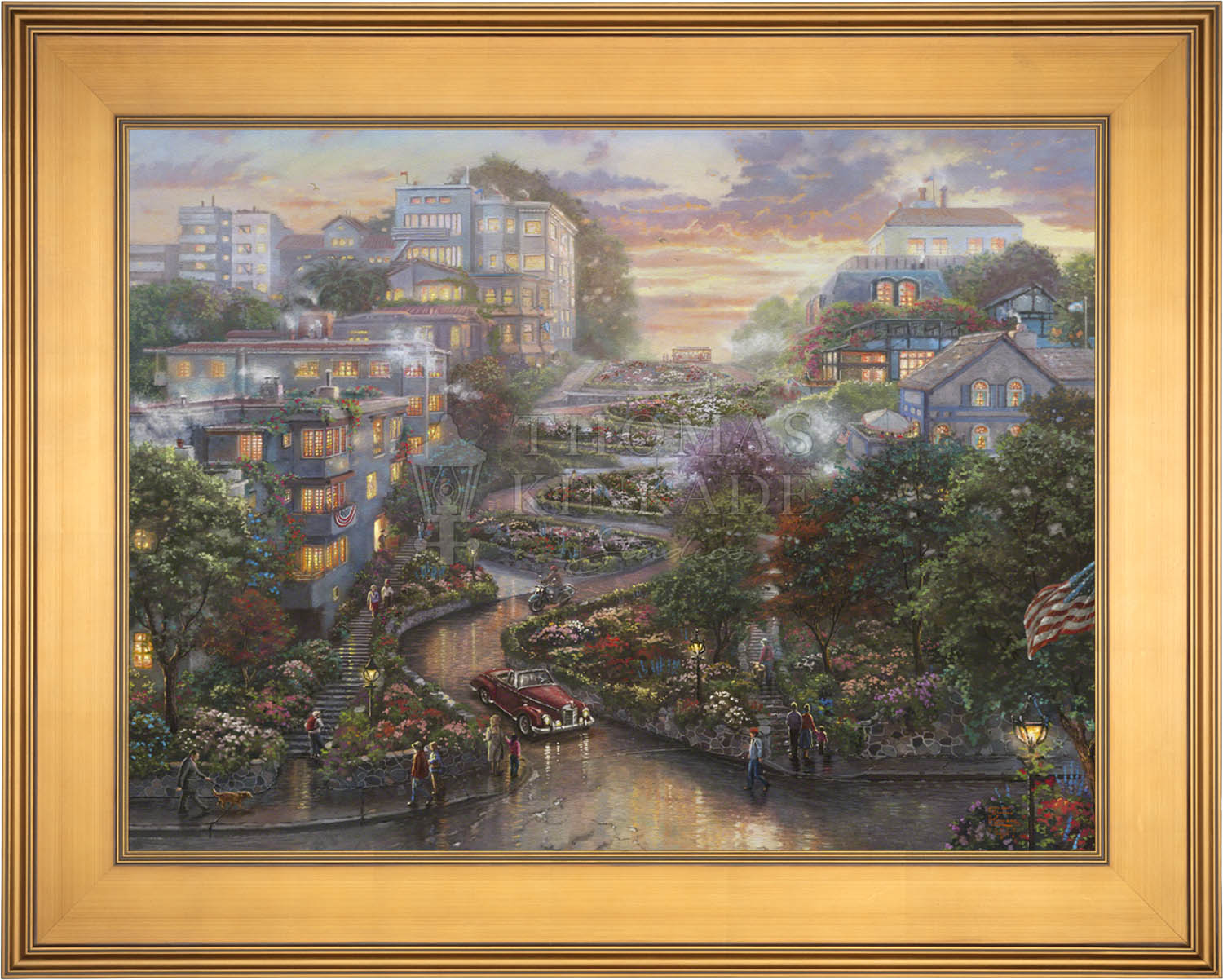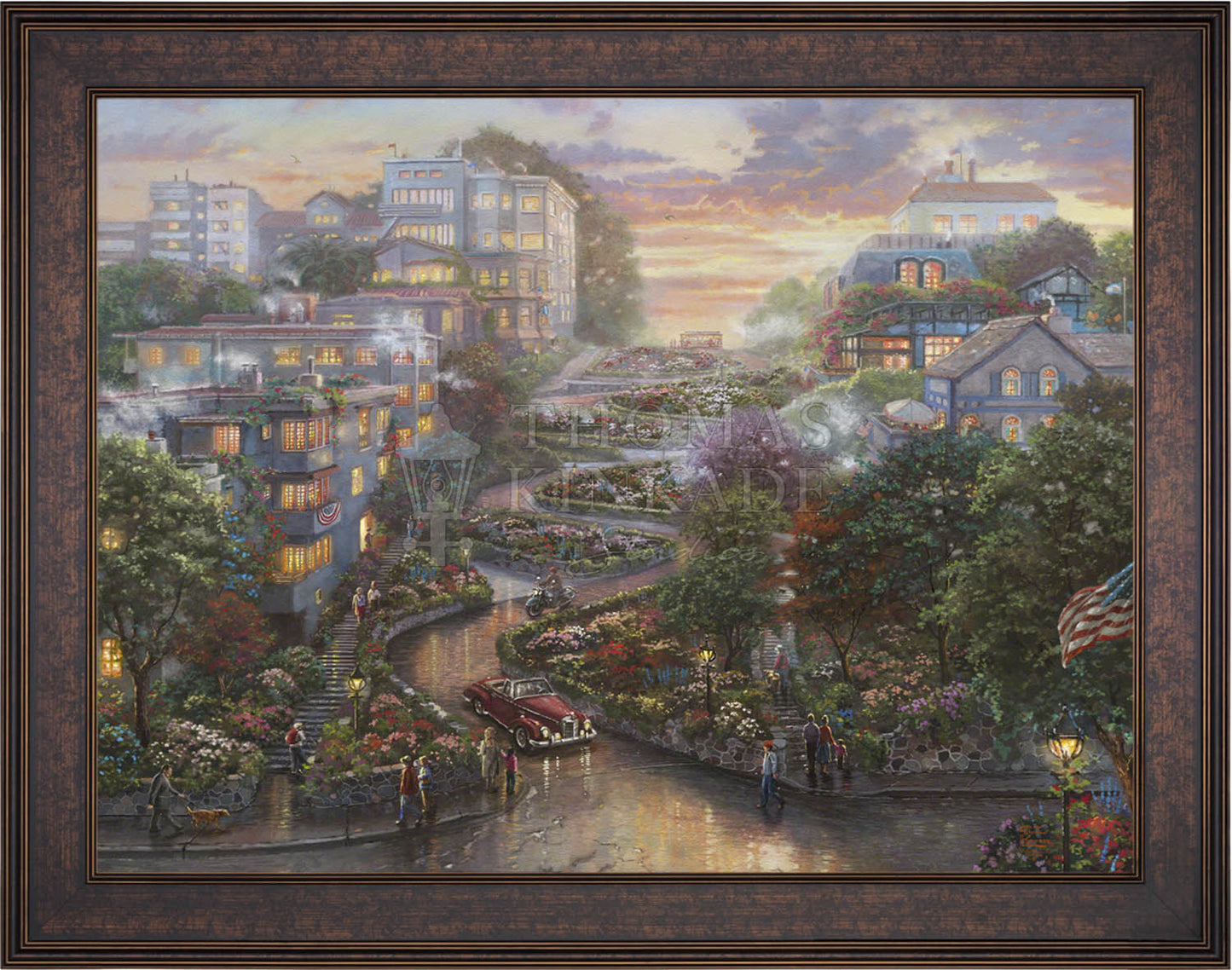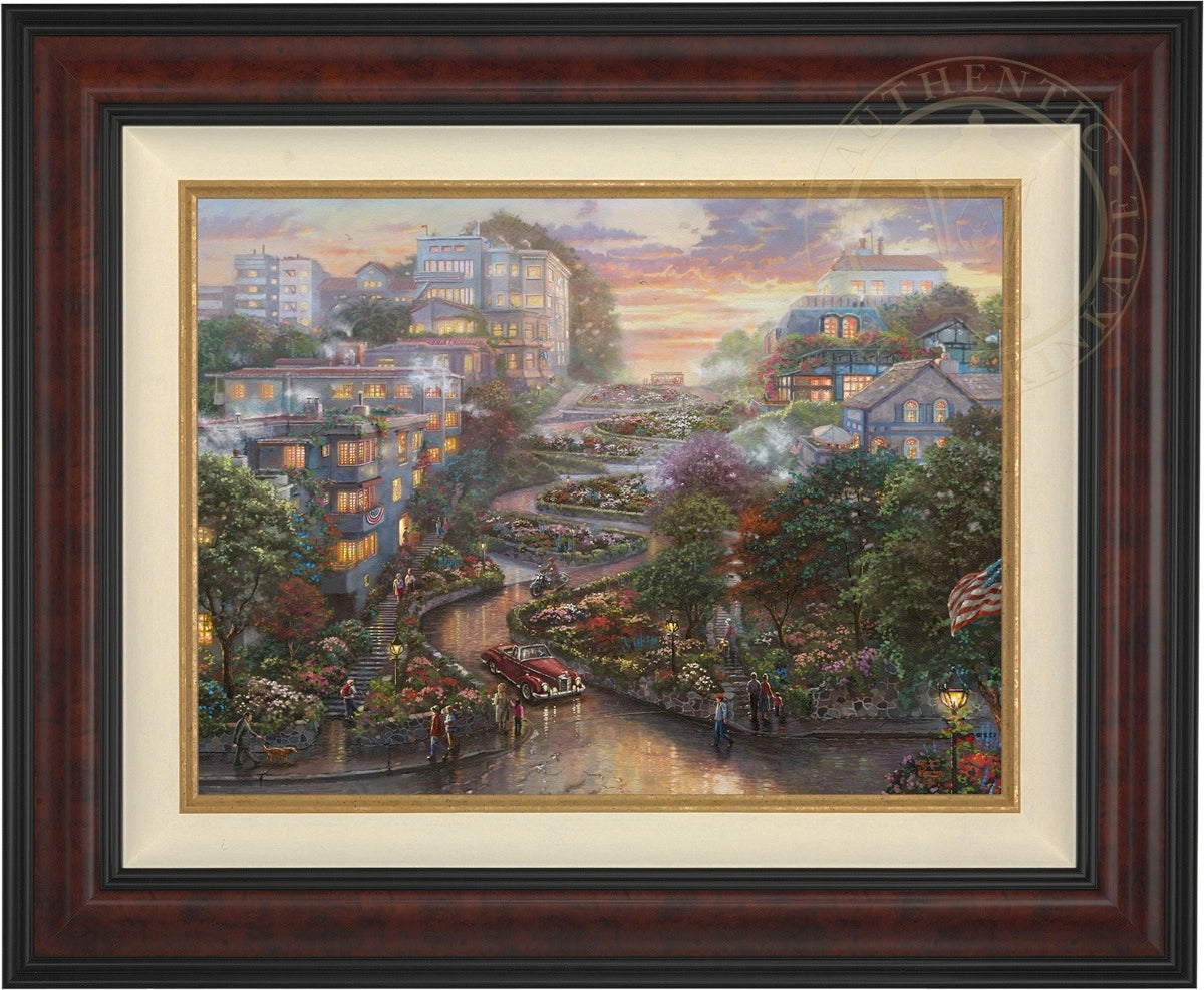 Few cities offered Thomas Kinkade the romantic inspiration that San Francisco brought to his canvas. A favorite for Thom even as a young boy, the City by the Bay was "the city for me" - with breathtaking vistas and stunning spectacles waiting to be captured by his artist’s brush.Lombard Street proclaimed "the crookedest street in the world," was a frequent stop for Thom’s motorcycle and artist easel. Plunging down a steep and winding road through a profusion of flowers and romantic old homes, Lombard Street offers sweeping views of the City and Bay while gently reminding us of the twists and turns along the road of life. Looking back up Lombard Street, it’s easy to see that the way we came, though winding and uncertain, still brought us to the place we were meant to be.