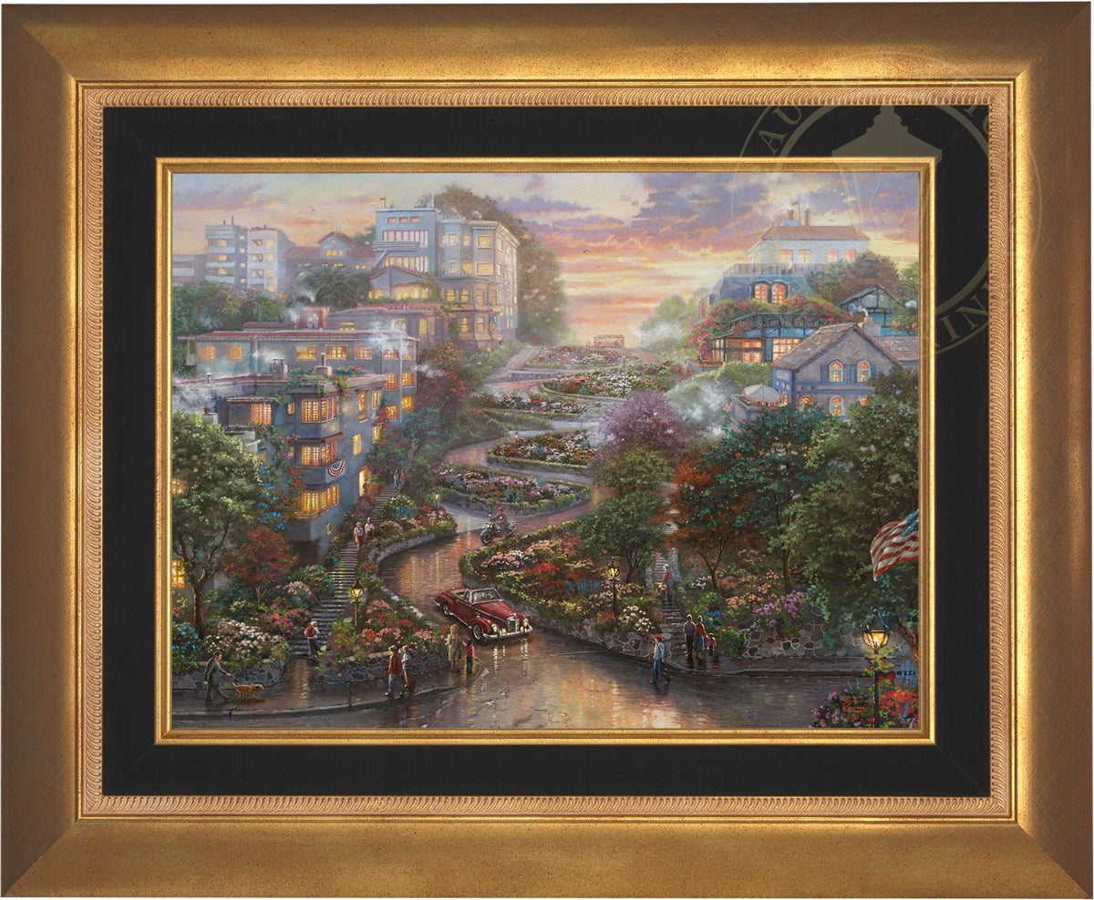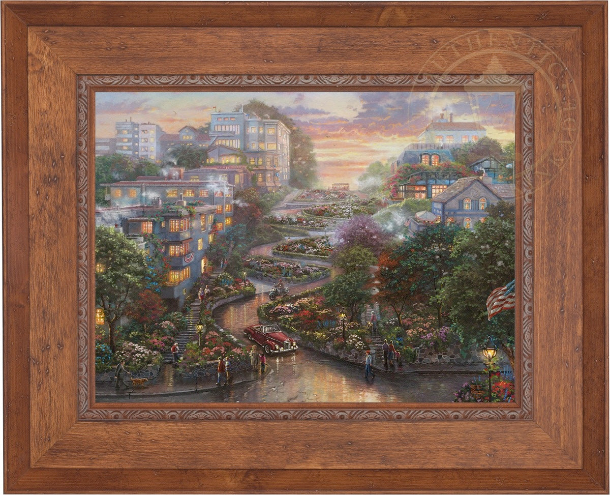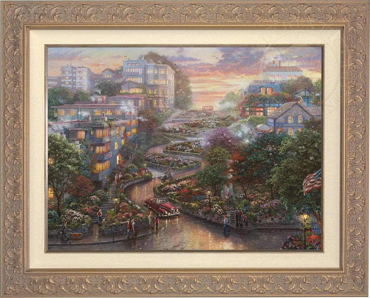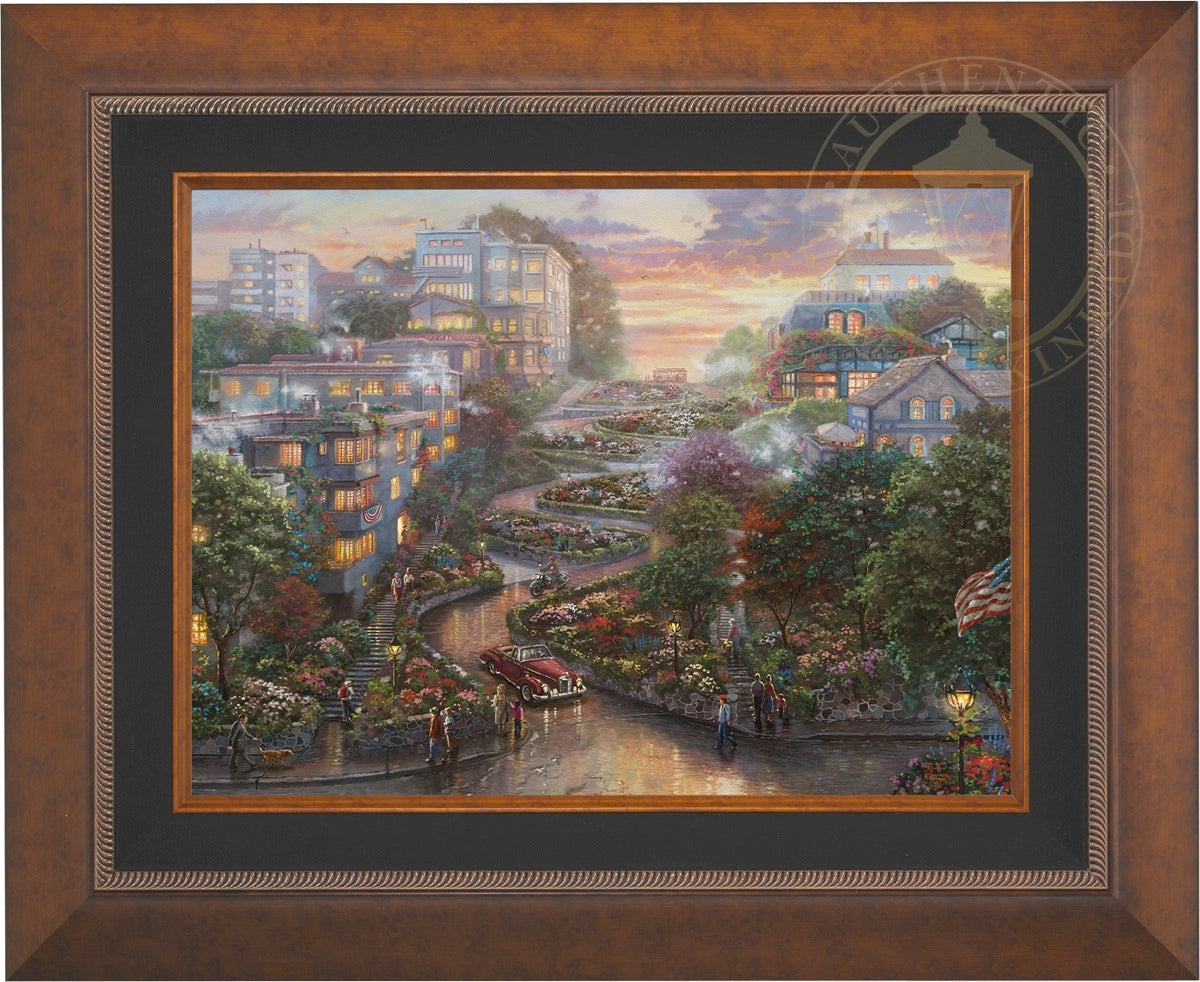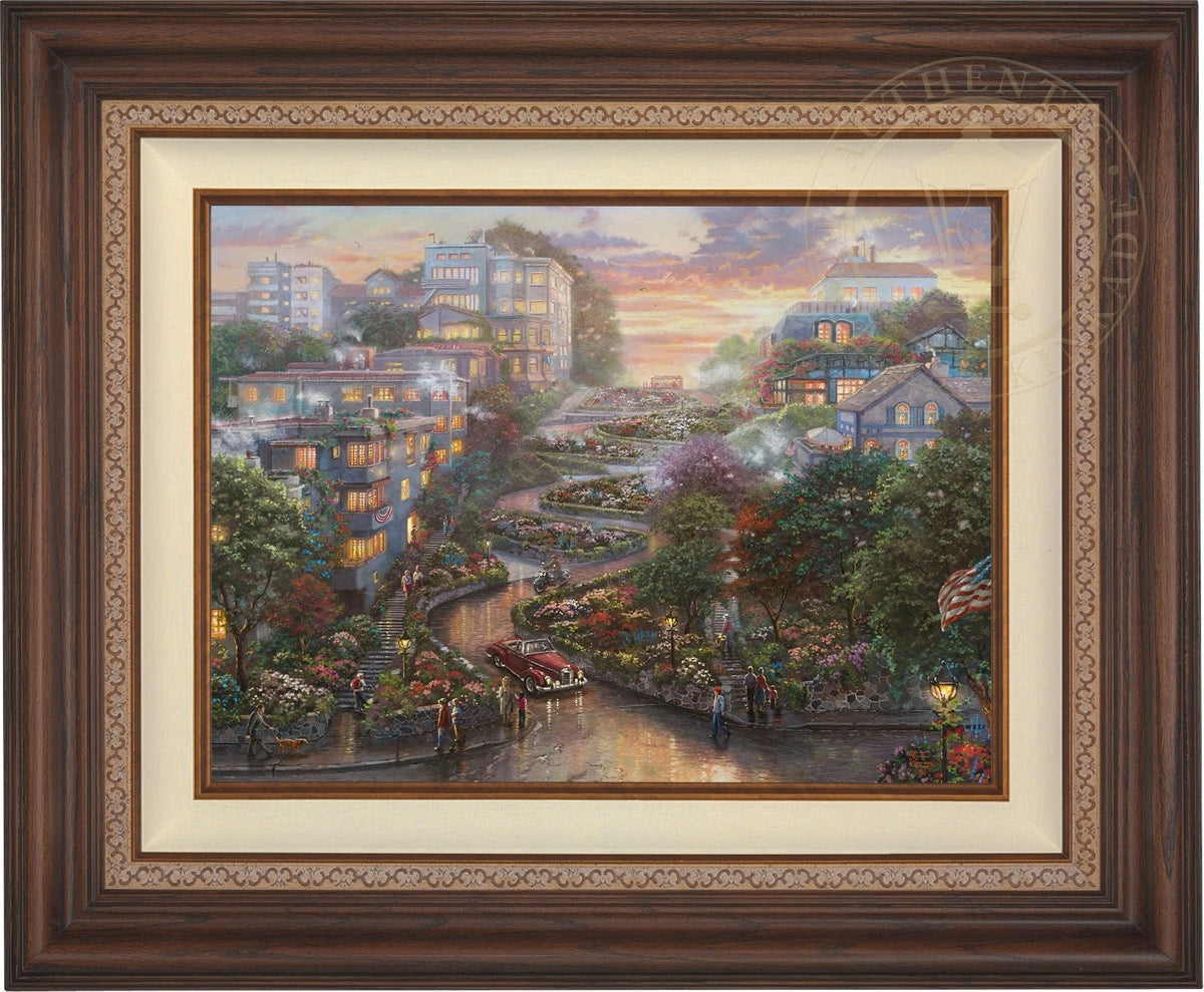 Few cities offered Thomas Kinkade the romantic inspiration that San Francisco brought to his canvas. A favorite for Thom even as a young boy, the City by the Bay was "the city for me" - with breathtaking vistas and stunning spectacles waiting to be captured by his artist’s brush.Lombard Street proclaimed "the crookedest street in the world," was a frequent stop for Thom’s motorcycle and artist easel. Plunging down a steep and winding road through a profusion of flowers and romantic old homes, Lombard Street offers sweeping views of the City and Bay while gently reminding us of the twists and turns along the road of life. Looking back up Lombard Street, it’s easy to see that the way we came, though winding and uncertain, still brought us to the place we were meant to be.