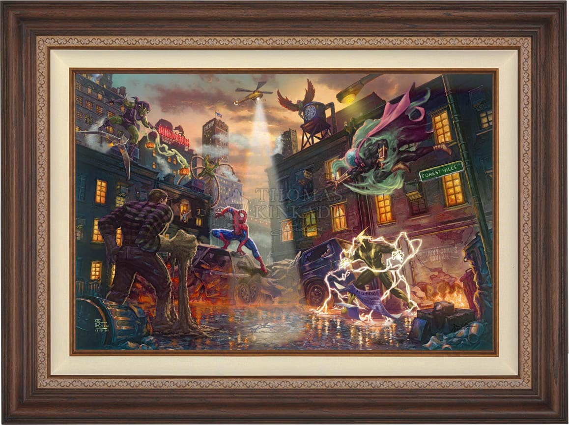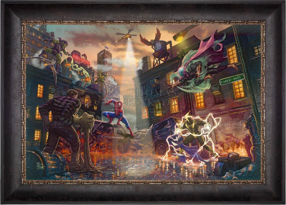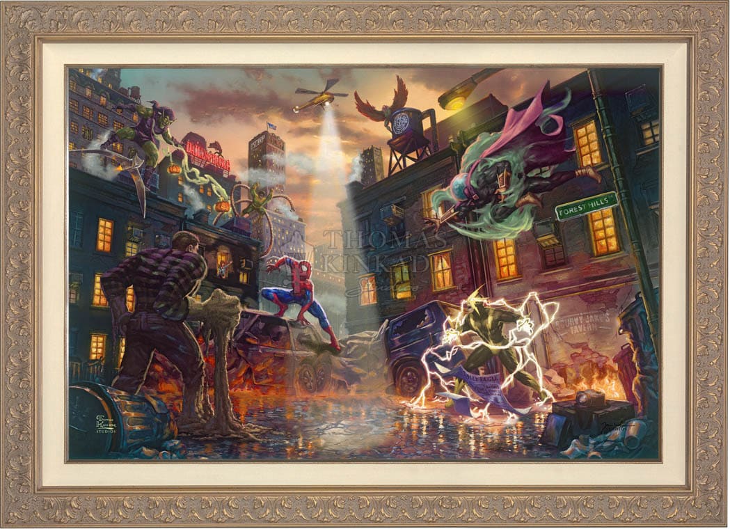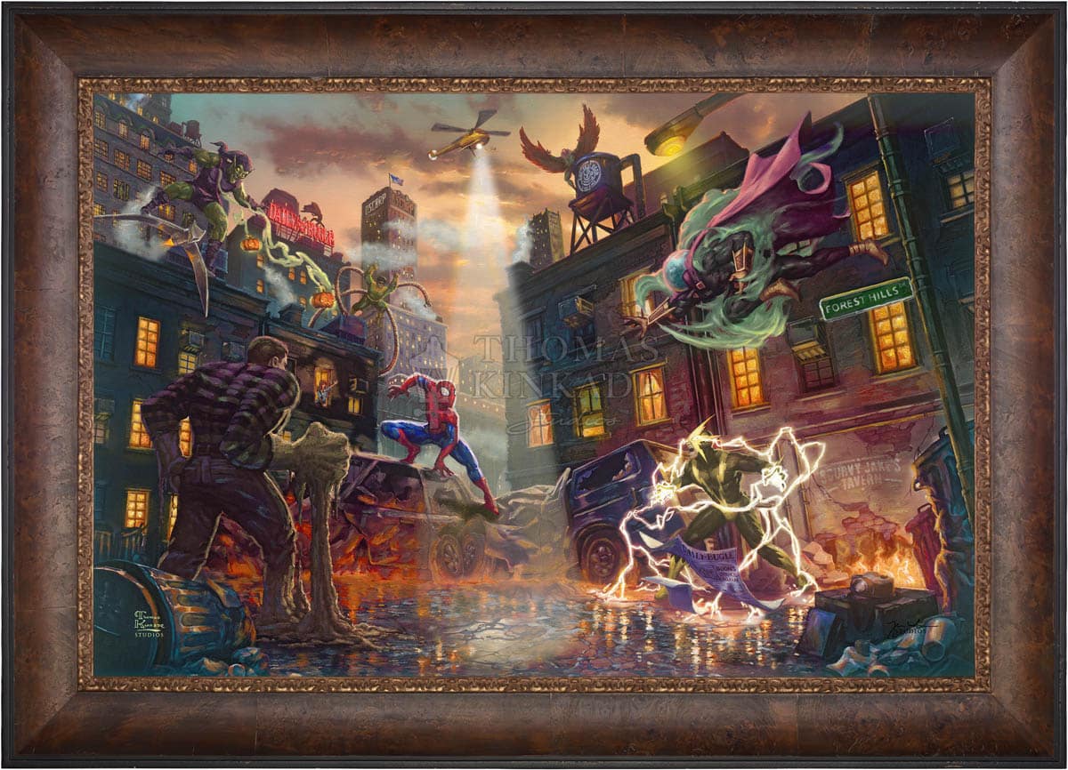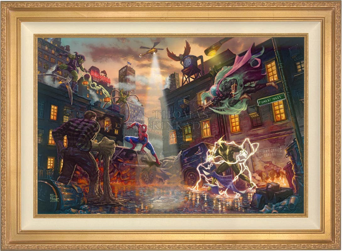 Thomas Kinkade Studios proudly presents its first Marvel Comics collaboration: Spider-Man vs. the Sinister Six.