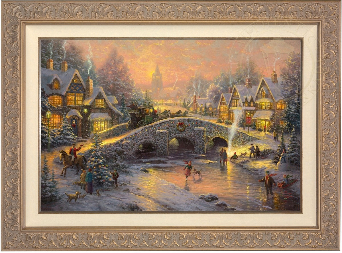 Thomas Kinkade Limited Edition Canvases combine old world craftsmanship with the finest materials and latest production technologies to produce extraordinary canvas artwork. Our reproduction process captures not only the color and mood of Thom's enchanting original painting, but the actual brushwork as well. Every piece is hand-retouched by skilled artisans, giving the painting a look almost identical to the artist's on-easel original. Vibrant colors, rich textures and color tones accurate to Thom's original brushstrokes are the hallmarks of your finished piece.