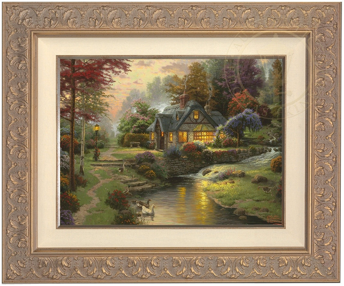Thomas Kinkade Limited Edition Canvases combine old world craftsmanship with the finest materials and latest production technologies to produce extraordinary canvas artwork. Our reproduction process captures not only the color and mood of Thom's enchanting original painting, but the actual brushwork as well. Every piece is hand-retouched by skilled artisans, giving the painting a look almost identical to the artist's on-easel original. Vibrant colors, rich textures and color tones accurate to Thom's original brushstrokes are the hallmarks of your finished piece.