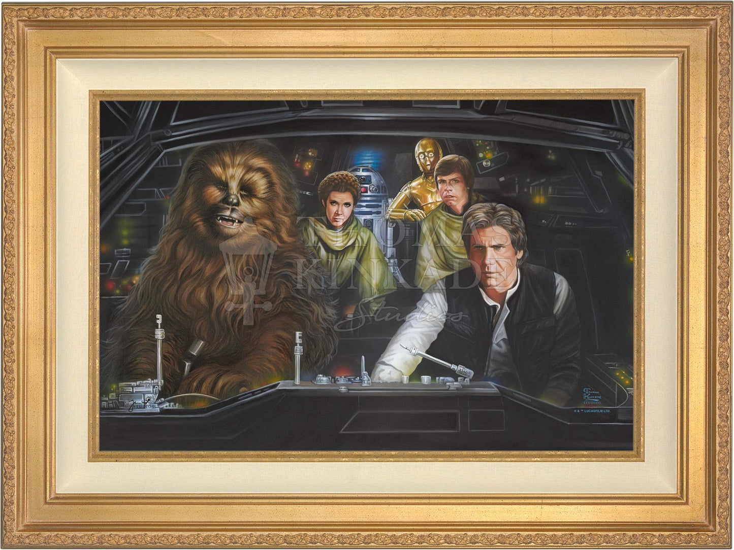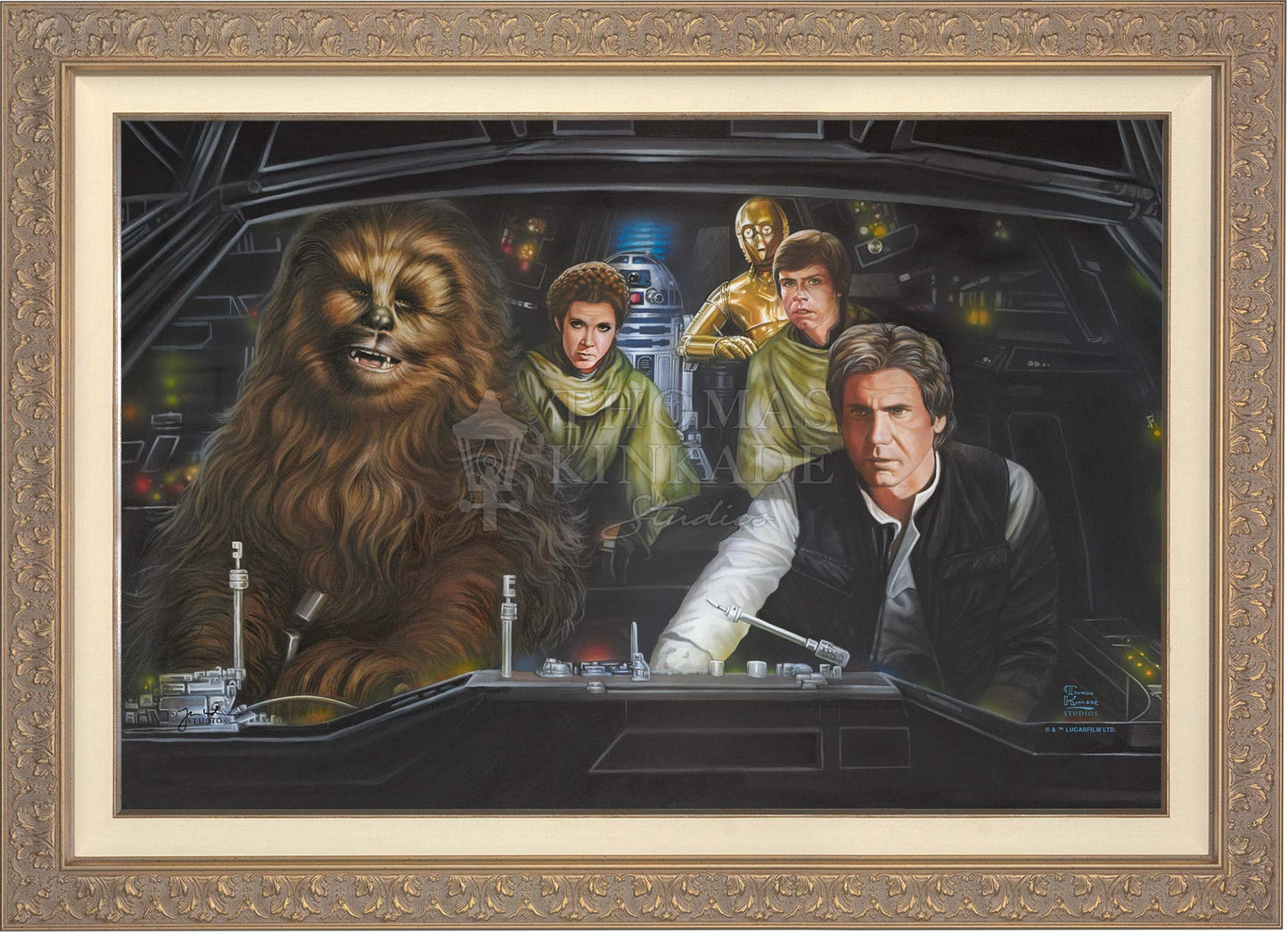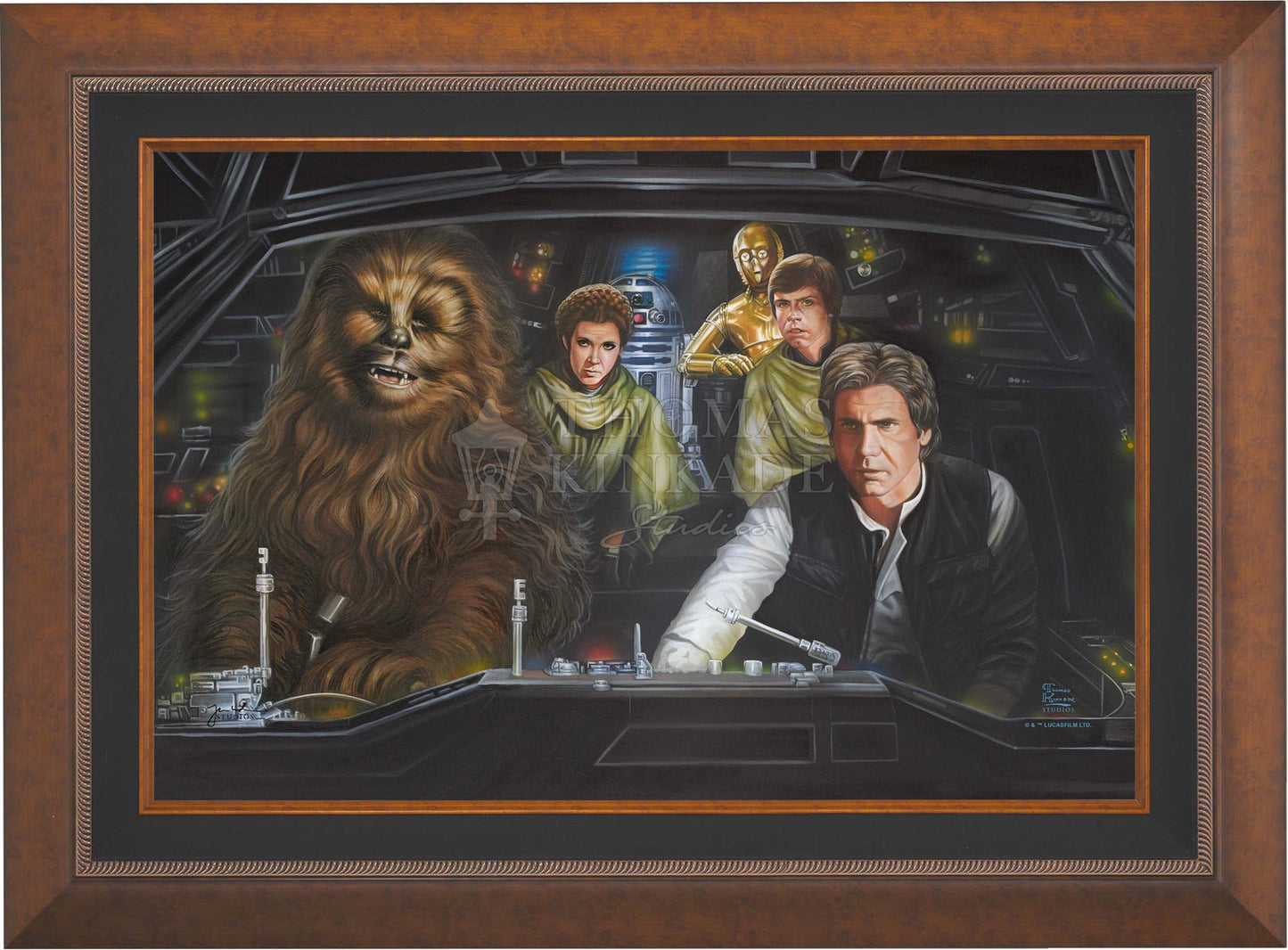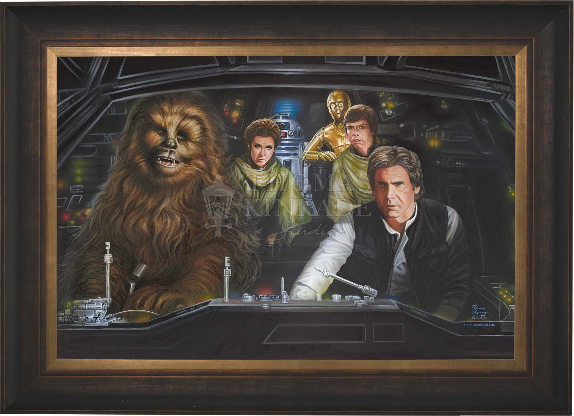 General Han Solo leads a small team of rebels including Chewbacca™, Princess Leia Organa™, Luke Skywalker™, and the Droids, C-3PO™ and R2-D2™ aboard The Tydirium, a stolen Imperial shuttle disguised as a cargo ship. The mission is to use a secret Imperial code, land on the forest moon, and deactivate the shield generator protecting the Death Star. While the team waits to see if the code will work and allow them to land on the forest moon to start their secret mission, the Rebel Alliance fleet starts their journey towards Endor to defeat the Empire and blow up the Death Star. Thomas Kinkade Studios is pleased to present Strike Team.