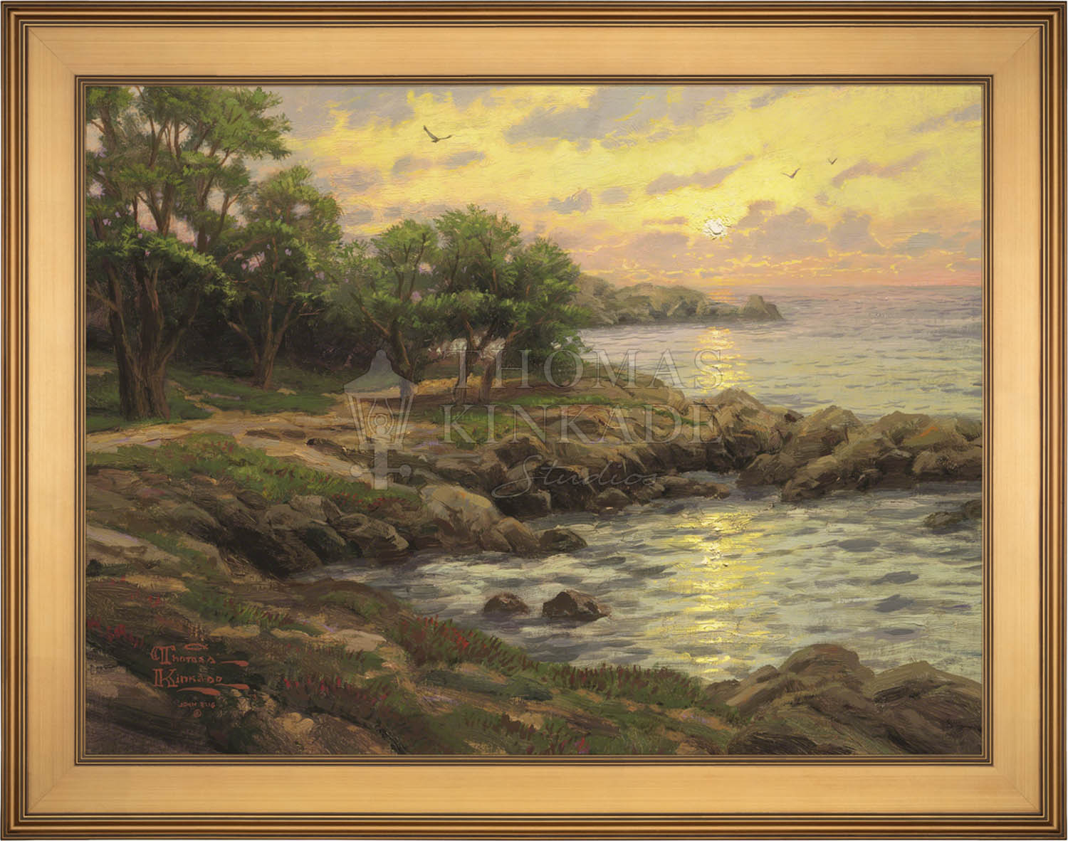 Call UsMy girls and I especially love to set out on our bikes along the winding trail that skirts the dramatic shoreline of Monterey Bay, revealing spectacular ocean vistas like the one in Sunset on Monterey Bay. As I set to work, the setting sun painted the clouds and mirror surface of the ocean with luminous colors; I worked feverishly to capture the glorious radiance.