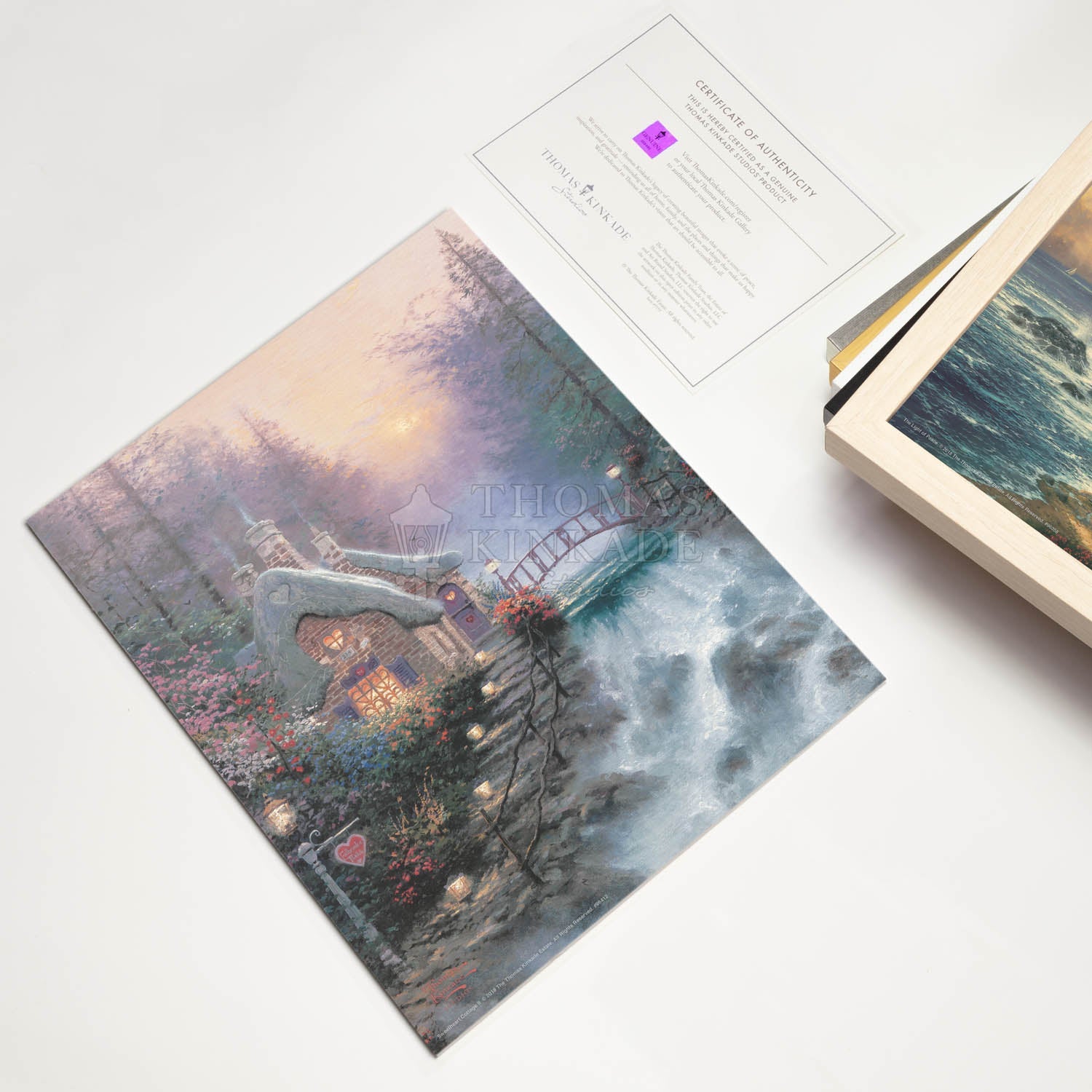 Thomas Kinkade Studios Art Prints are packaged in a collector's sleeve with an official Thomas Kinkade Studios Certificate of Authenticity, featuring a tamper-evident holographic seal. Printed on high quality 11” x 14” Satin Art Paper, each piece can be purchased unframed or framed, making them a great gift for someone special or an excellent addition to your personal collection. Frame choices include classic Black, fresh White, contemporary Silver, rich Gold, and rustic Natural Wood options, perfect for any home decor.