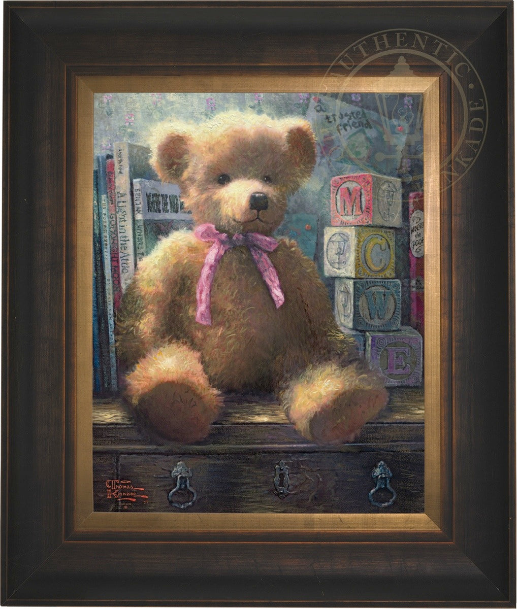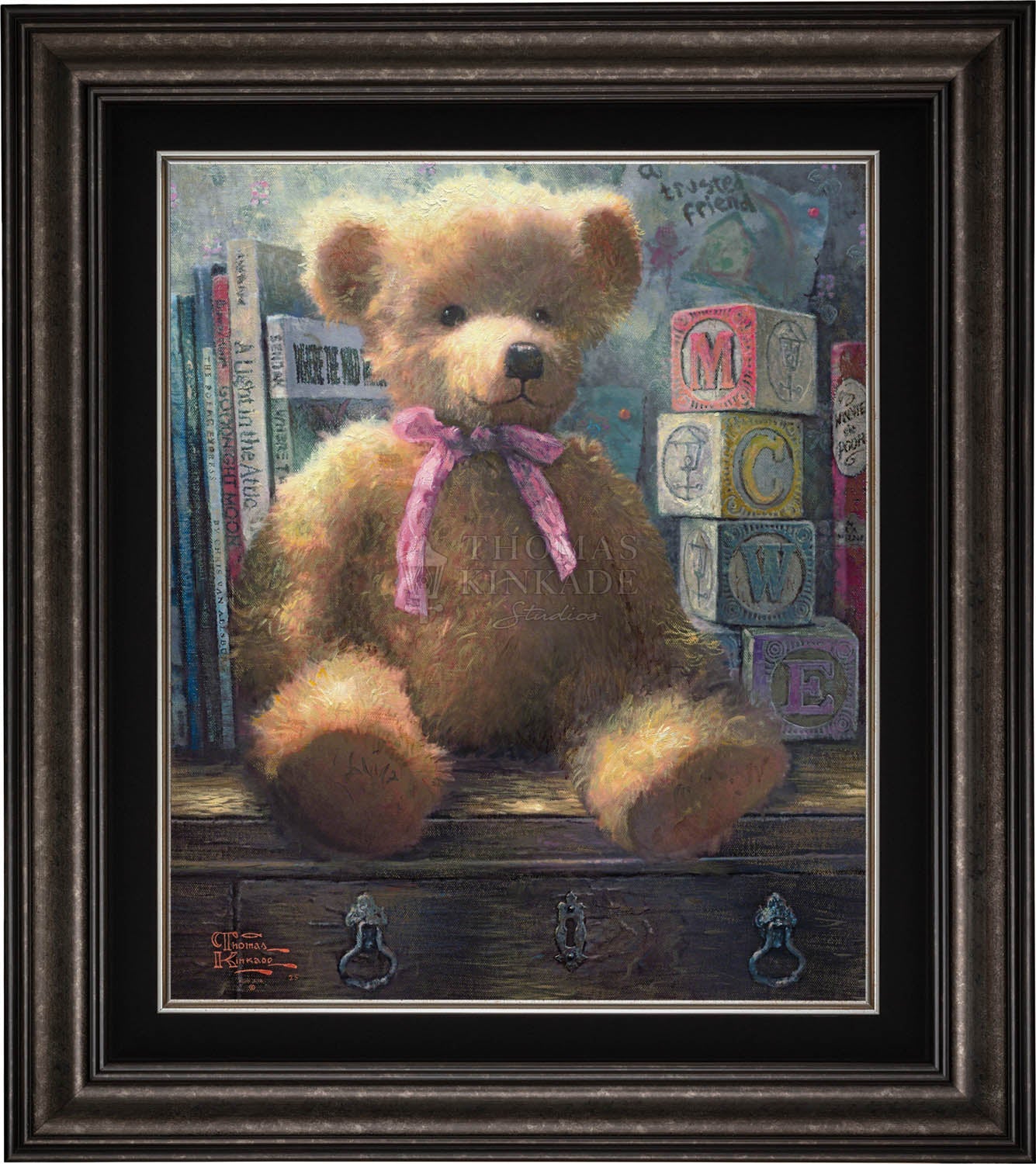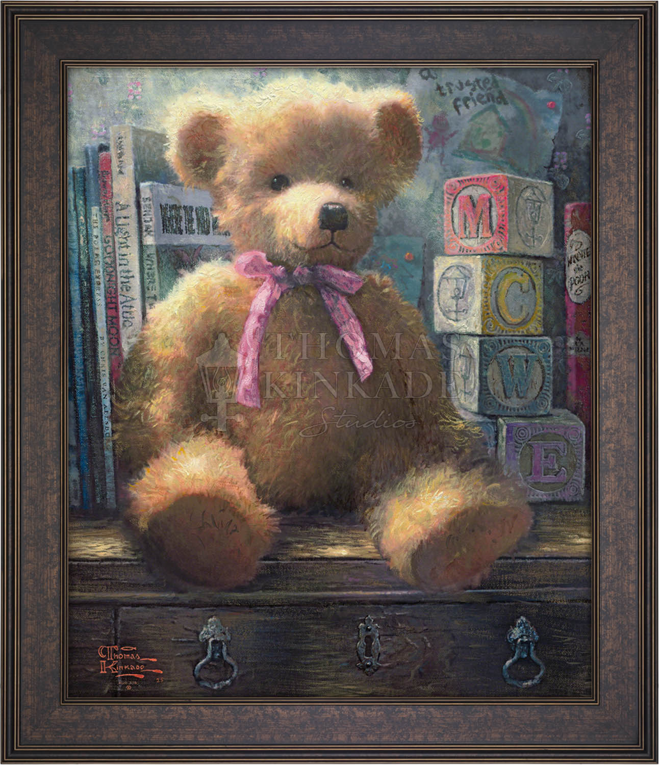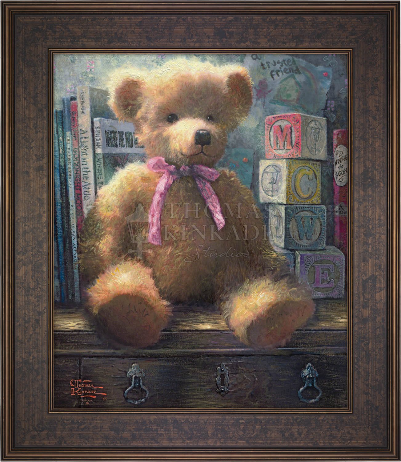 My painting A Trusted Friend celebrates the imagination of childhood which can make even an inanimate object come to life with love. This is my first ever teddy bear painting, and as I worked on it I was reminded of the passion displayed by teddy bear collectors worldwide. These collectors remind us that even for adults a teddy bear can be A Trusted Friend, and perhaps my painting will be a daily reminder of this happy fact. I even added a special touch: you can have your choice of a pink ribbon for girl bears or a blue one for boy bears. That way, your very own "trusted friend" can be even more personal to you!